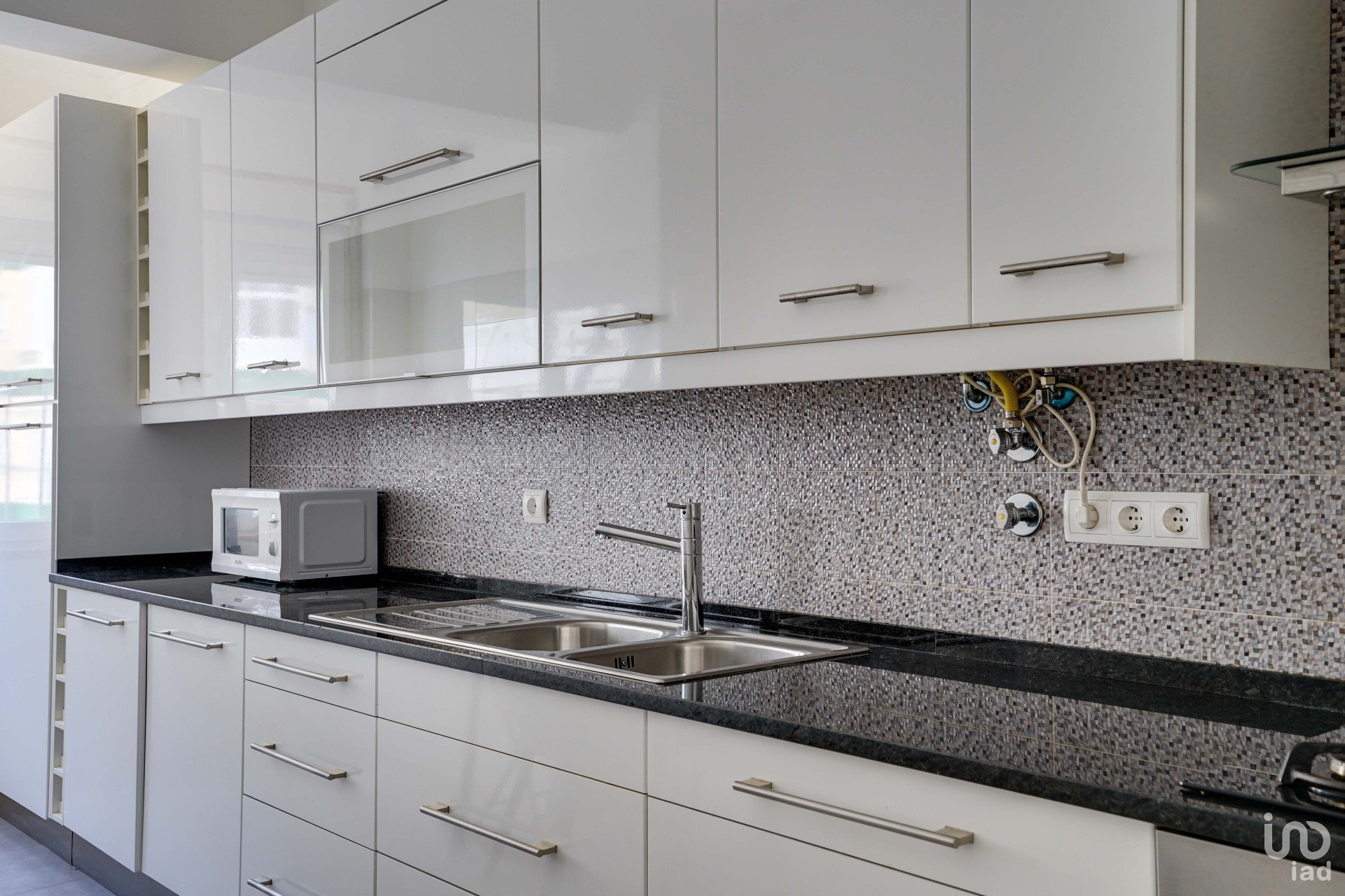 A cozinha está equipada com frigorífico, máquina de lavar a louça, máquina de lavar a roupa, fogão,forno e esquentado.