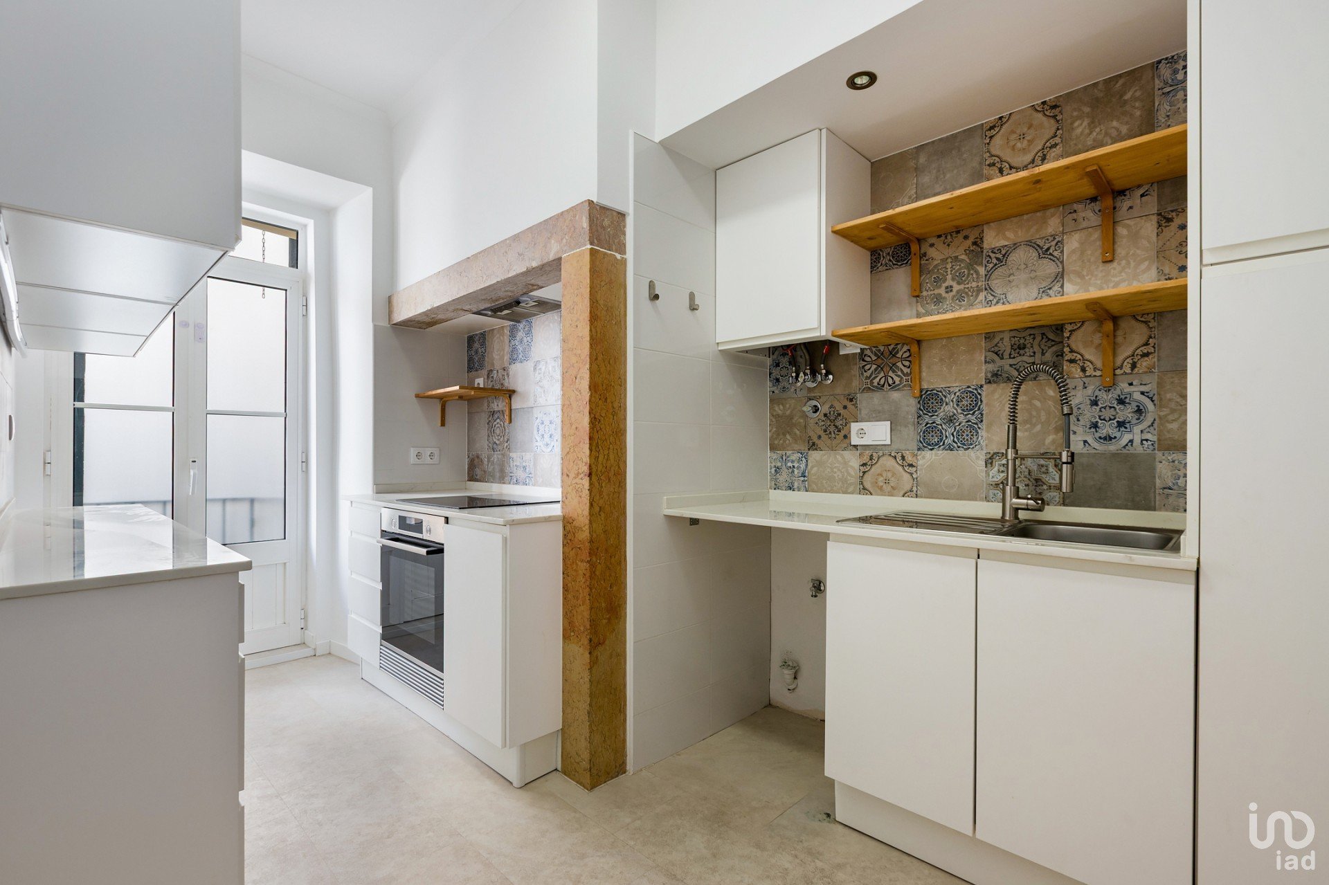 - Cozinha semi-equipada (forno e placa) com uma pequena varanda aberta.