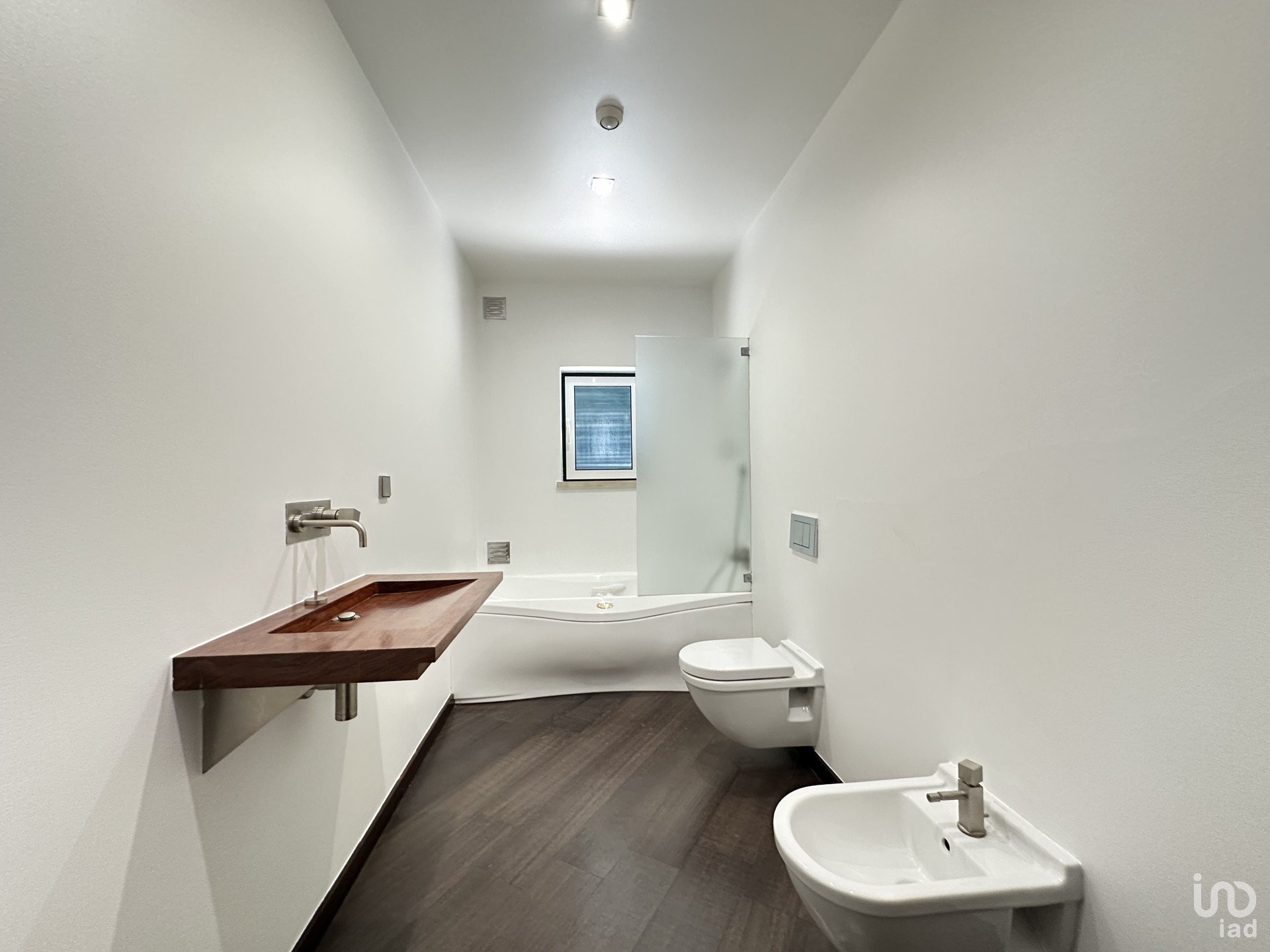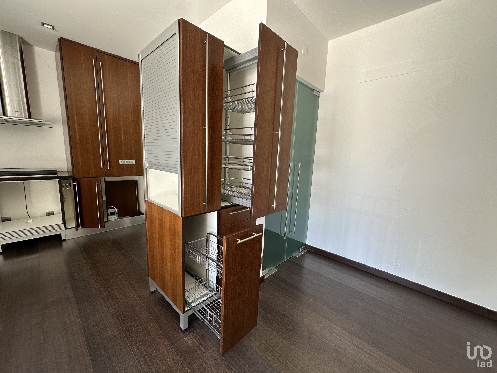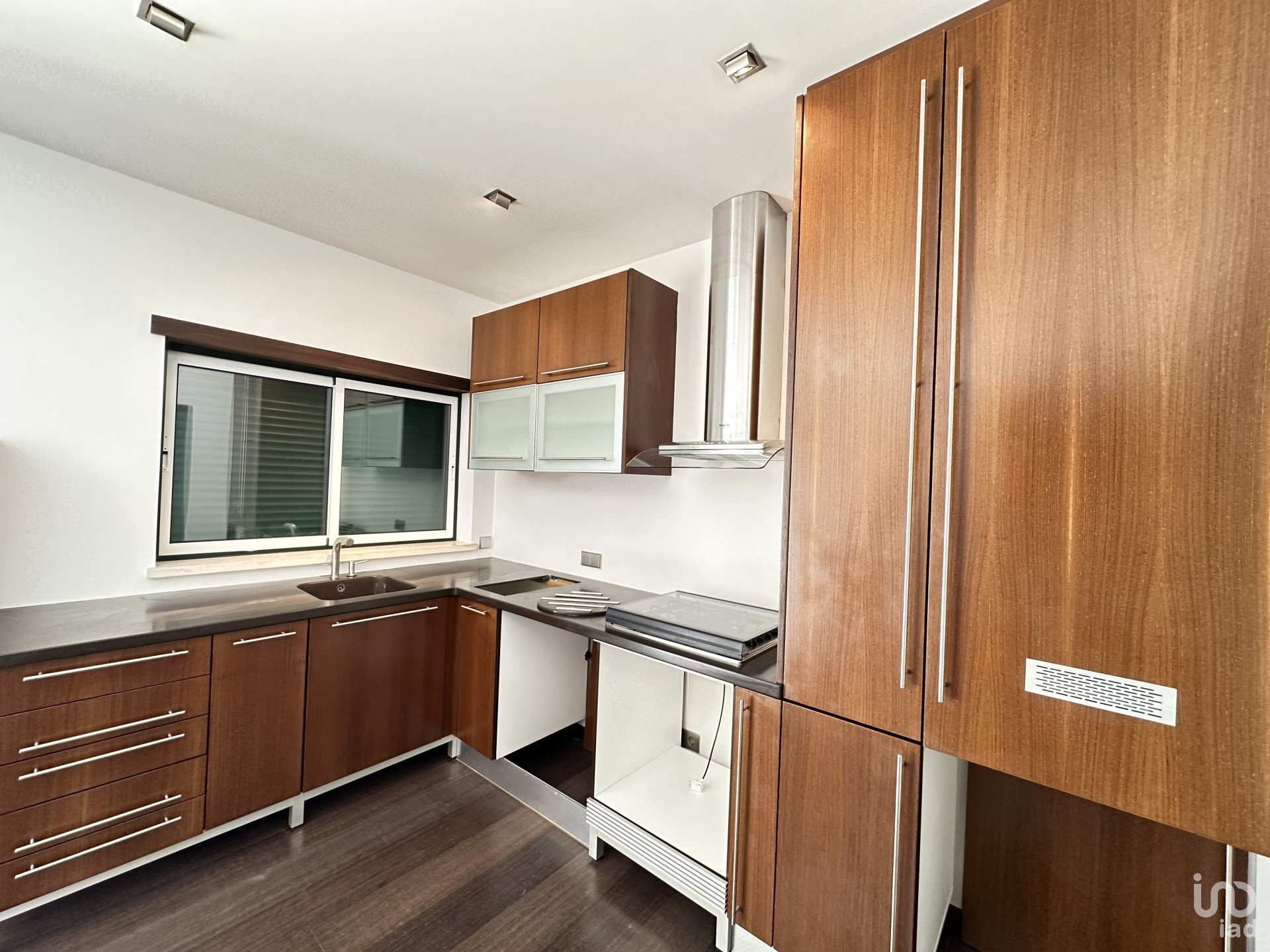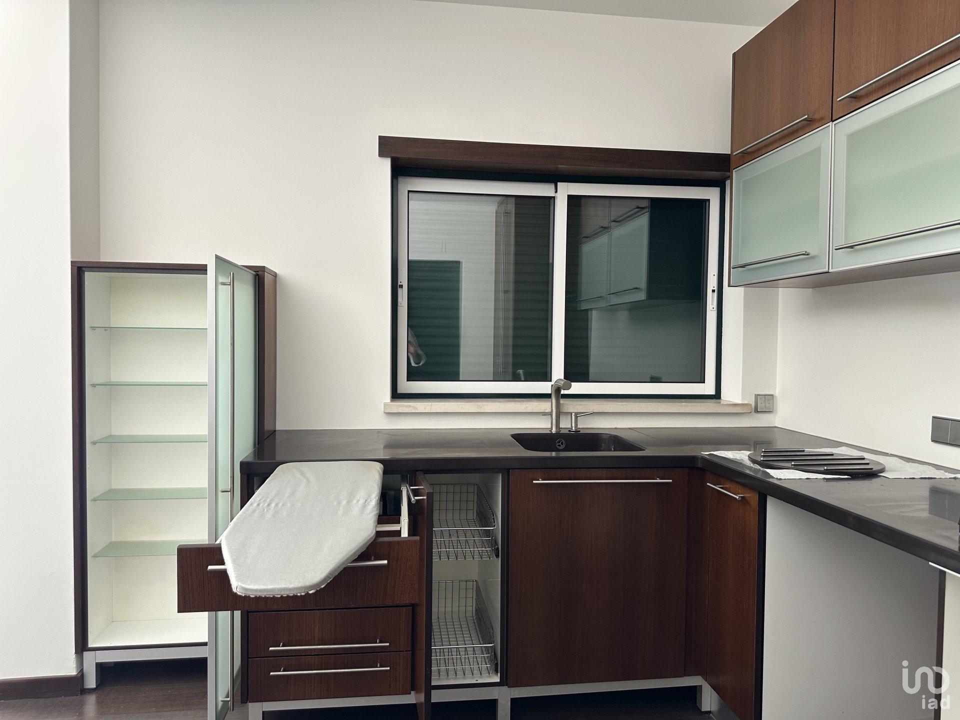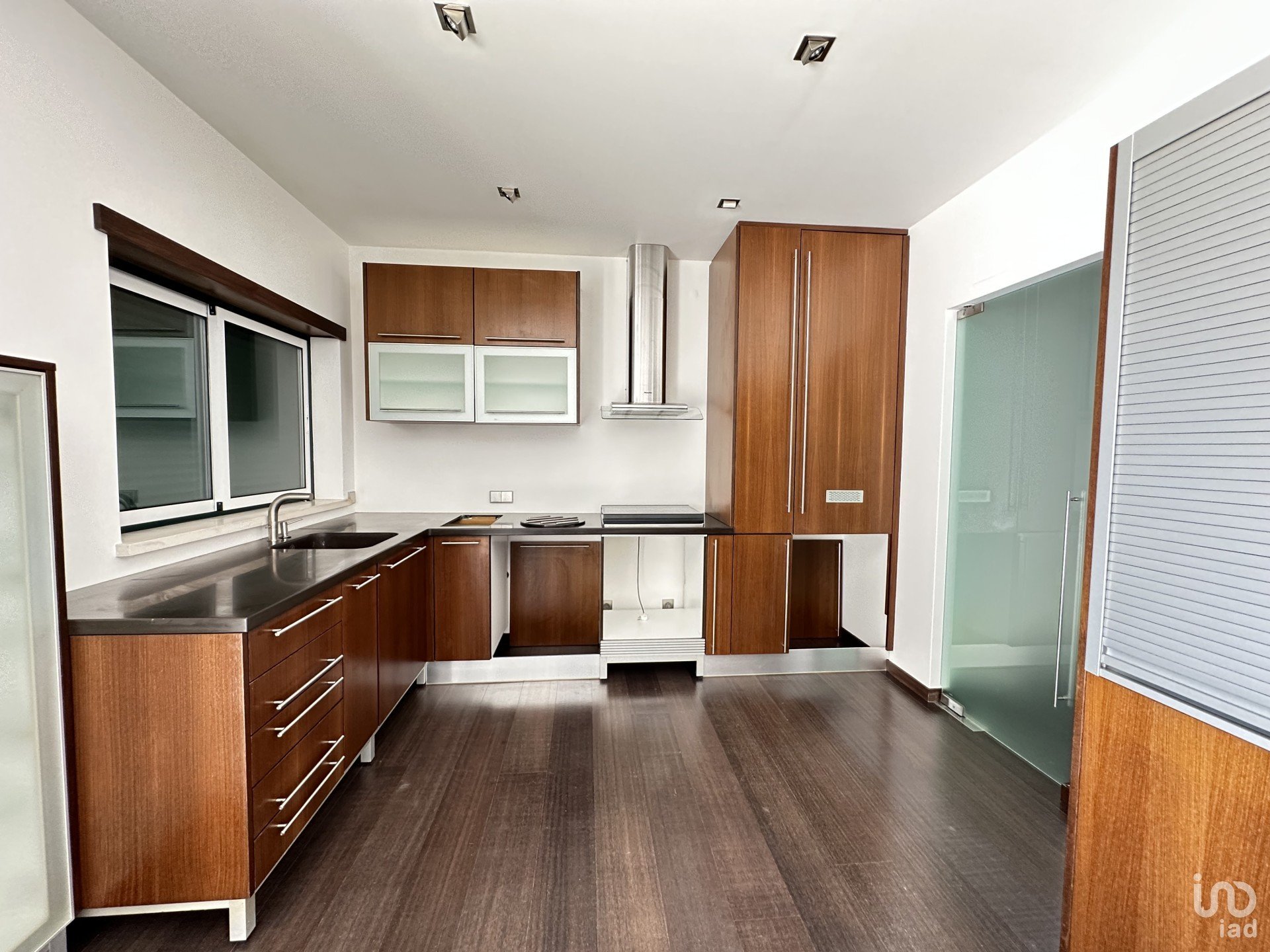 Estores elétricos, videoporteiro, carpintaria em wengé, puxadores Souto Moura, material elétrico Jung.