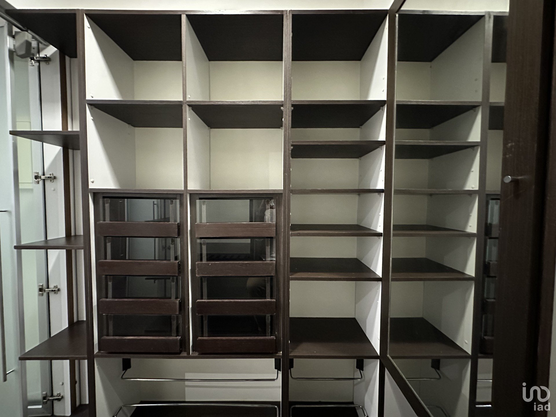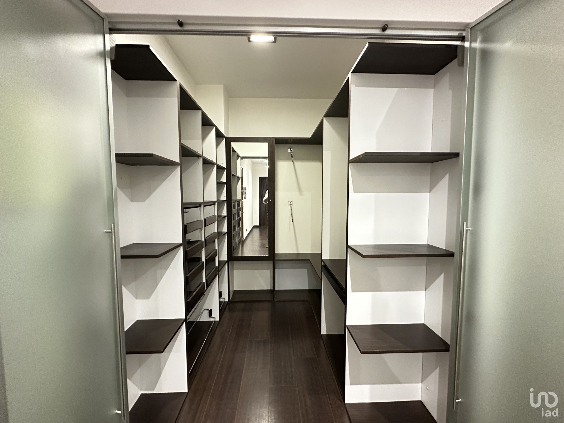 Walk in closet (Gavetas com frente em vidro, espelho, cabides,,sapateira, e muito mais espaço de arrumação.