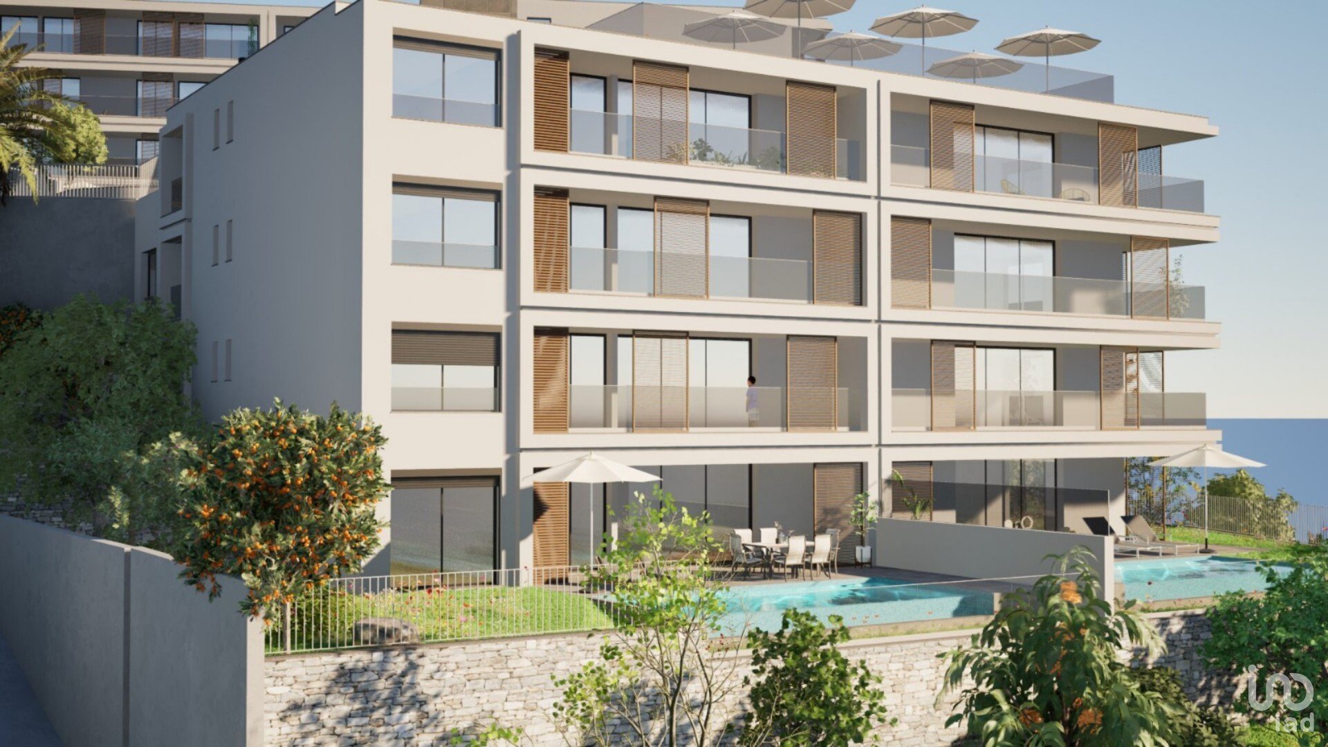 O grande diferencial deste apartamento é o seu espaço exterior: 87 m² de logradouro exclusivo com zona de lazer e uma piscina privativa, ideal para momentos de descontração ao ar livre, jantares com amigos ou para simplesmente aproveitar os dias de sol com total privacidade.