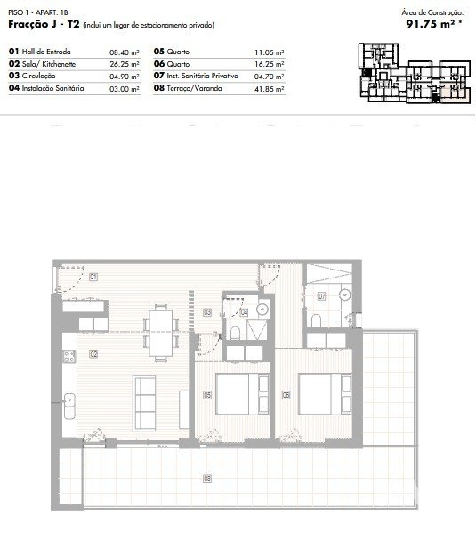 Os apartamentos, desde T1+1 até T2 Duplex, destacam-se pelos espaços amplos e luminosos, varandas espaçosas e concepção pensada para o conforto total.