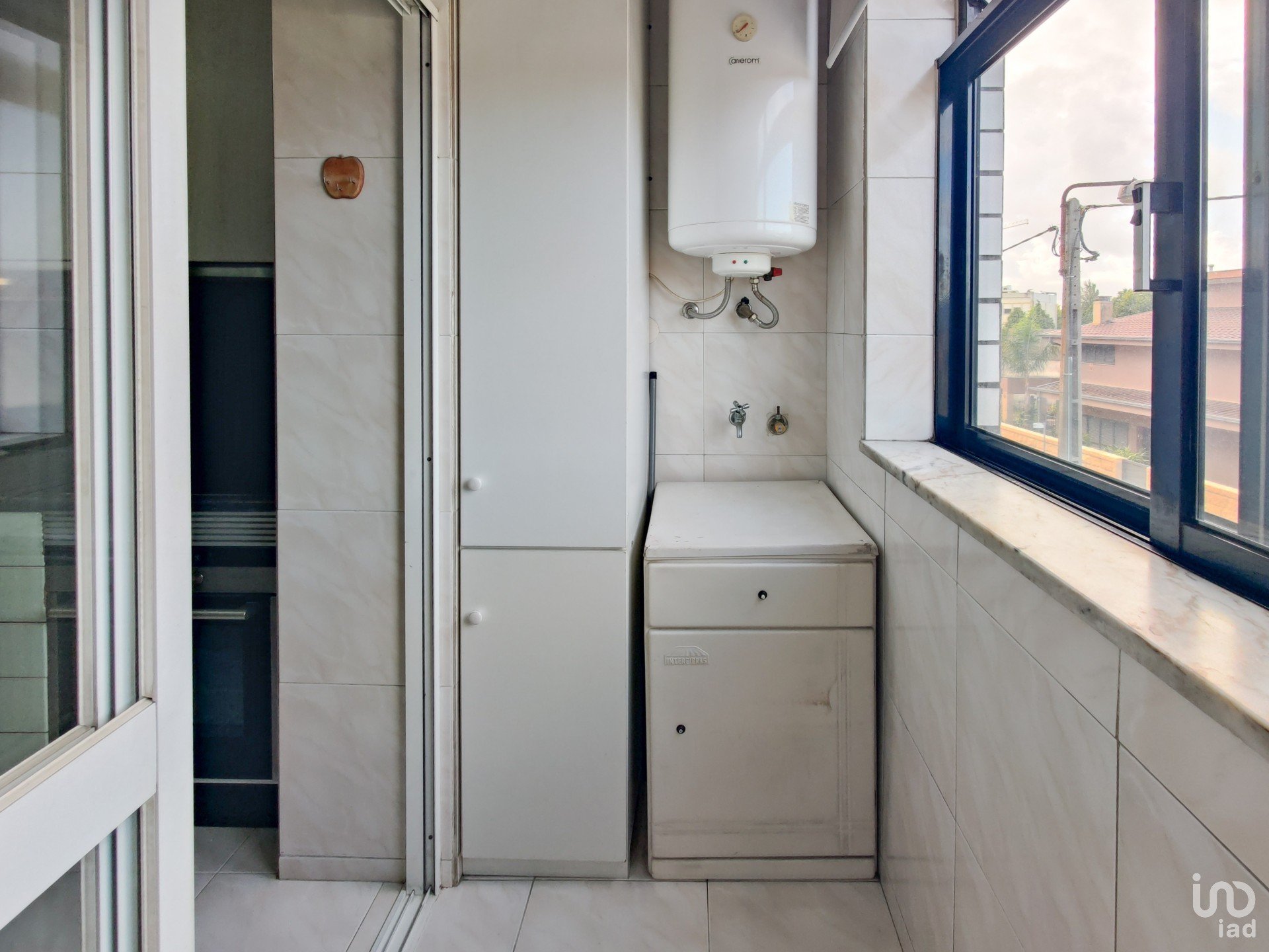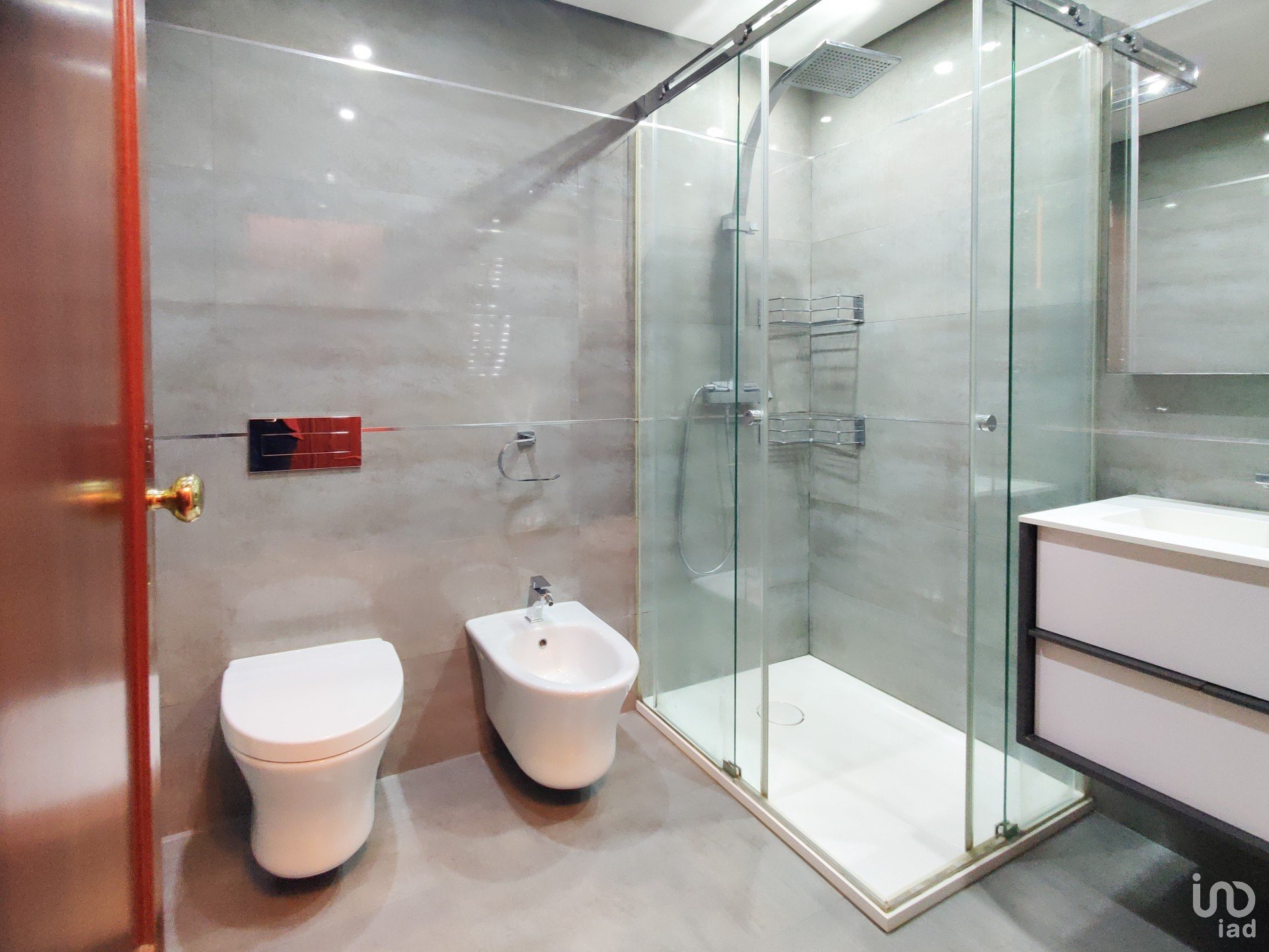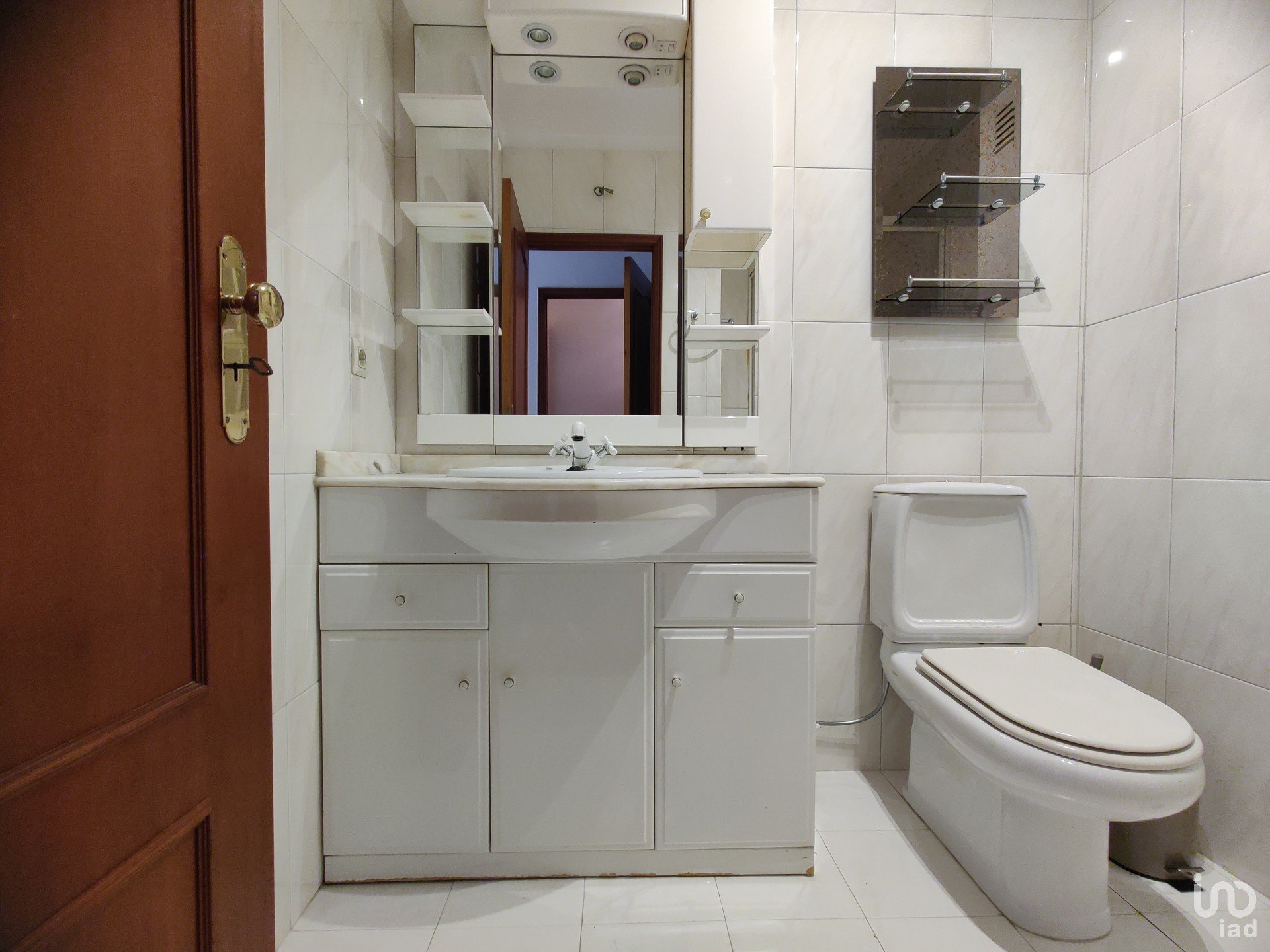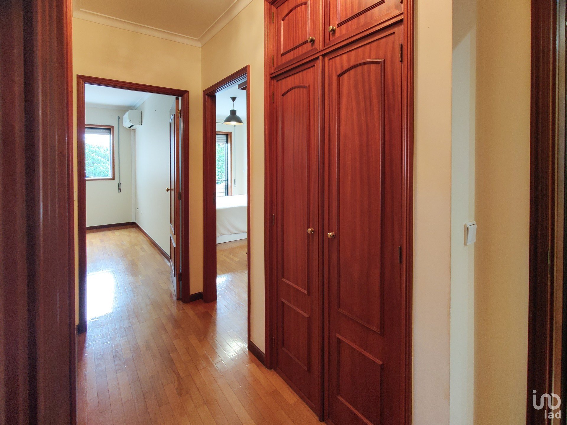 O corredor reserva ainda mais soluções inteligentes de arrumação: um roupeiro extra e uma despensa com prateleiras e armários, porque o detalhe faz toda a diferença. A casa de banho de apoio, recentemente remodelada, acrescenta um toque moderno ao conjunto.