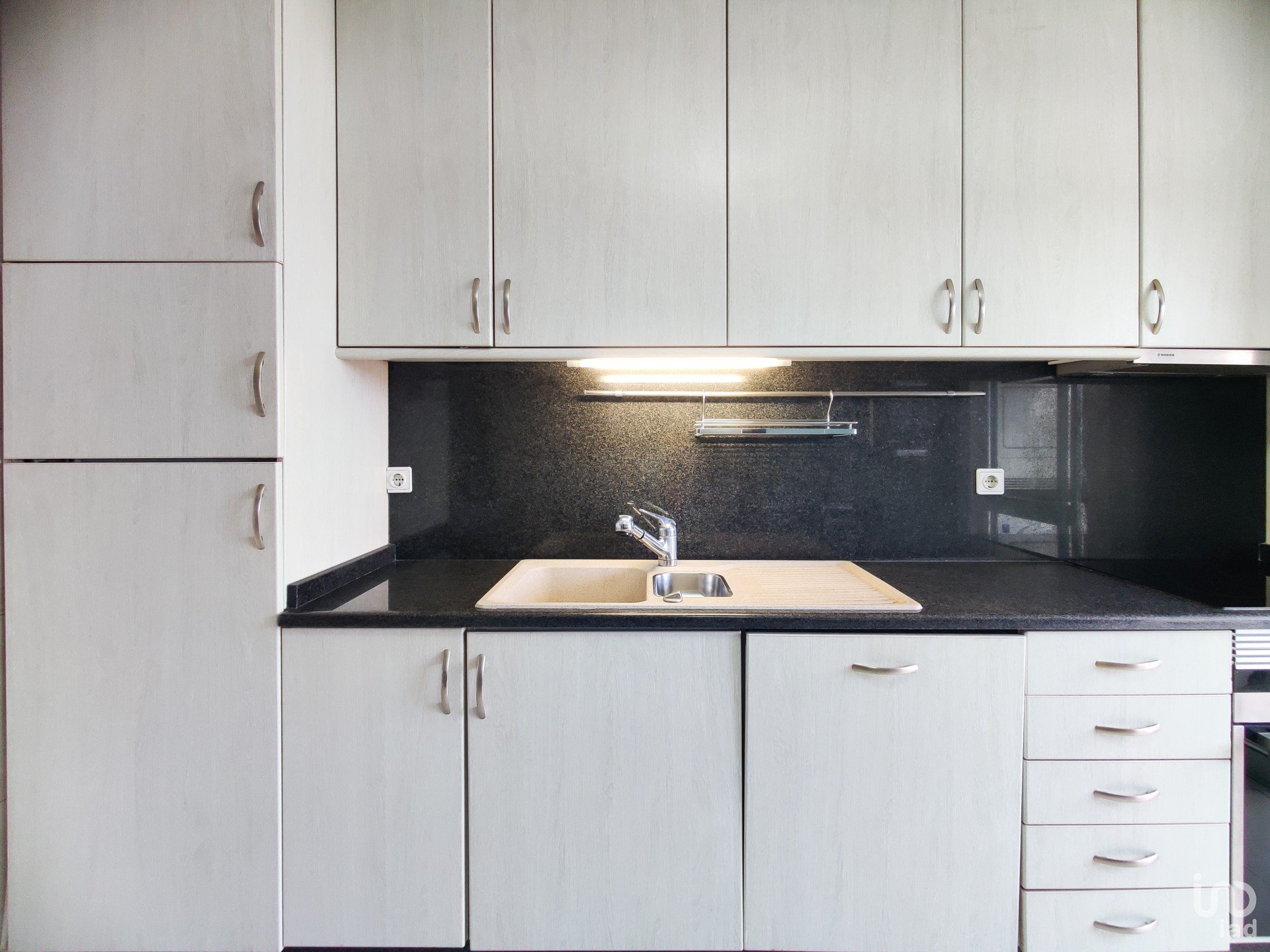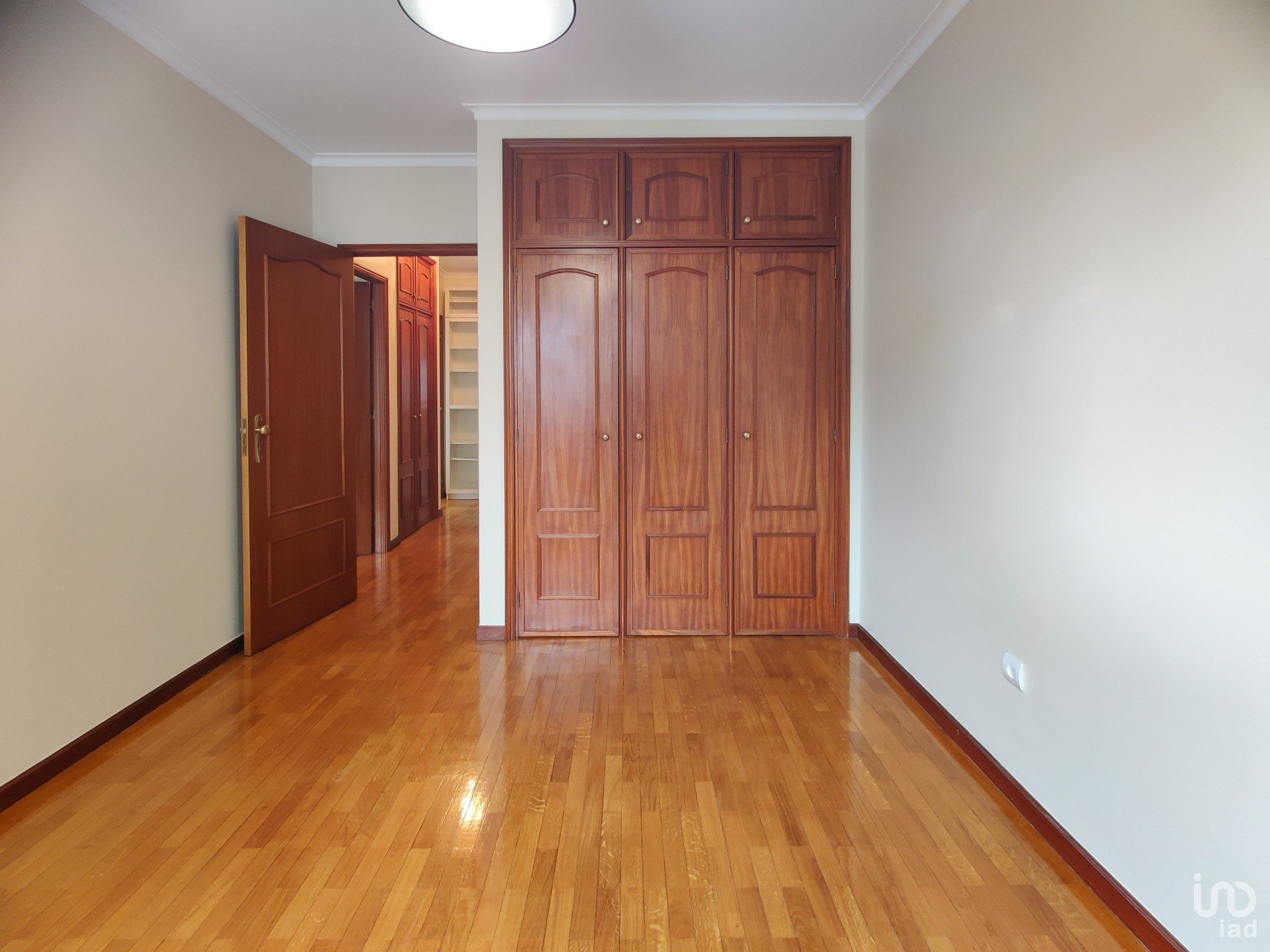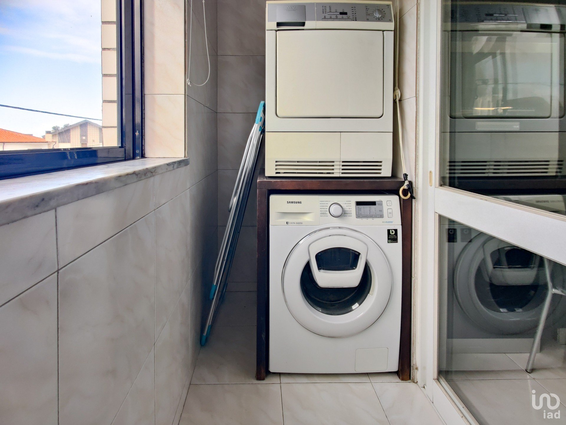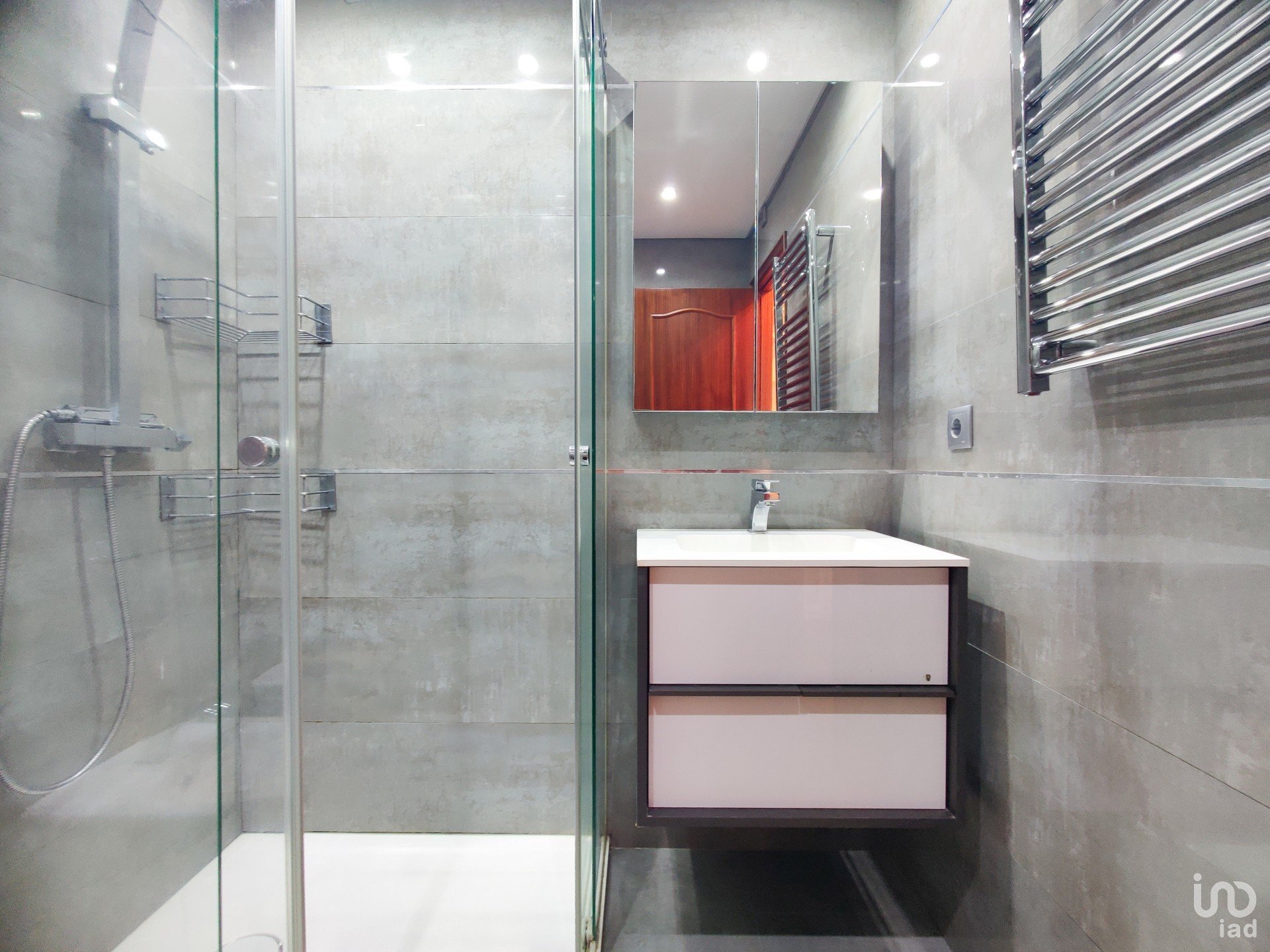 O corredor reserva ainda mais soluções inteligentes de arrumação: um roupeiro extra e uma despensa com prateleiras e armários, porque o detalhe faz toda a diferença. A casa de banho de apoio, recentemente remodelada, acrescenta um toque moderno ao conjunto.