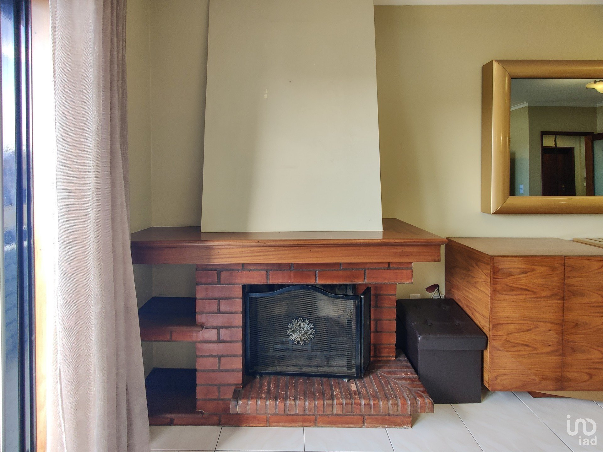 A sala, ampla e luminosa, é o coração da casa. A lareira torna o ambiente acolhedor nas noites mais frias, enquanto a varanda de 4m deixa entrar a luz poente e prolonga o espaço para o exterior, perfeito para relaxar ao fim do dia.