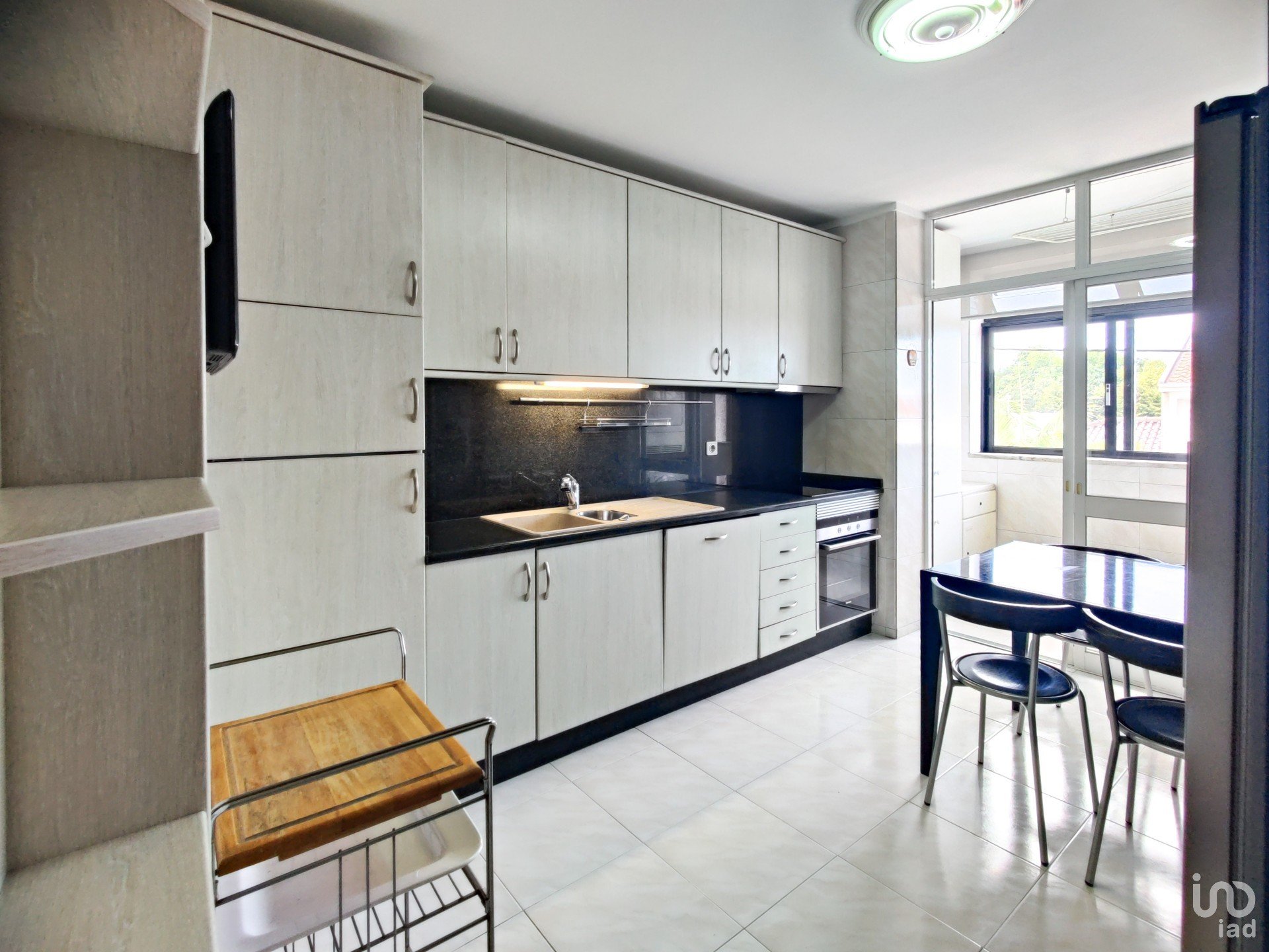 A cozinha, já modernizada, alia praticidade e muita arrumação, com linhas funcionais e ligação direta a uma lavandaria espaçosa. Um espaço pensado para simplificar o quotidiano.