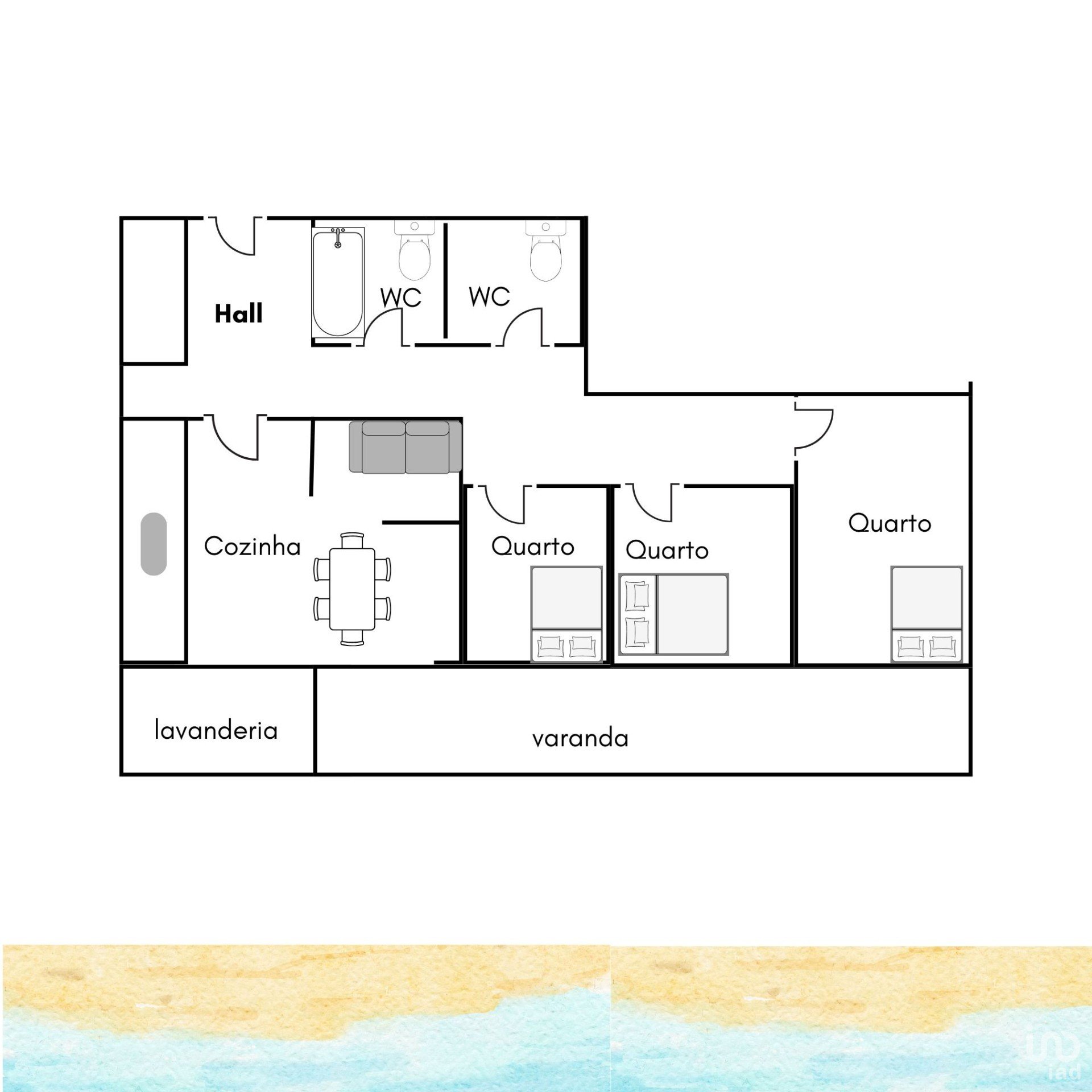 3 Quartos com roupeiros embutidos e acesso a varanda. Planeados para o seu conforto e praticidade, maximizando o uso do espaço.