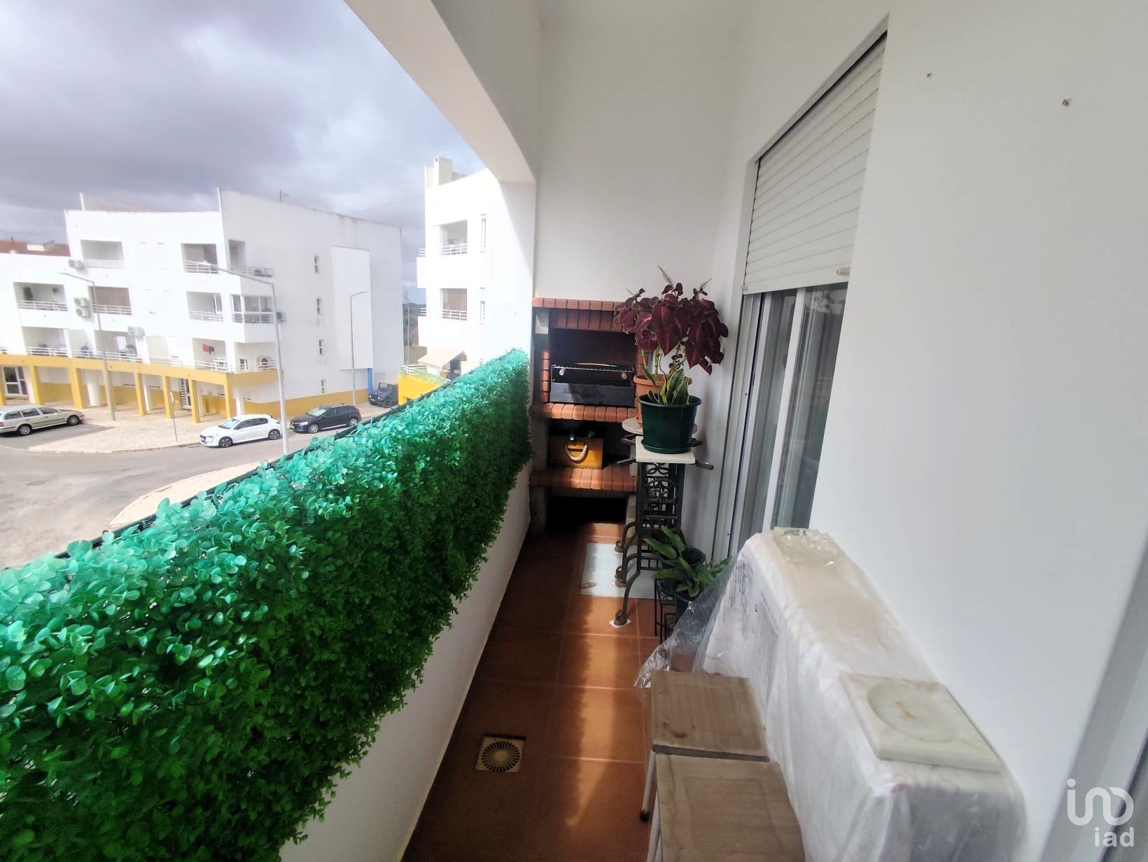 Varanda com churrasqueira e vista desafogada.