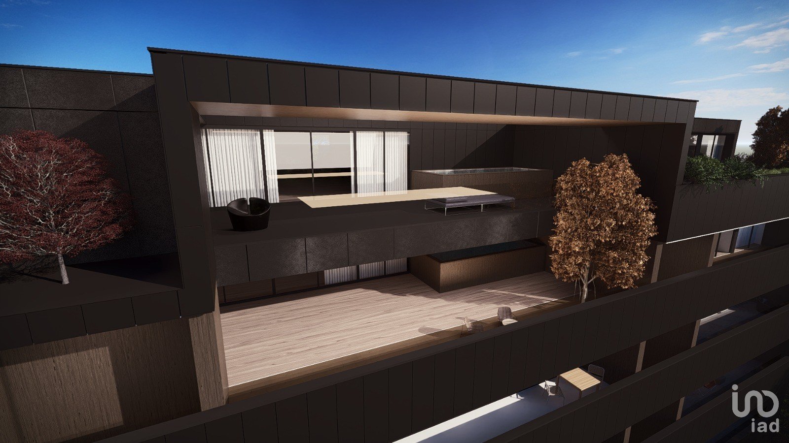 Varandas e pátios com revestimento cerâmico espessurado e guardas em vidro laminado