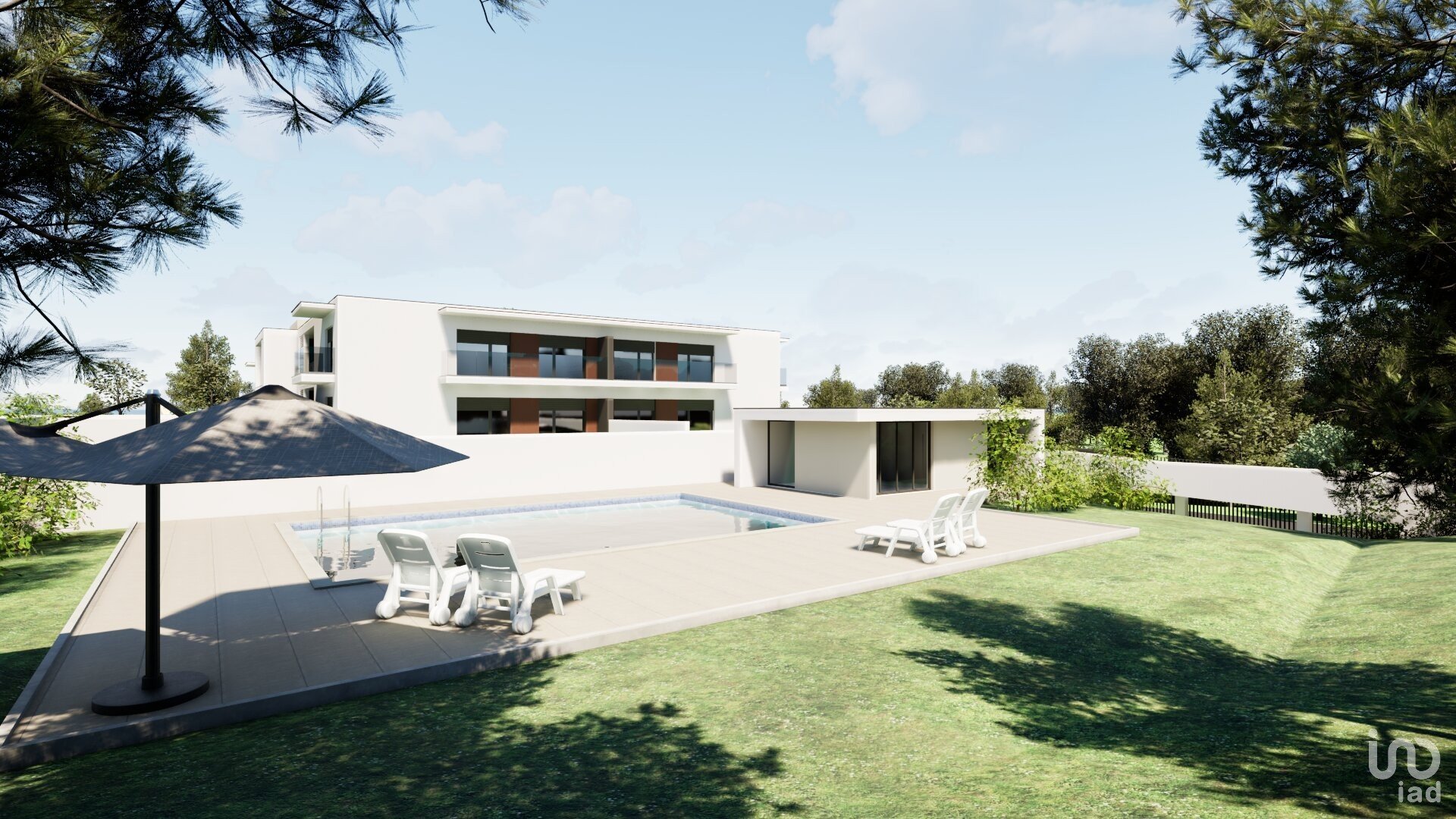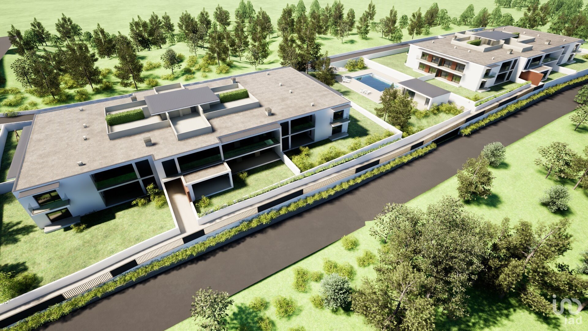 Este exclusivo condomínio dispõe de um logradouro comum, onde se destaca uma magnífica piscina, espaços verdes para relaxamento e uma sala de condomínio, ideal para eventos sociais.