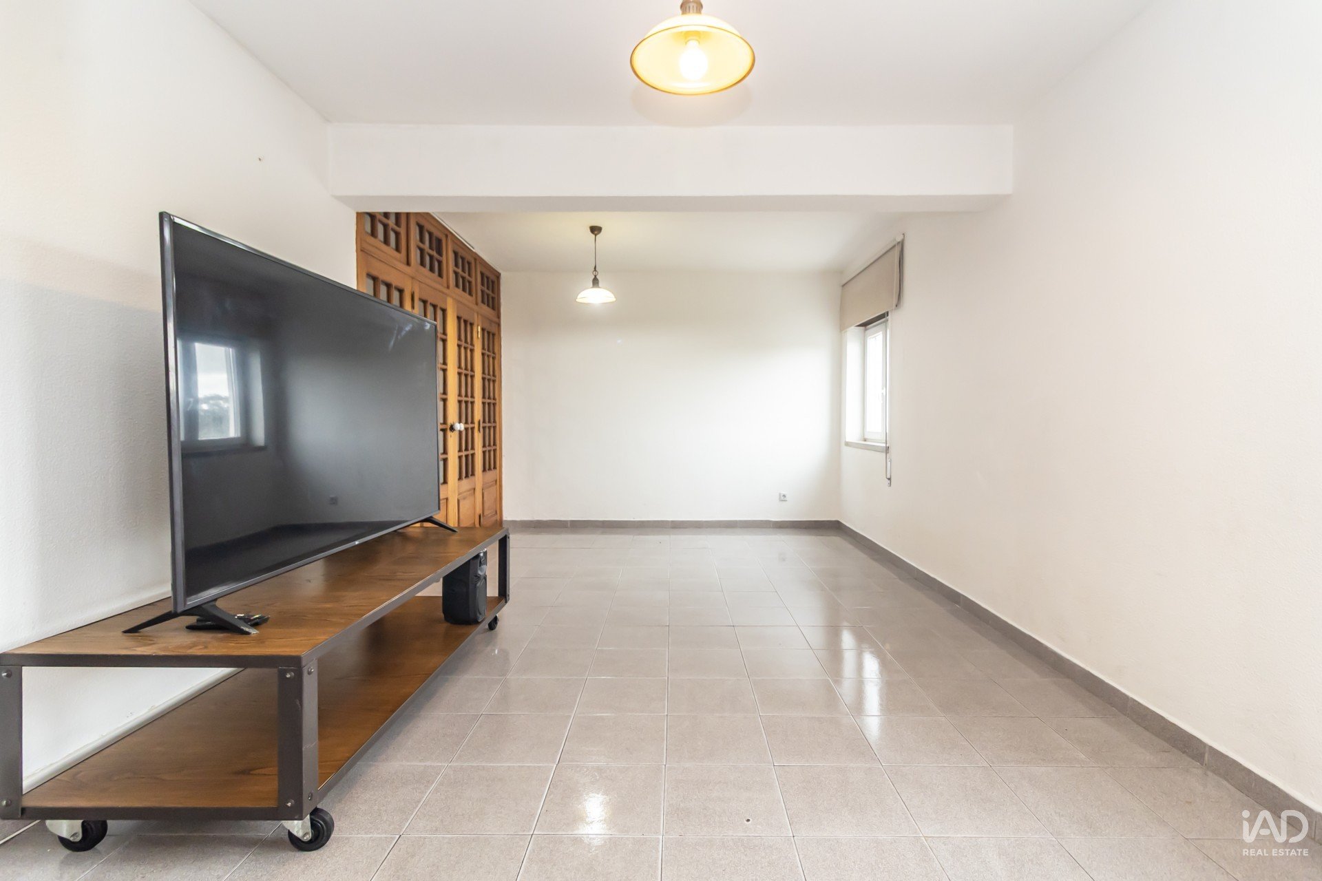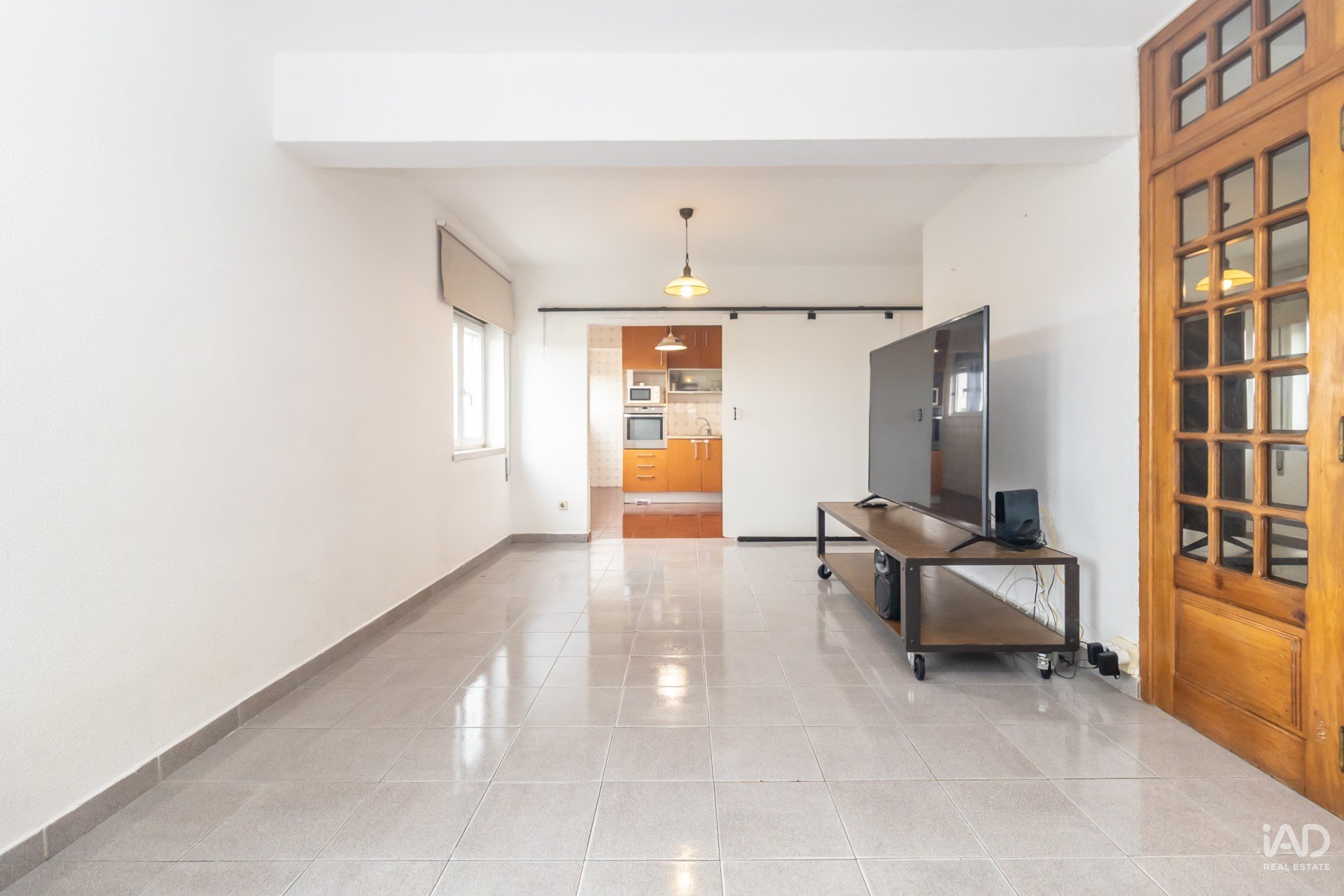 A sala, ampla e cheia de potencial, permite criar dois ambientes distintos — ideal para conjugar zona de estar e zona de refeições — e inclui ainda um espaço adicional de arrumos, extremamente útil no dia a dia.
