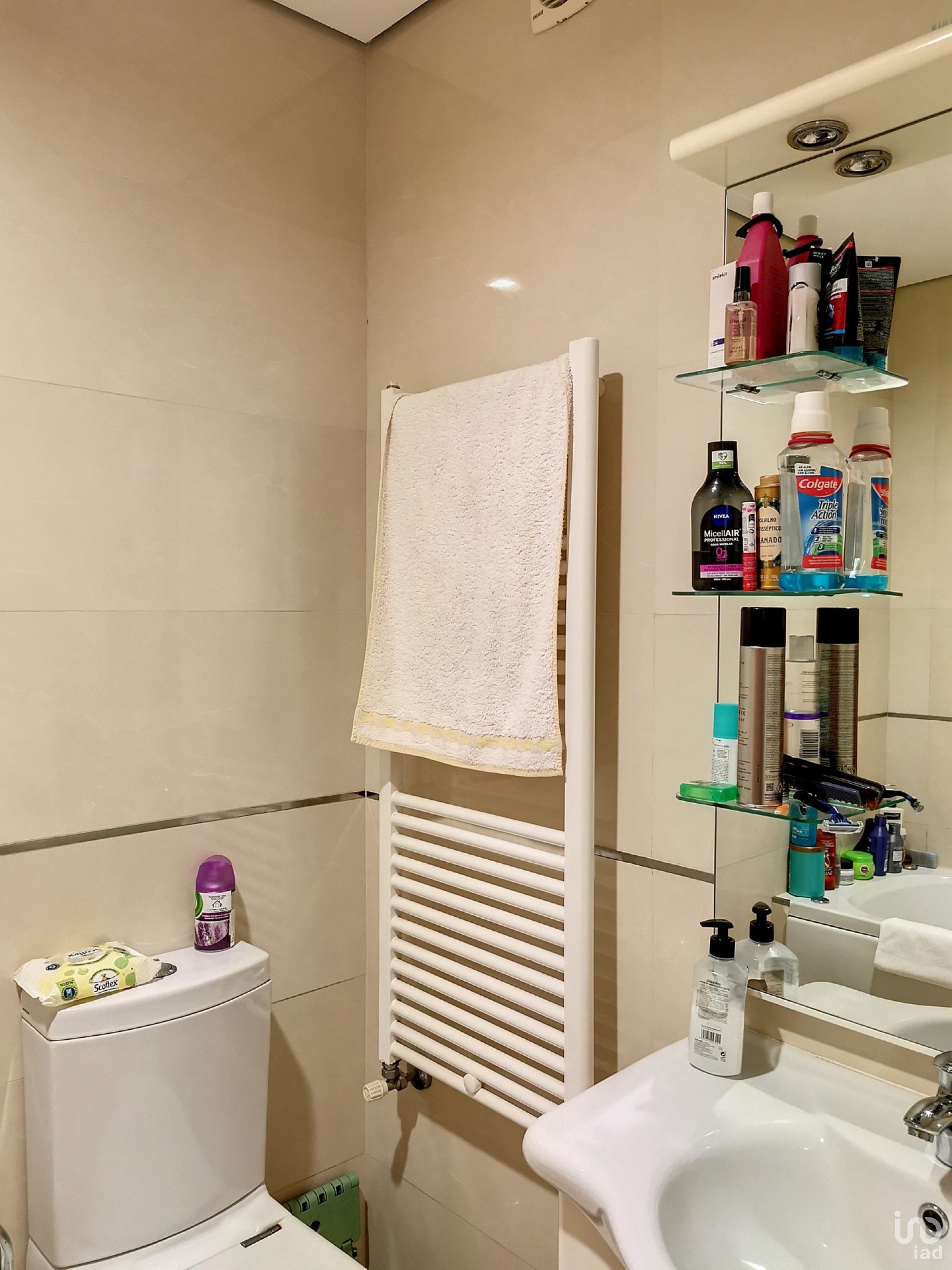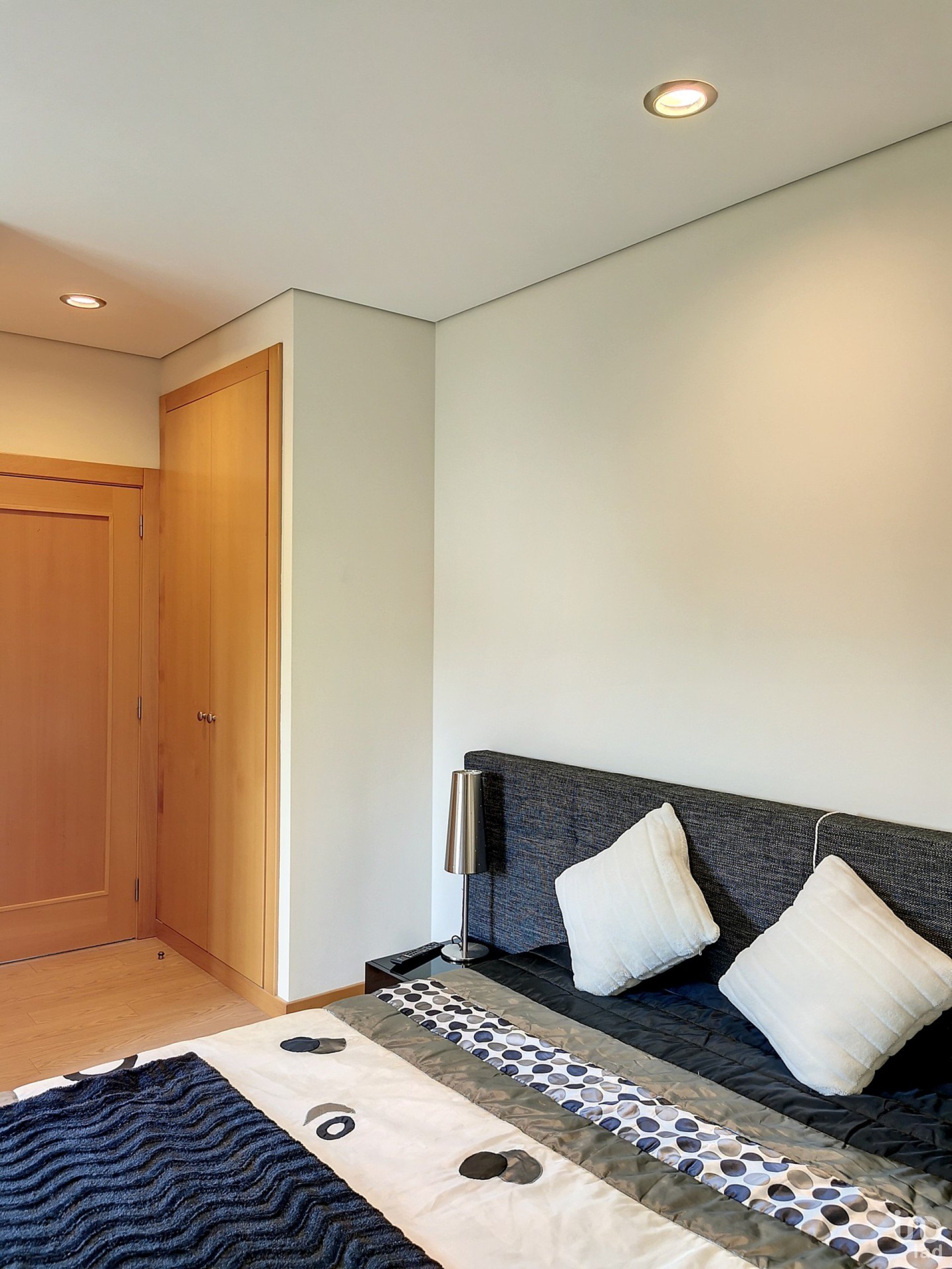 Este apartamento possui janelas oscilobatentes com vidros duplos, térmicos, sistema de alarme, aspiração central, tetos falsos com focos, estores elétricos, sistema de aquecimento central a gás natural e piso flutuante nos quartos.