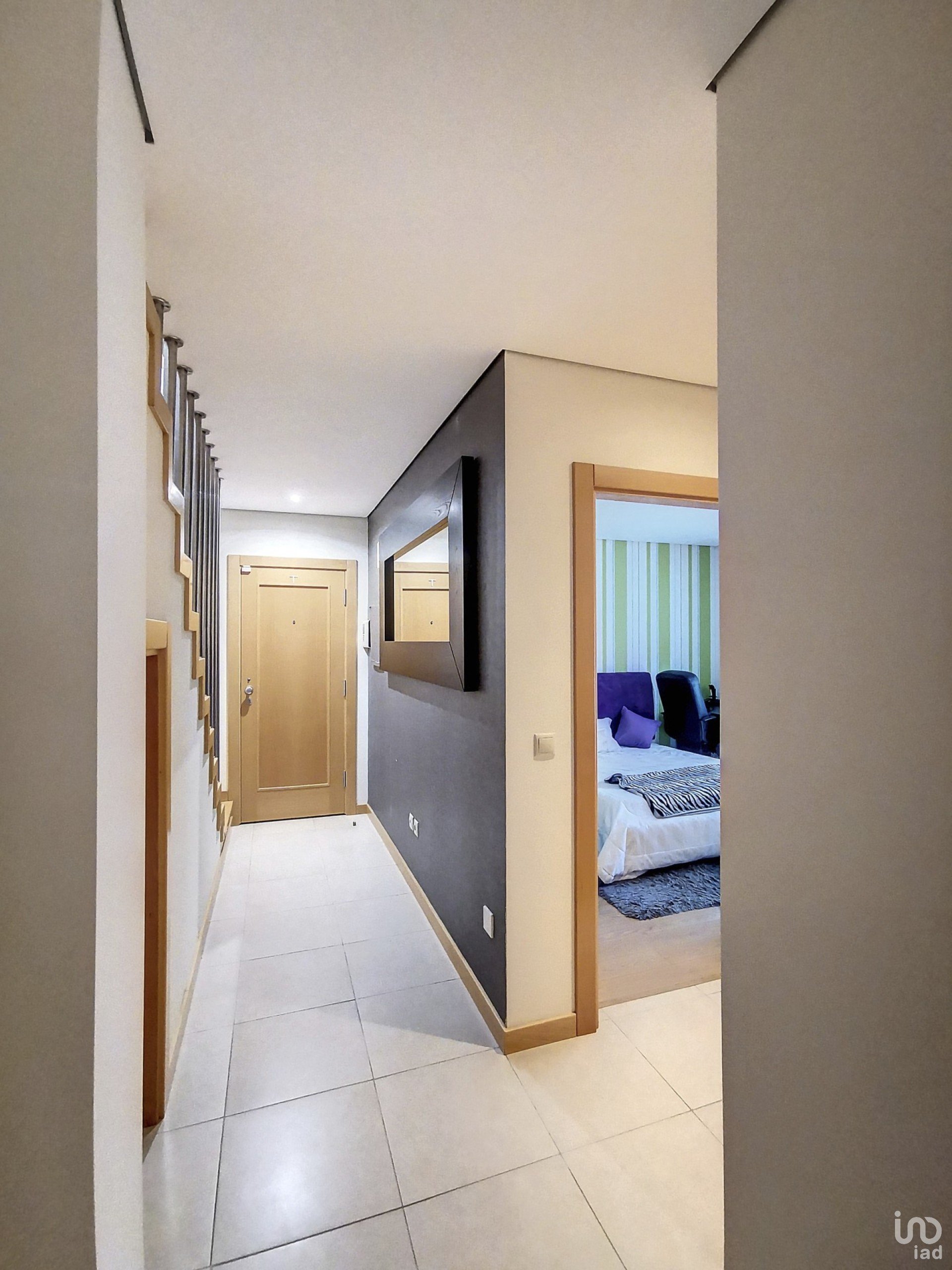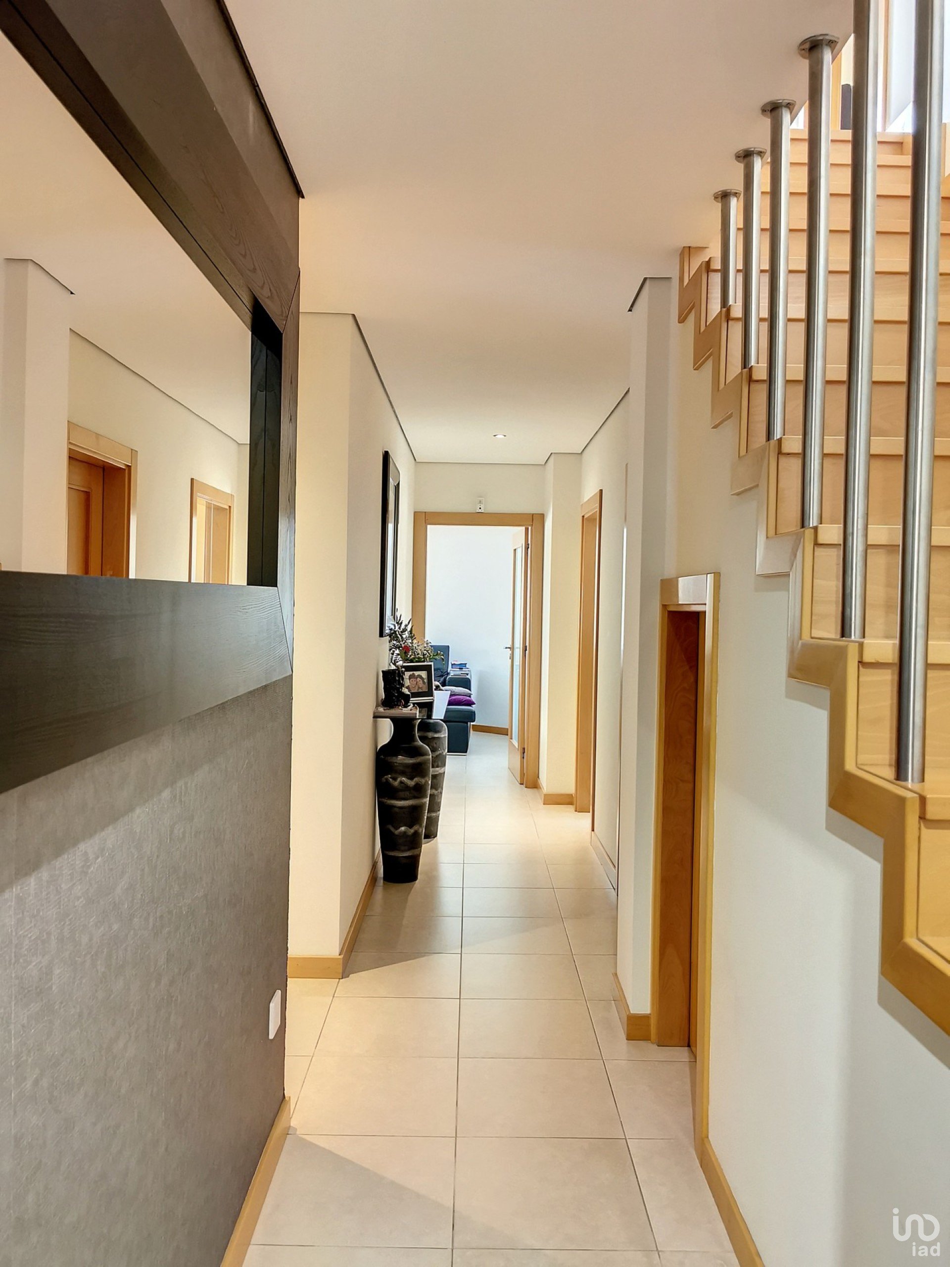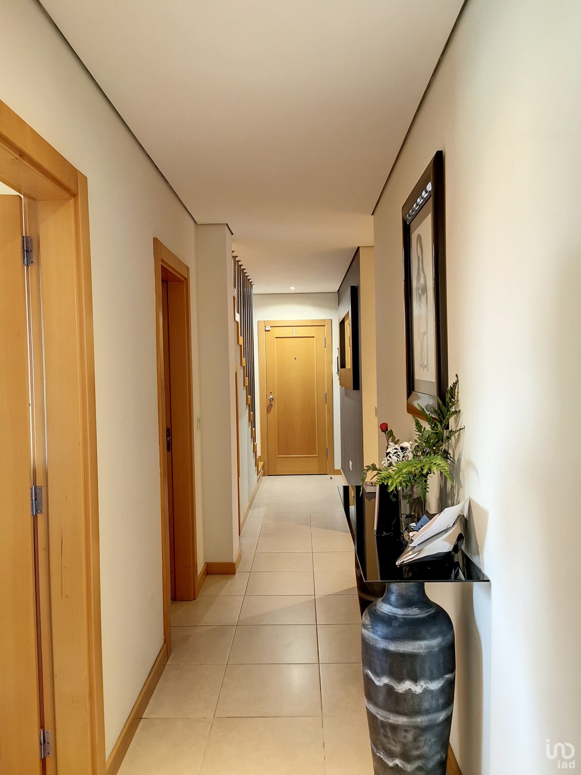 Constituido por dois andares, no piso inferior encontra um hall com uma escadaria em madeira de acesso ao primeiro piso, a sala com recuperador de calor e uma grande varanda, uma cozinha equipada e com varanda, dois quartos (ambos com armários embutidos e varandas), wc completo com banheira de hidromassagem. Por baixo da escadaria possui um arrumo.