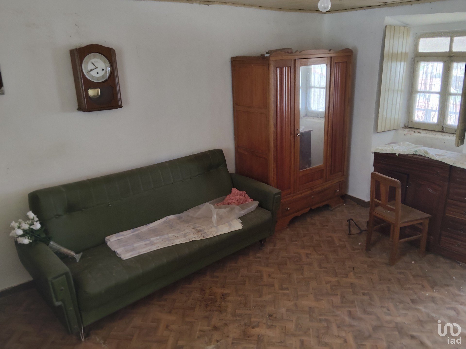 A casa necessita de remodelação total, mas já possui infraestruturas ligadas à rede pública, como água e eletricidade (atualmente com contadores desligados).