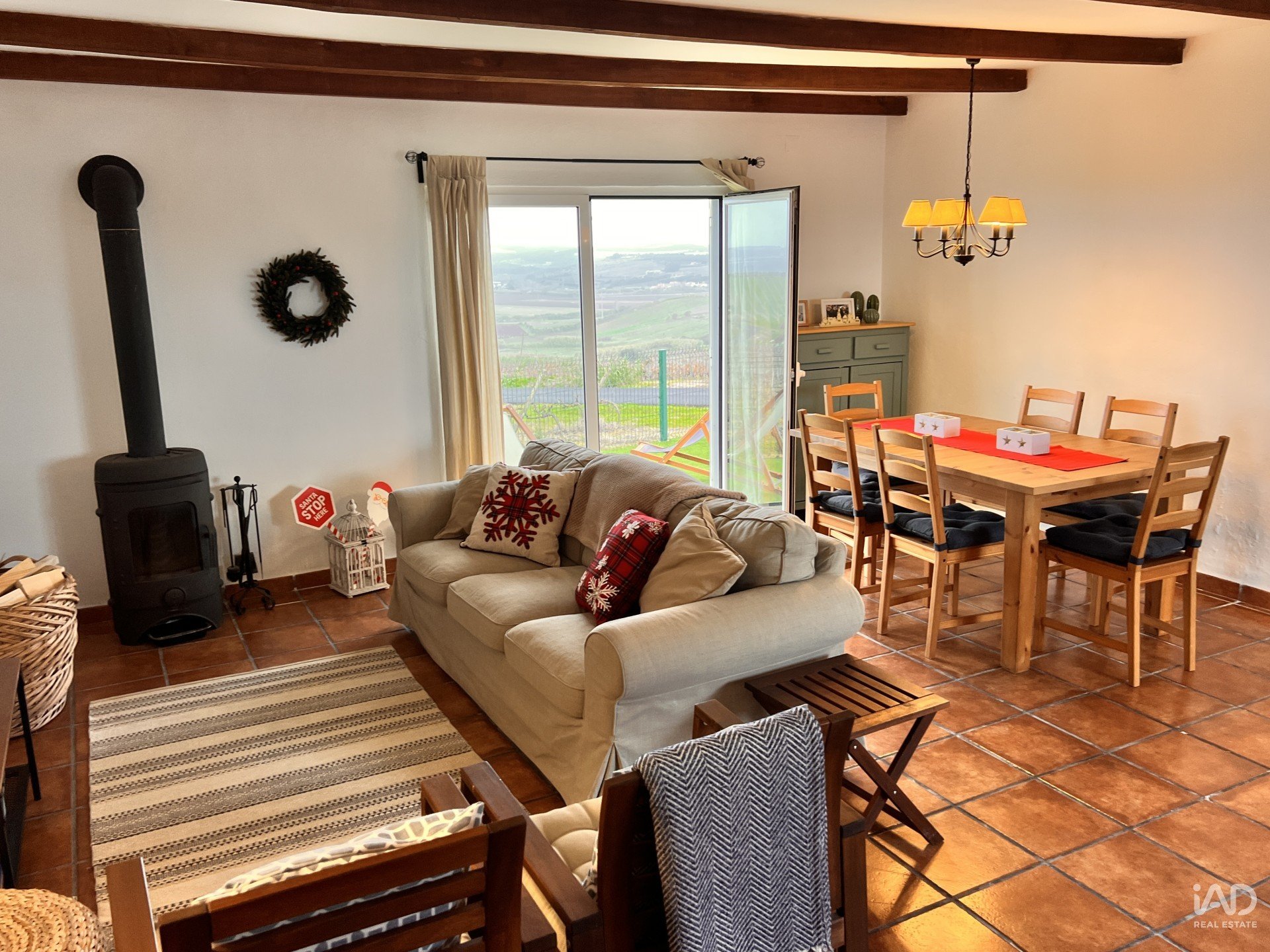 Dois Quartos, Casa de Banho, Cozinha, Hall de Entrada e Sala de Estar e Jantar bastante ampla com Salamandra para maior conforto, muita luz natural e uma vista campestre deslumbrante!