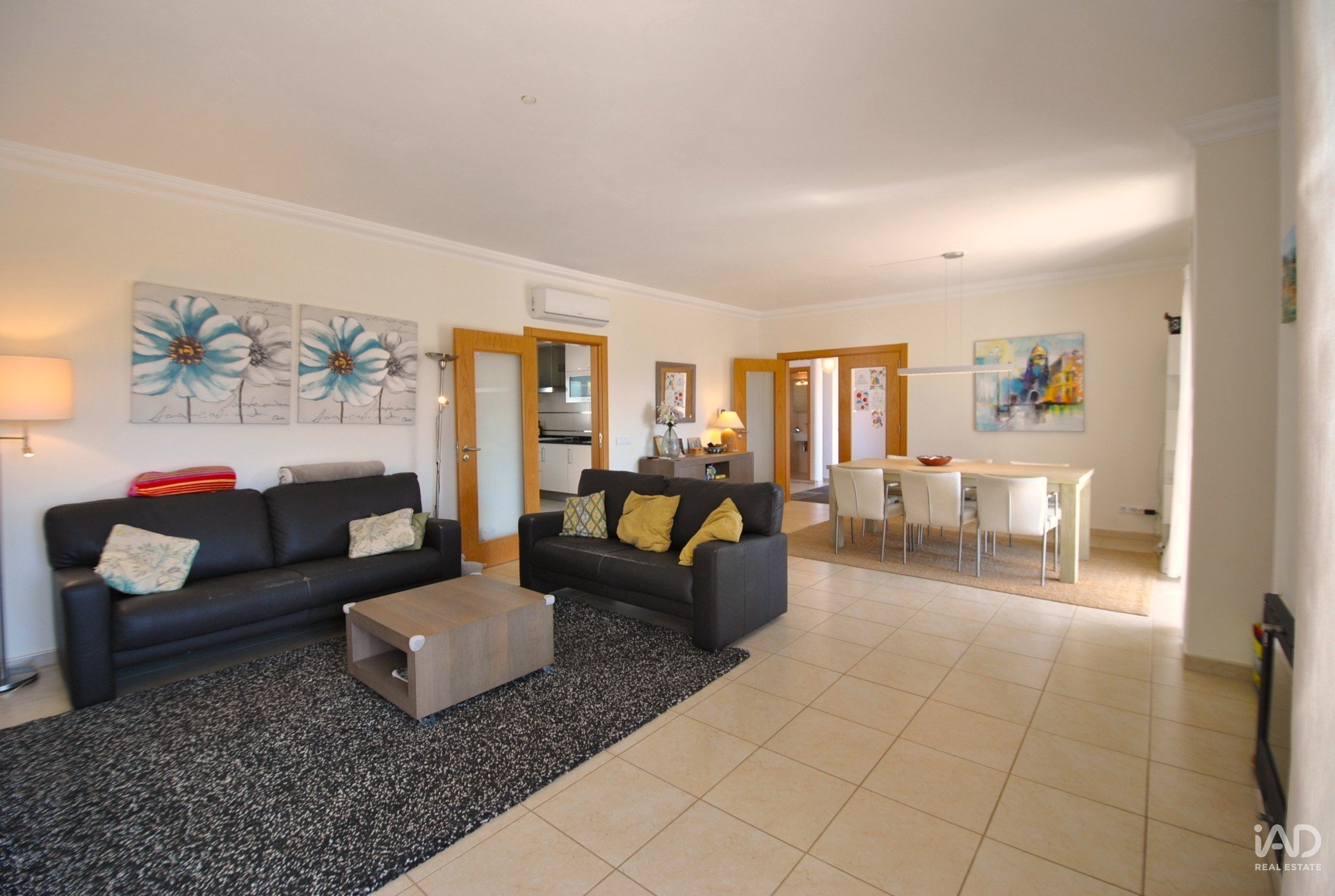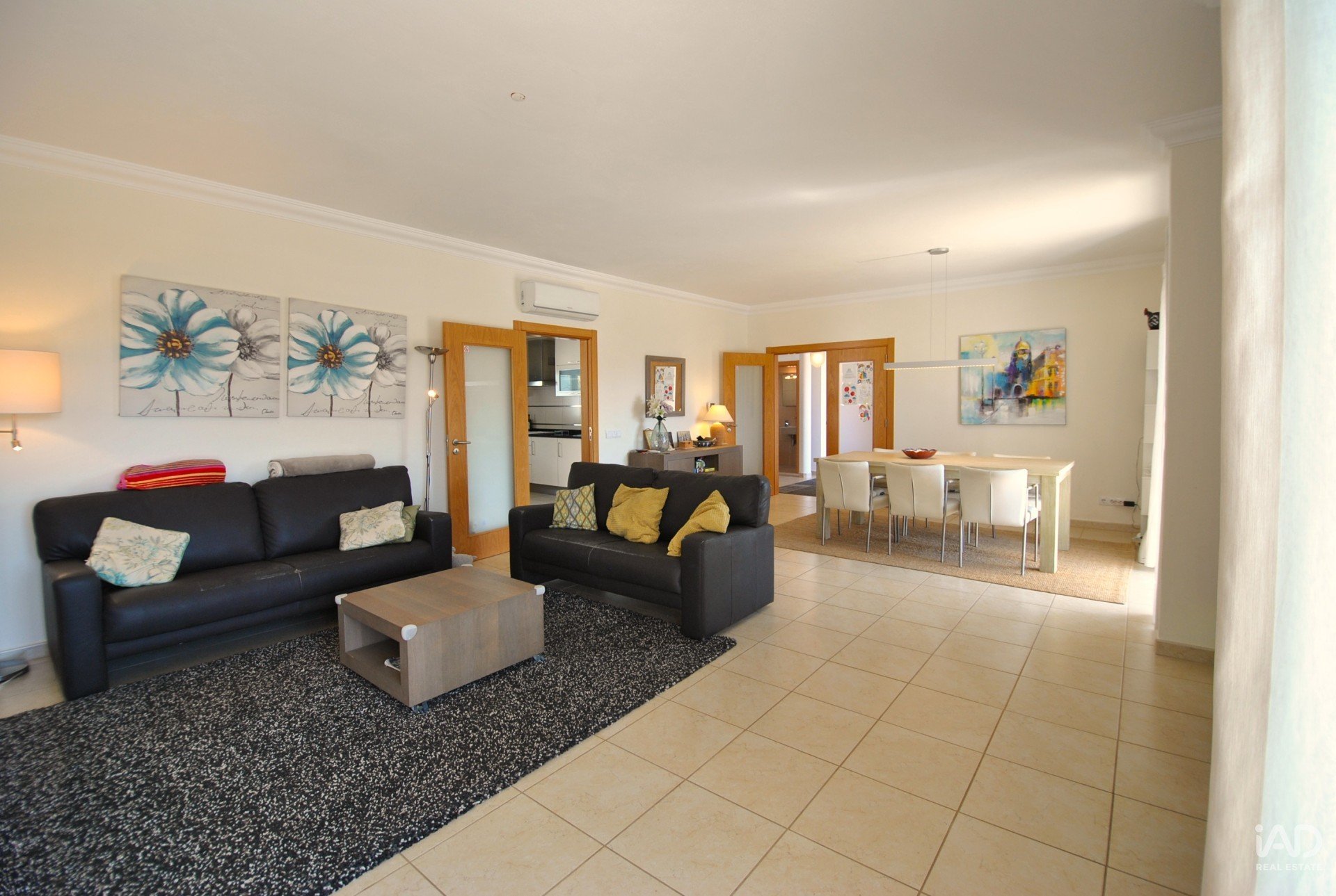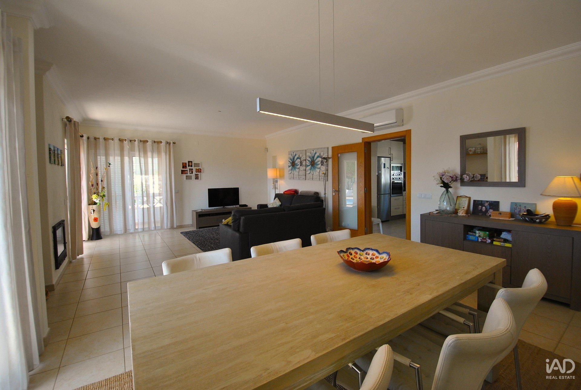 A sala de estar e a sala de jantar apresentam-se amplas, luminosas e com acesso direto ao exterior, criando um ambiente perfeito para convívio e momentos em família. A cozinha está completamente equipada, garantindo funcionalidade e estilo com materiais de qualidade superior.