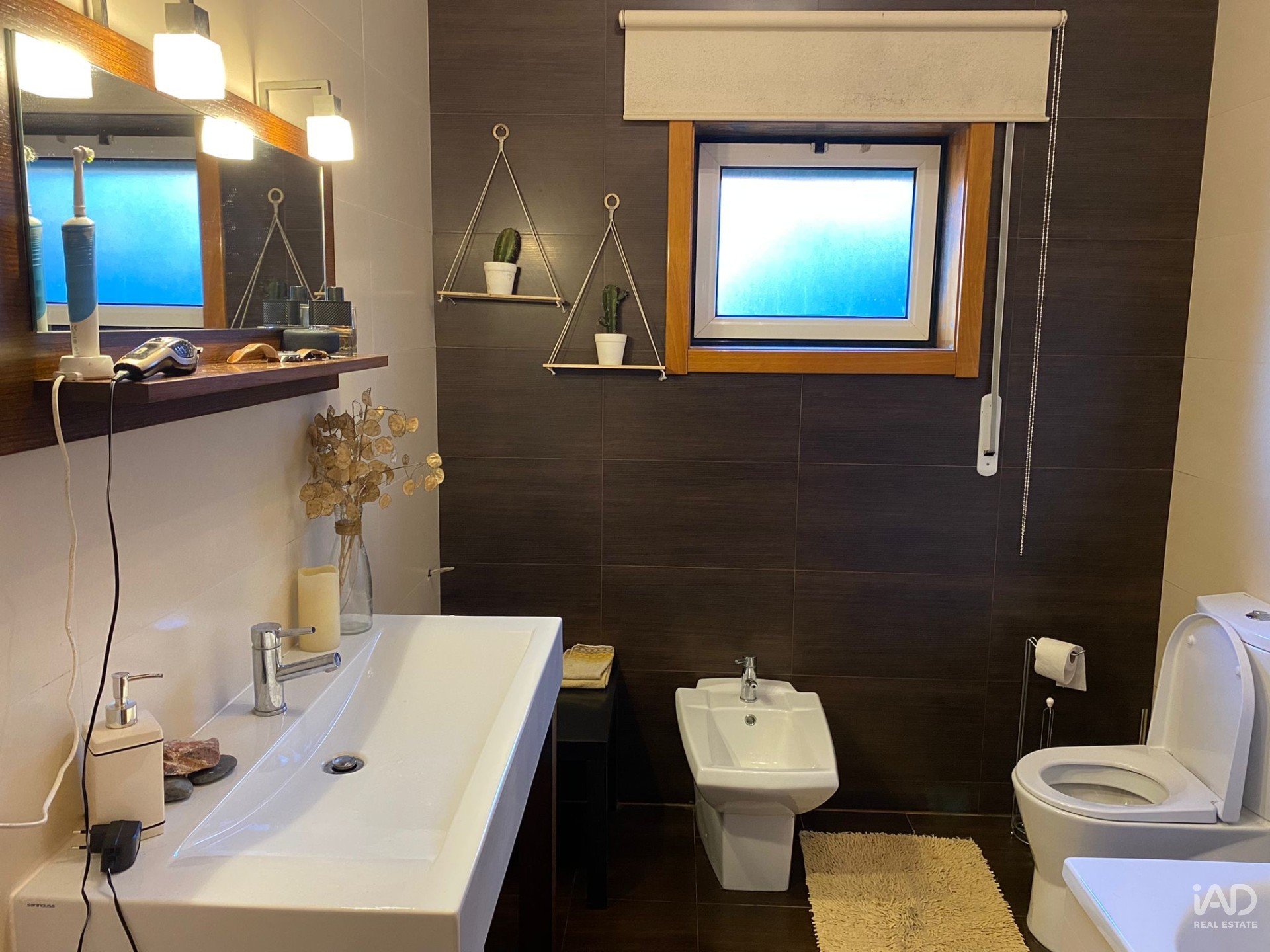 - Uma casa de banho de apoio aos dois quartos, com banheira, sanita e bidé