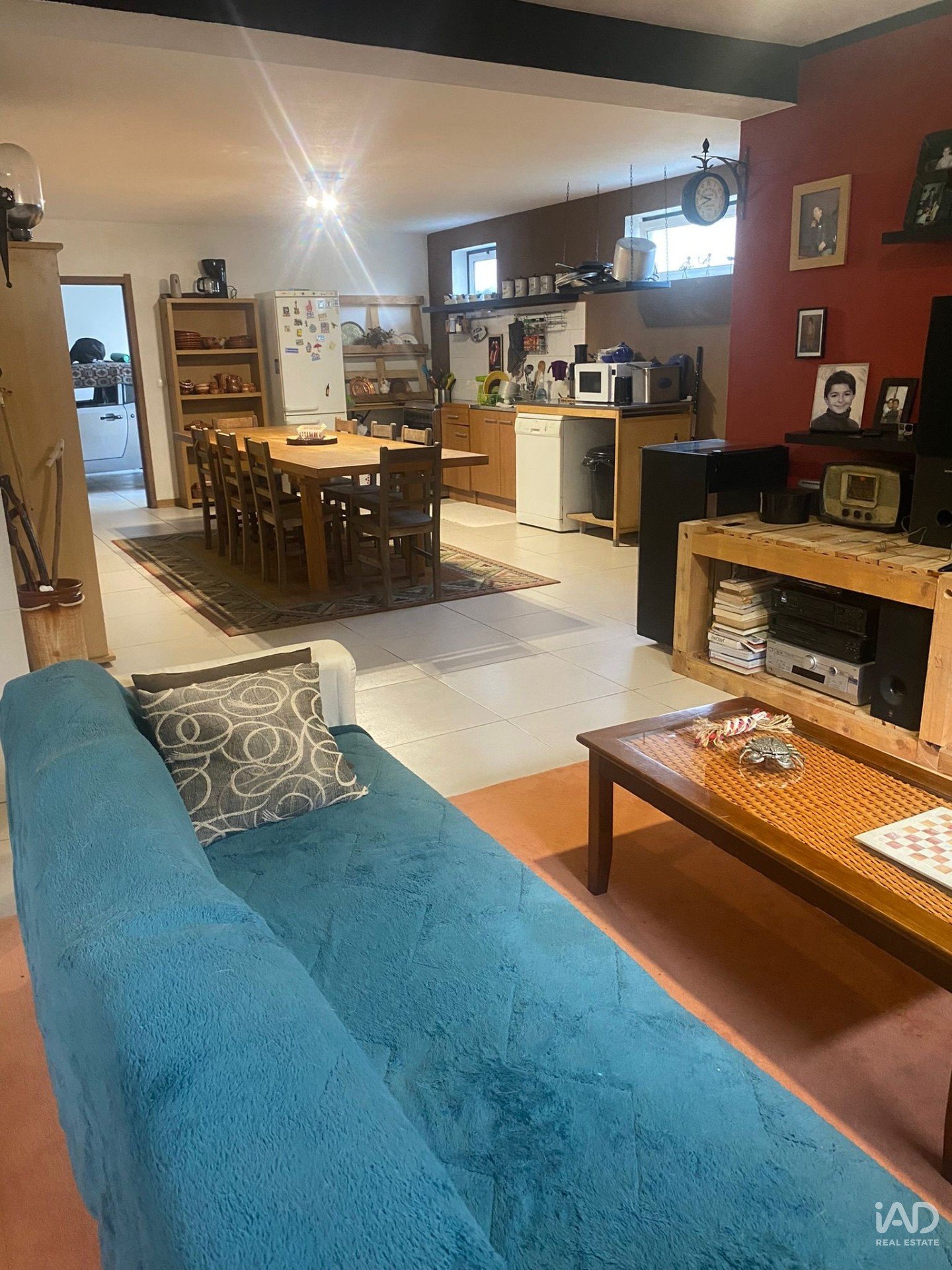 - Uma ampla cozinha equipada aberta para uma sala de estar