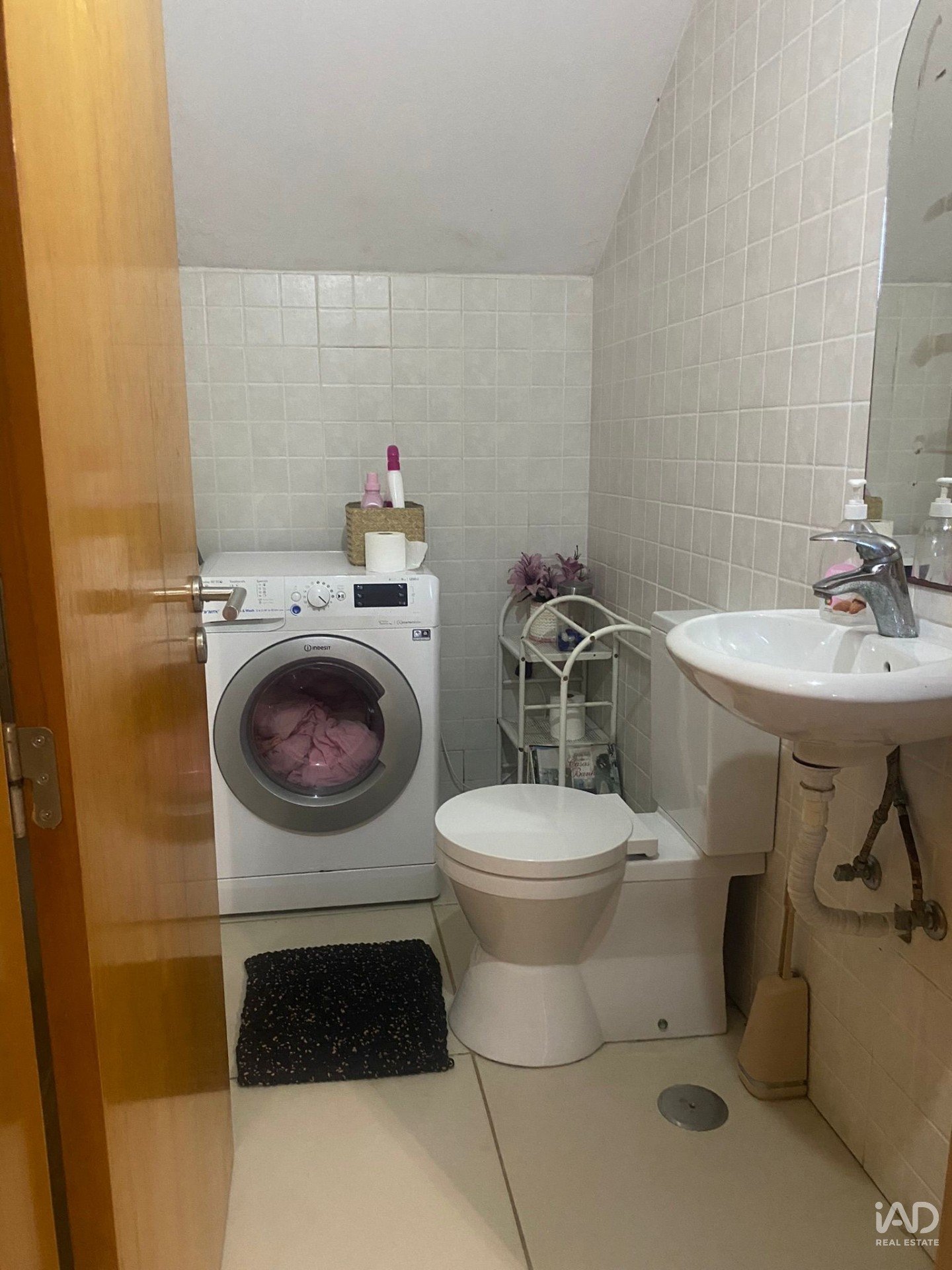 - Um WC com espaço lavandaria e um lavatório