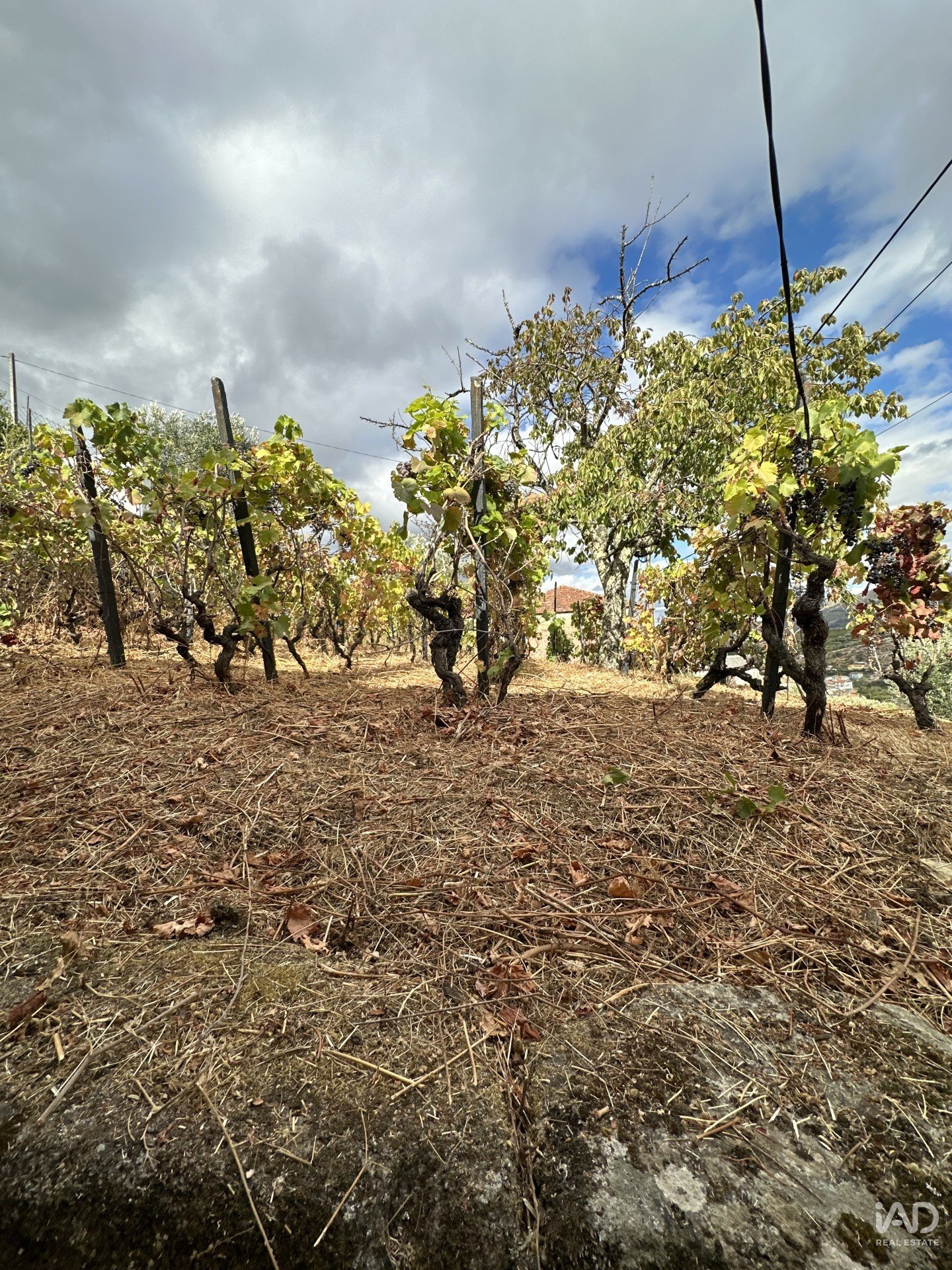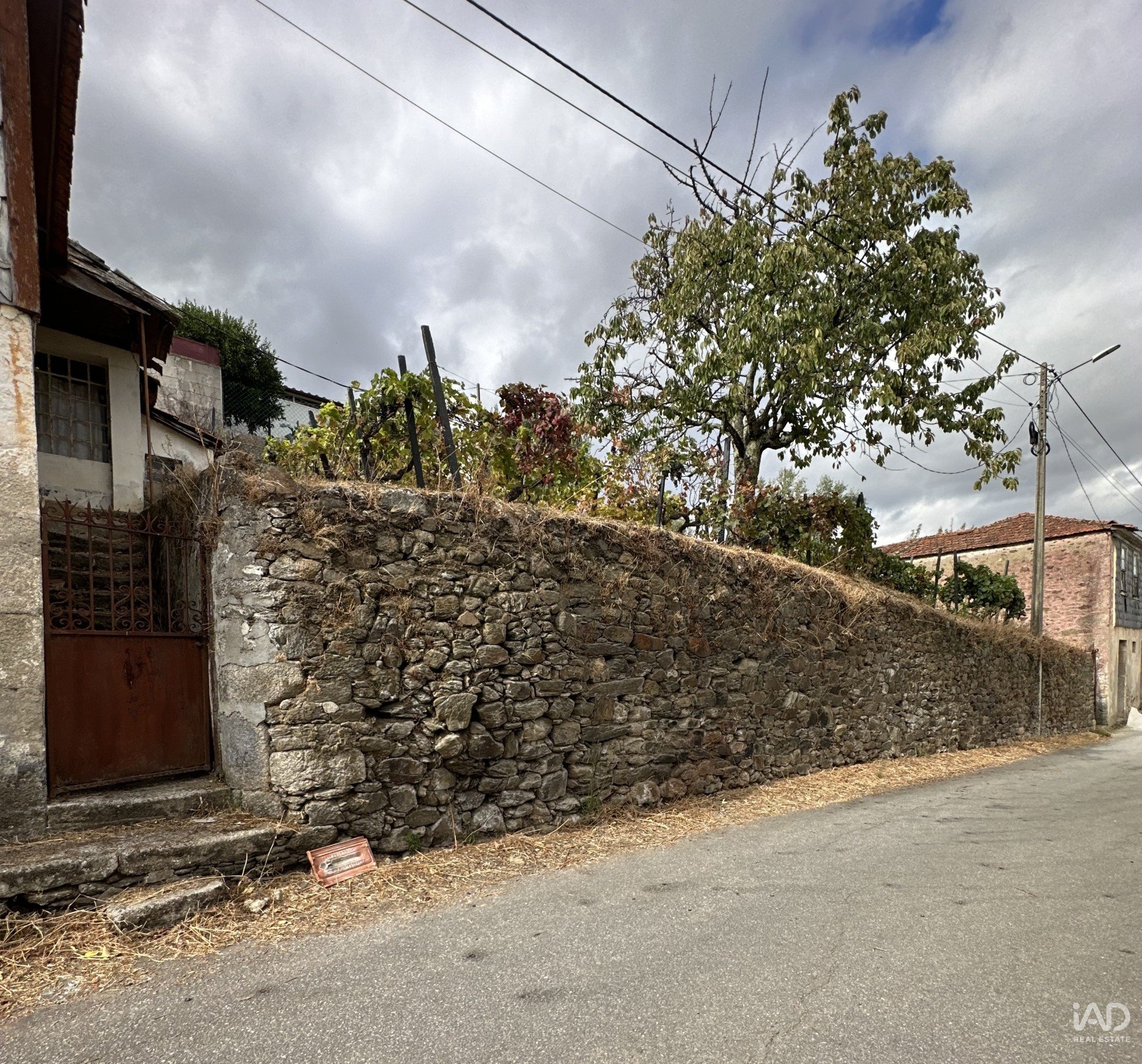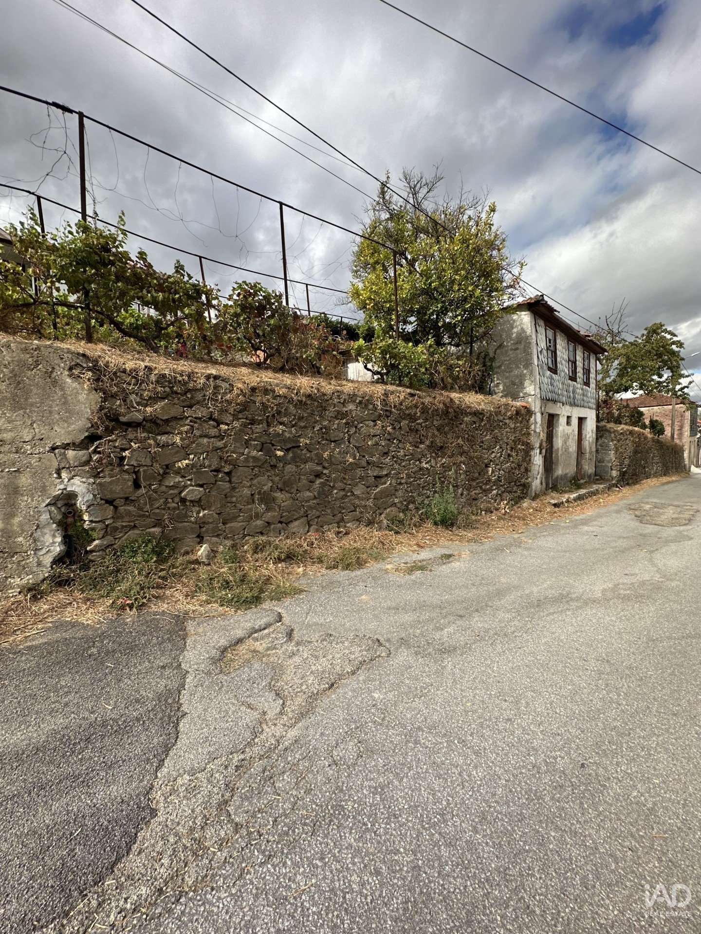 rústica a necessitar de renovação e um antigo lagar em granito no primeiro andar da casa, com sistema de vazamento para o rés-do-chão, onde antigamente se armazenavam as barricas de vinho.