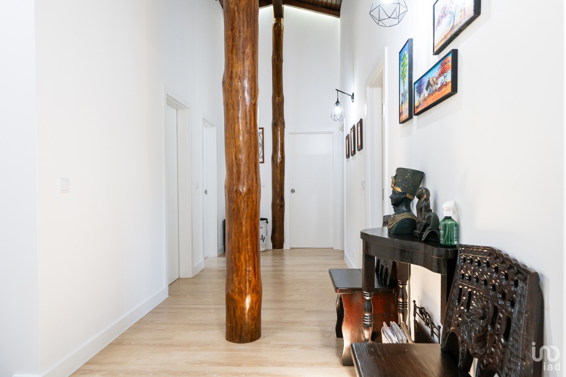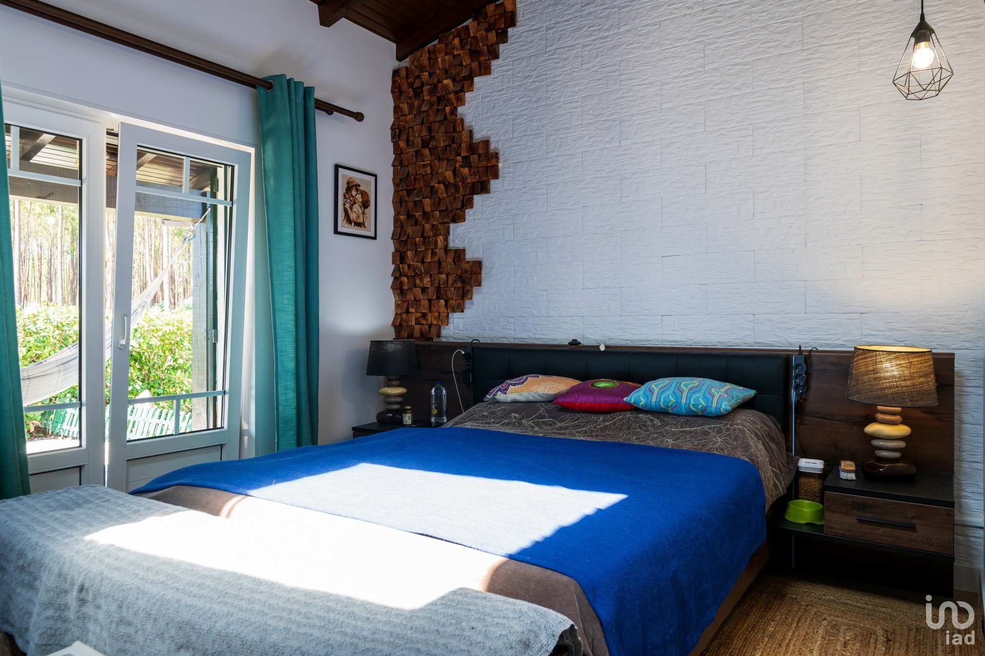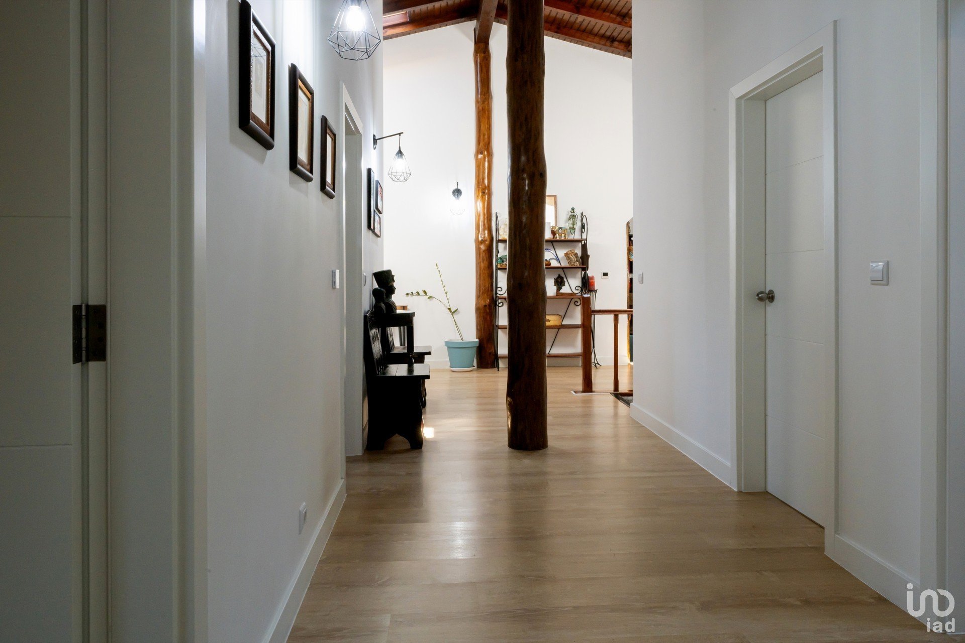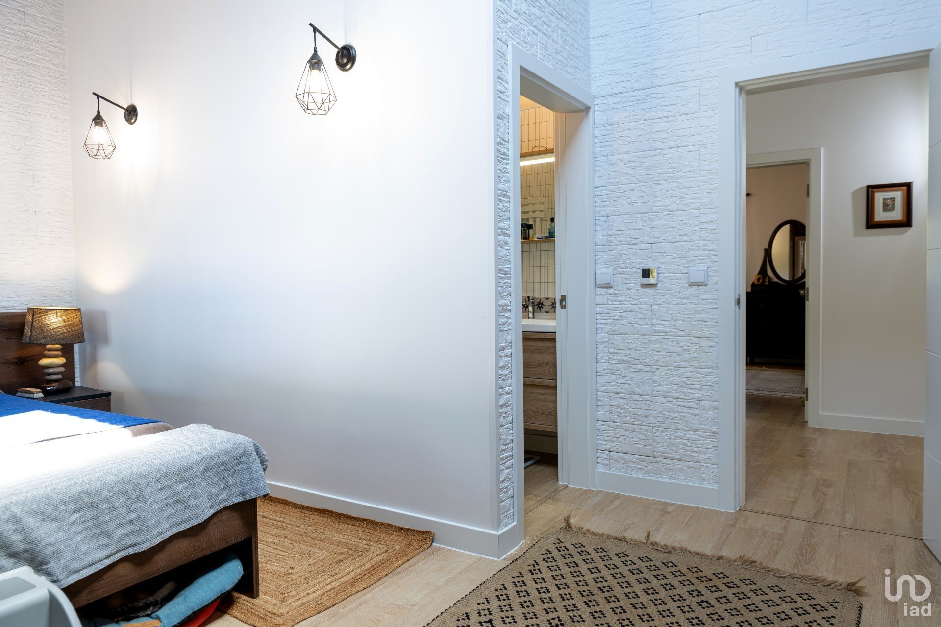 1º andar (casa principal) 200m² no total – 4 entradas: 3 portas e uma porta francesa do quarto principal. De momento, temos 3 quartos, um deles é uma suíte com duche e casa de banho. Além disso, este quarto tem entrada para o closet (feito de um quarto separado) através de uma porta estilo celeiro (uma incrível porta de madeira feita à mão).