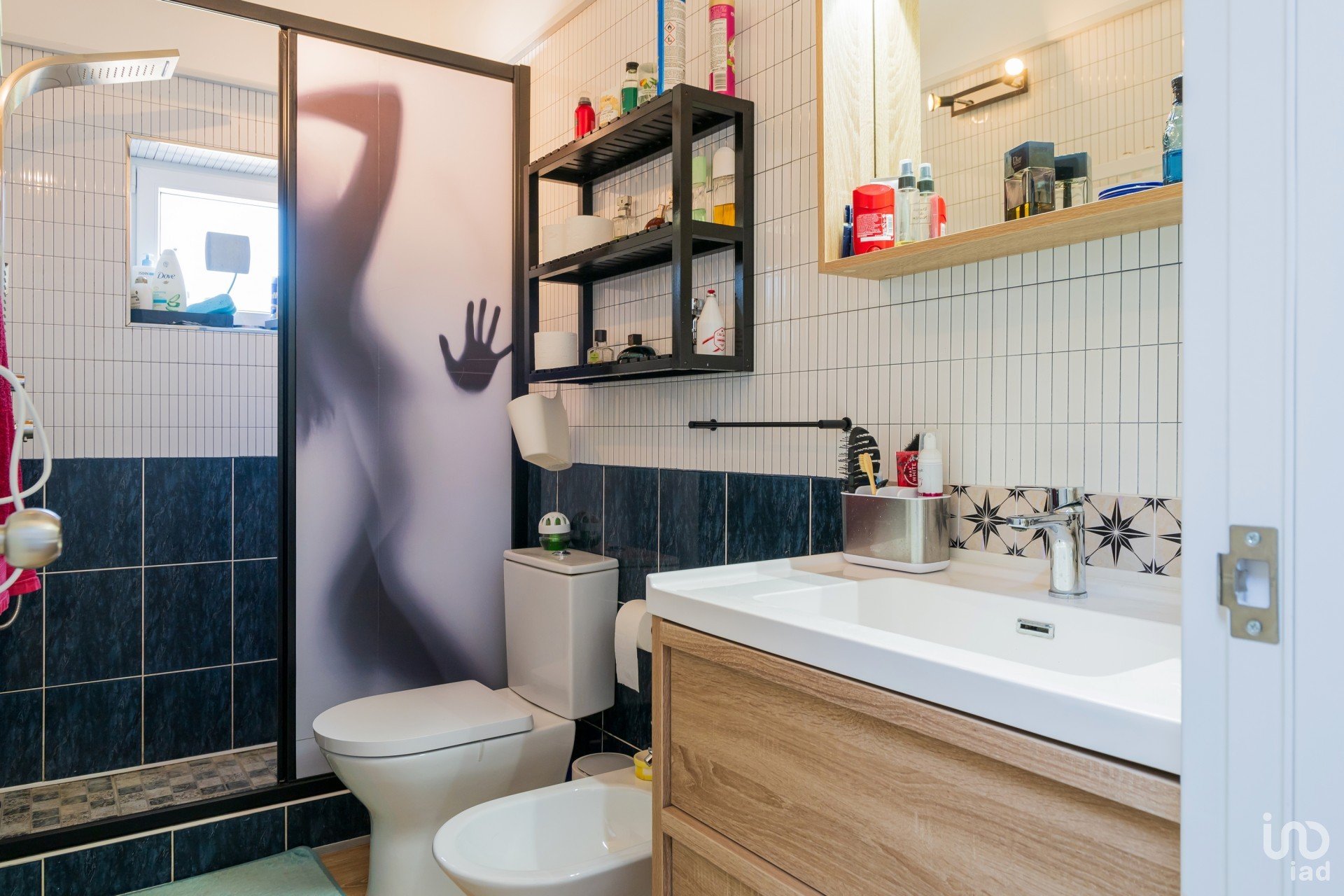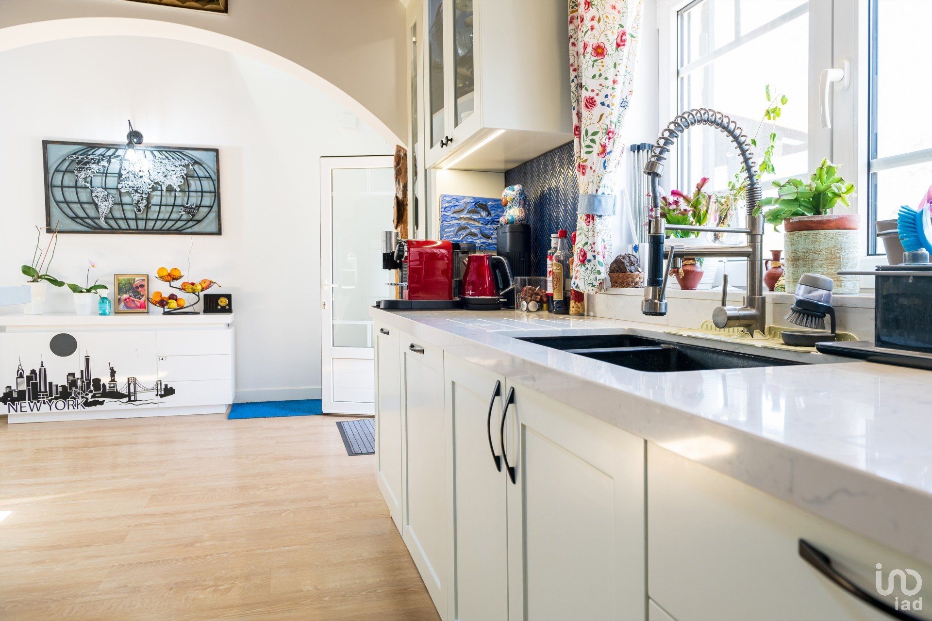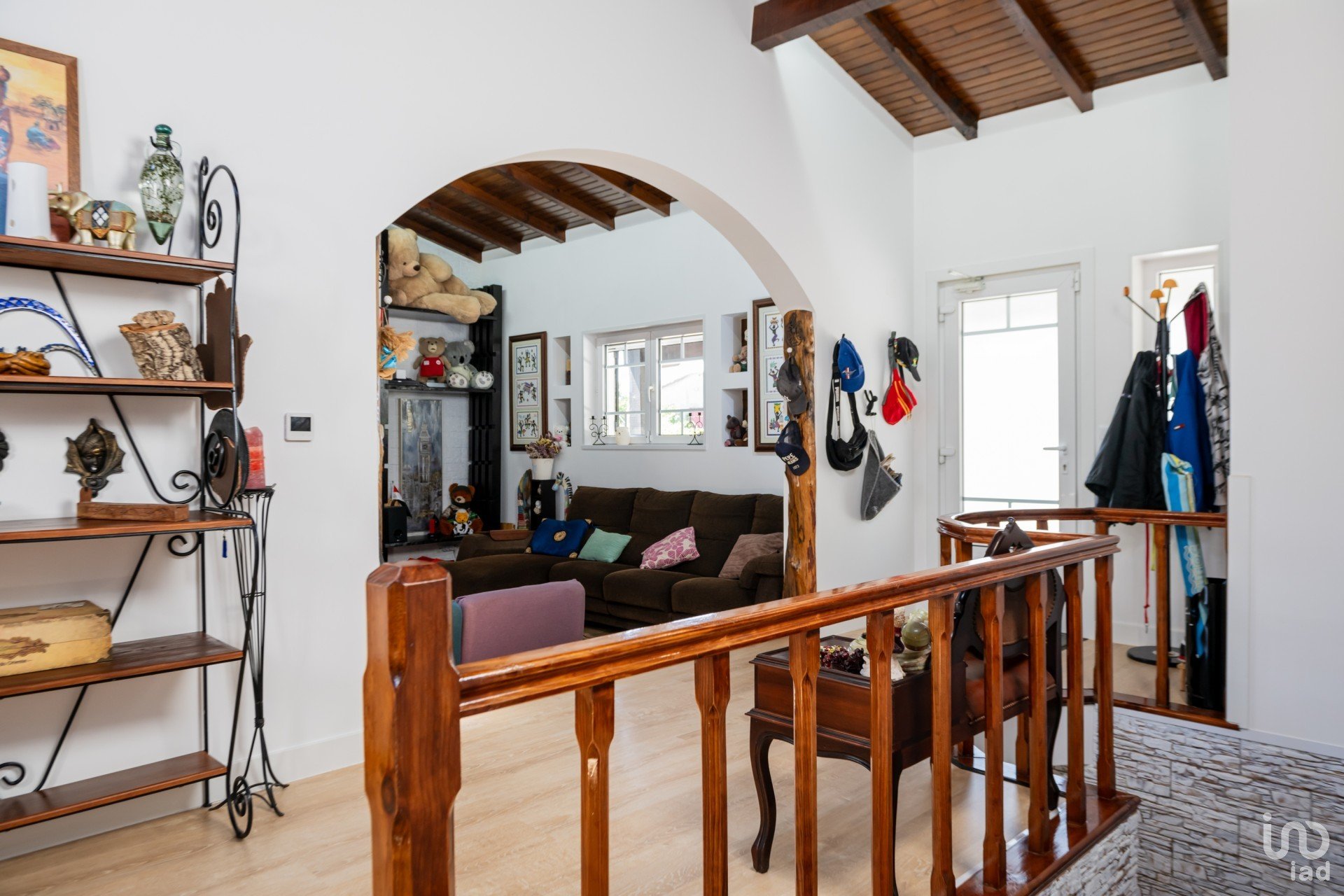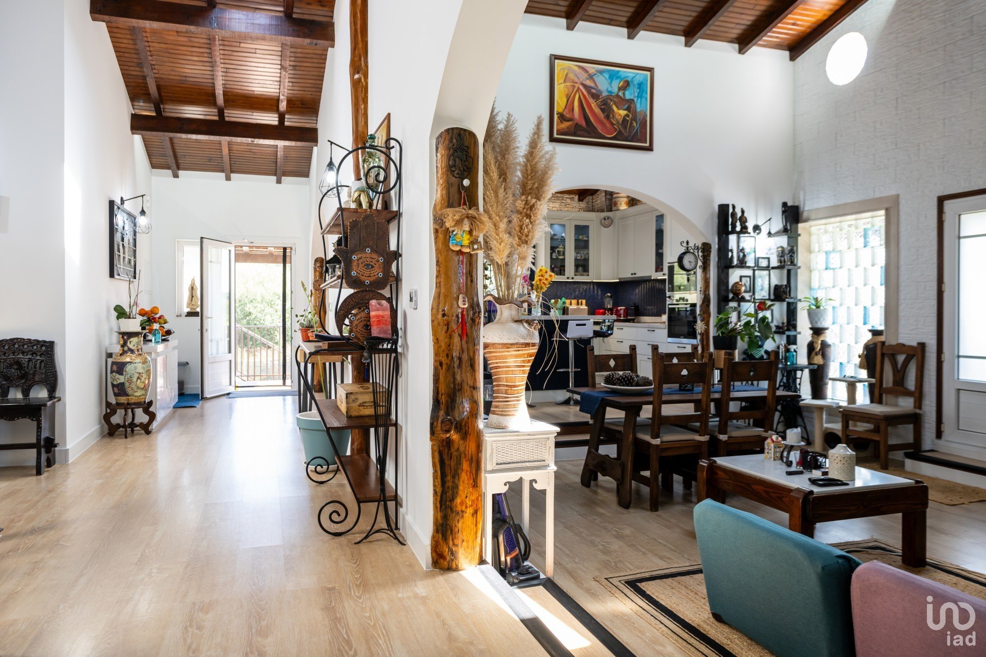 1º andar (casa principal) 200m² no total – 4 entradas: 3 portas e uma porta francesa do quarto principal. De momento, temos 3 quartos, um deles é uma suíte com duche e casa de banho. Além disso, este quarto tem entrada para o closet (feito de um quarto separado) através de uma porta estilo celeiro (uma incrível porta de madeira feita à mão).