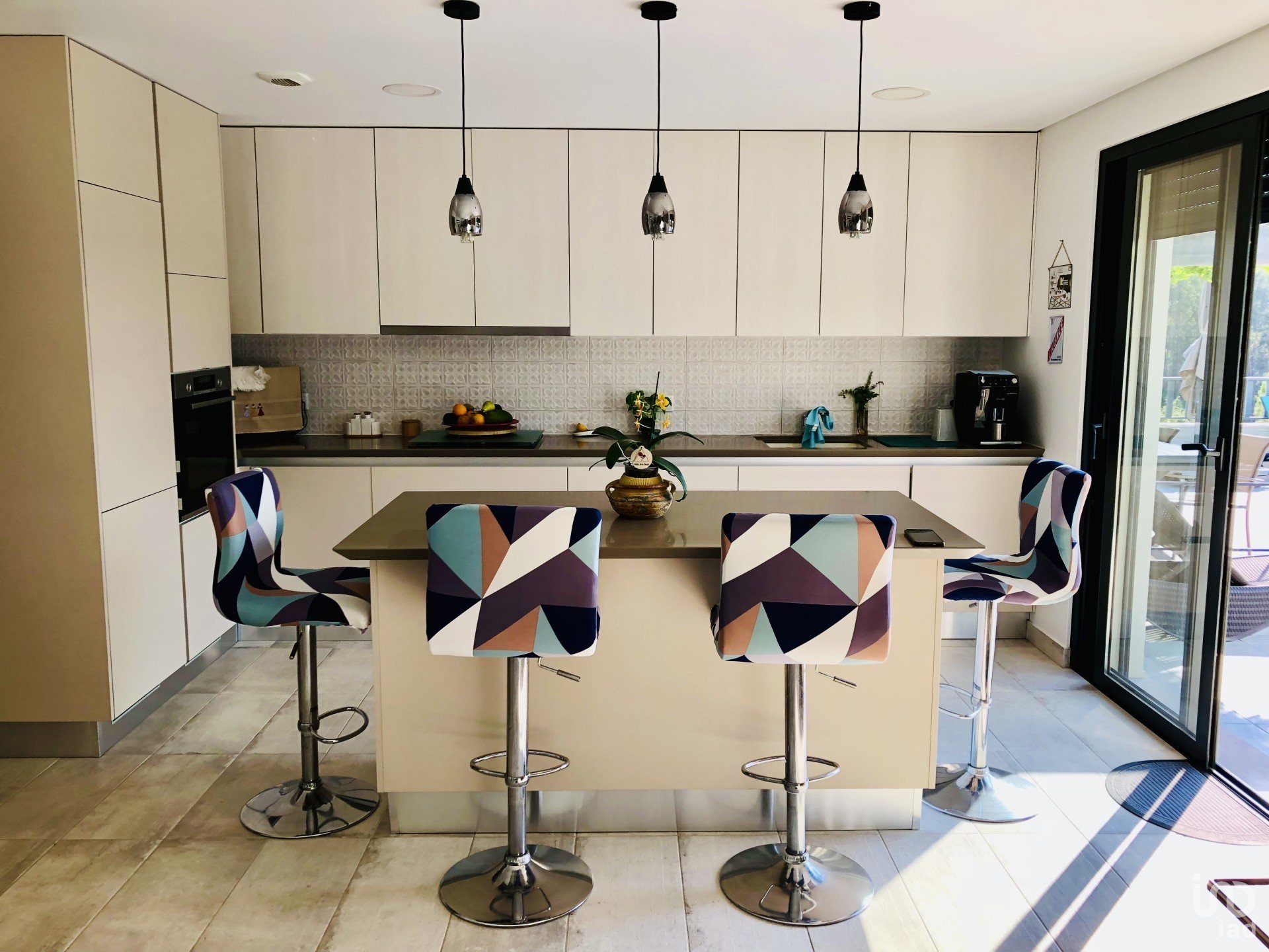 •Cozinha em open space, totalmente equipada com ilha central