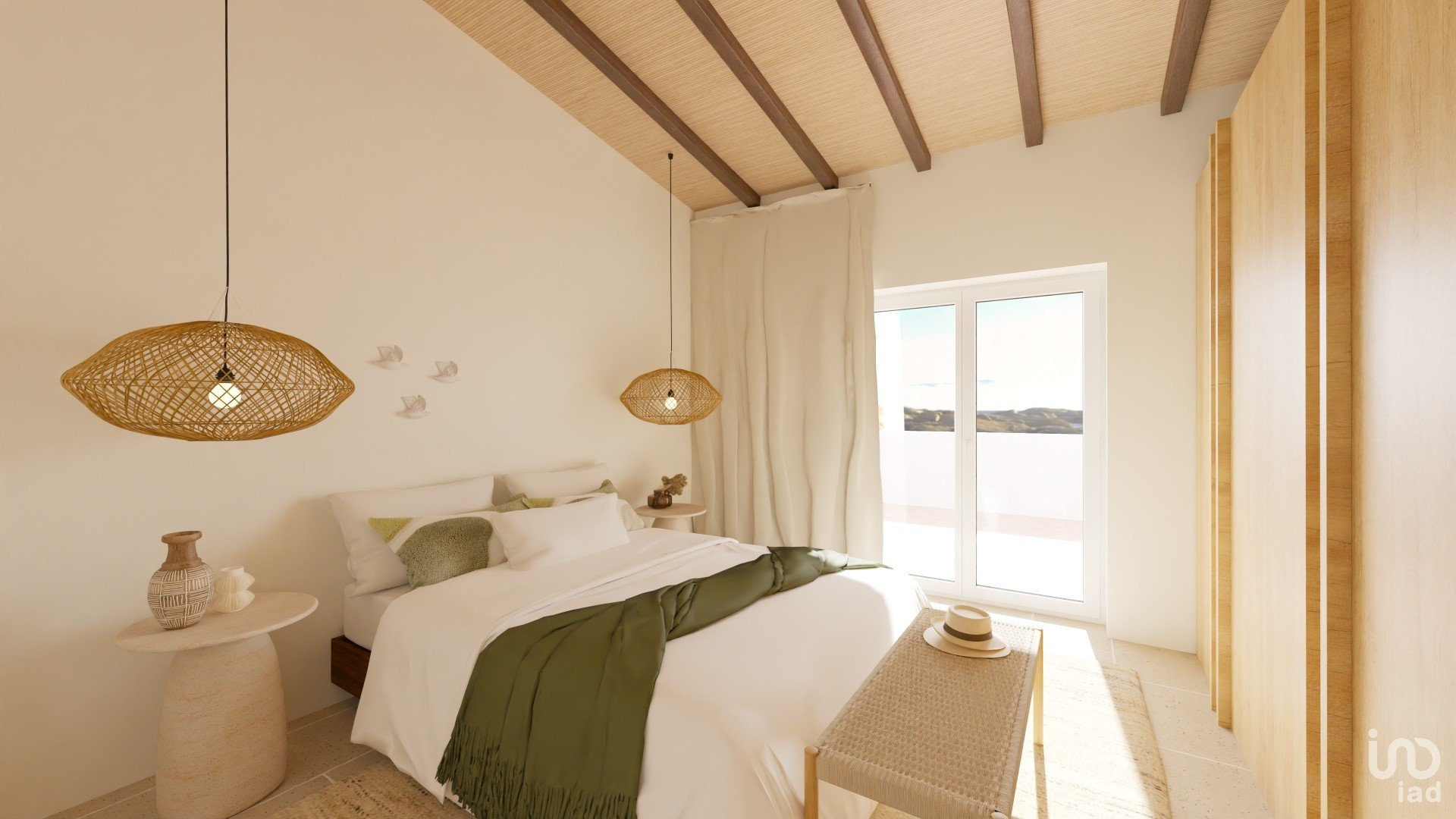2 quartos espaçosos com vista desimpedida para o exterior, cada um oferecendo um ambiente íntimo e relaxante. Imagine-se a ver o pôr do sol diretamente da sua cama!