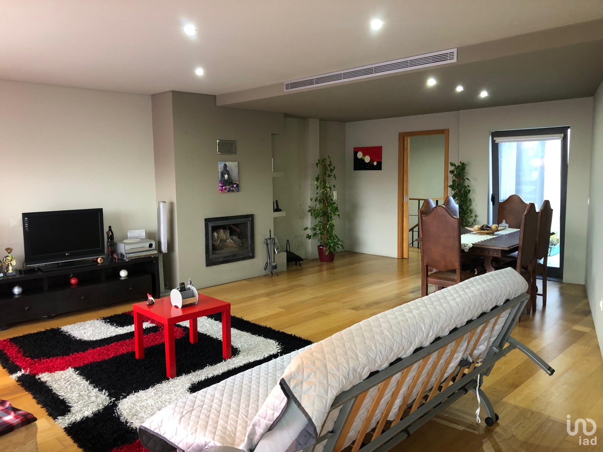 •Sala de estar com lareira equipada com recuperador de calor, ideal para momentos aconchegantes em família.