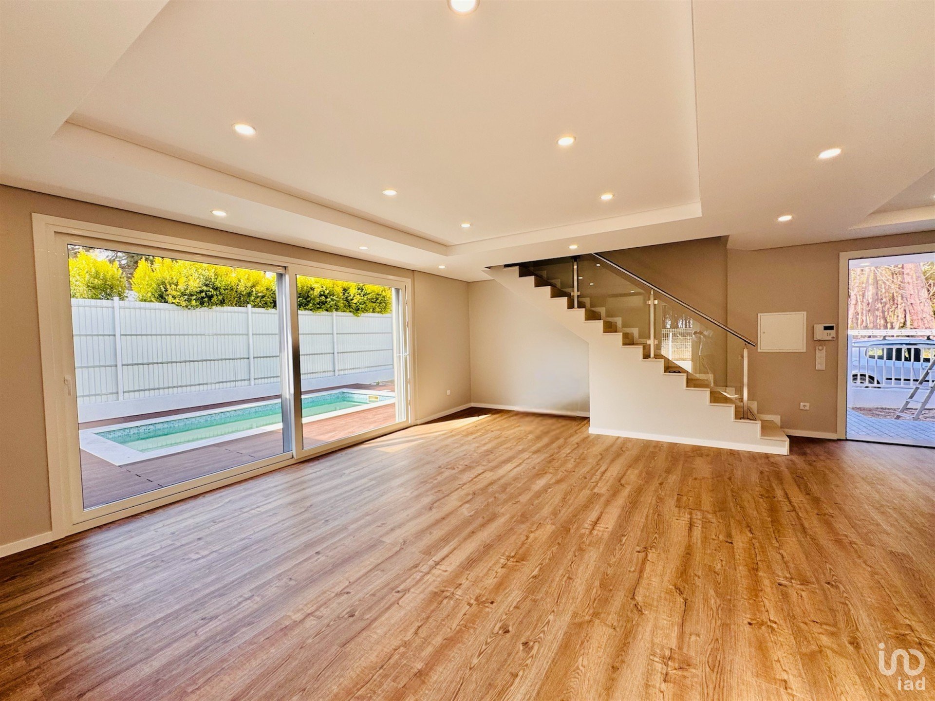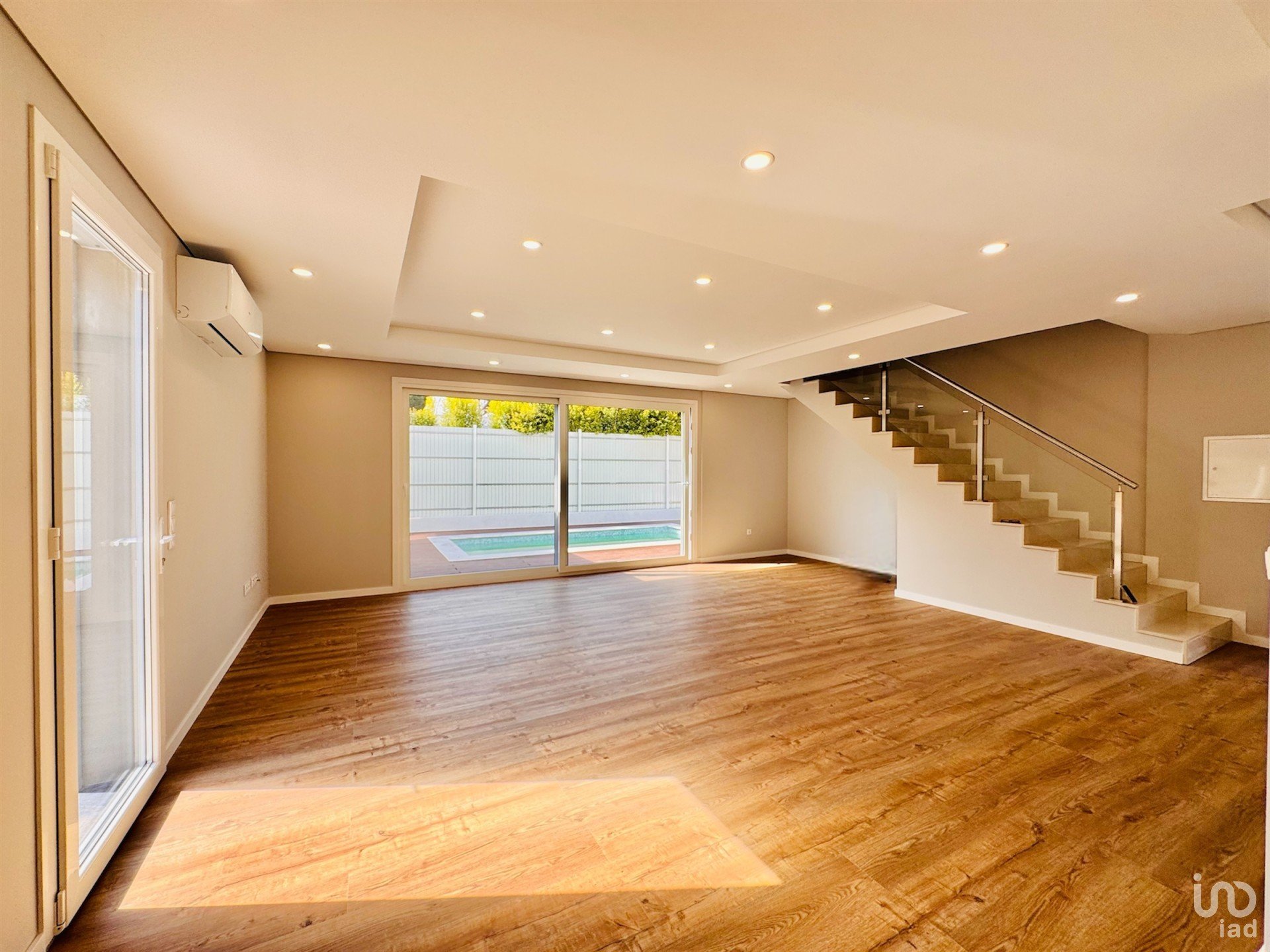 Sendo equipada com Ar-condicionados, vidros duplos em caixilharia PVC com grelhas de respiração, piso flutuante, com tectos falsos e roupeiros embutidos, bomba de calor e domótica. No exterior, a propriedade apresenta uma boa área de logradouro, onde existe um agradável jardim e piscina. A construção inclui estacionamento privativo para duas viaturas e garagem privada.