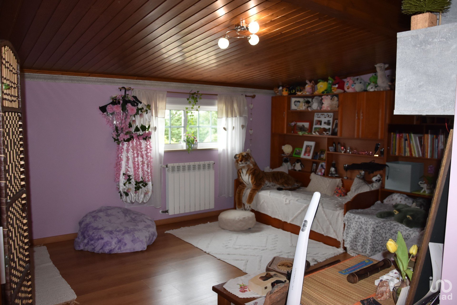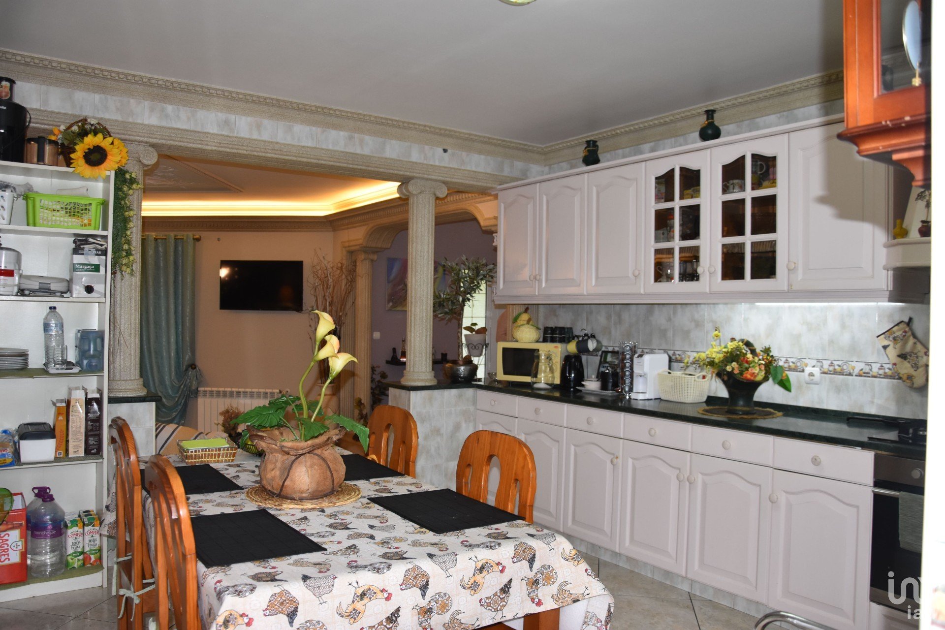 Quartos de dimensão generosa, incluindo uma suite master, cozinha equipada, sala de estar com lareira e diversas zonas de arrumos. Garagem para 2 carros e espaço adicional para estacionamento.
