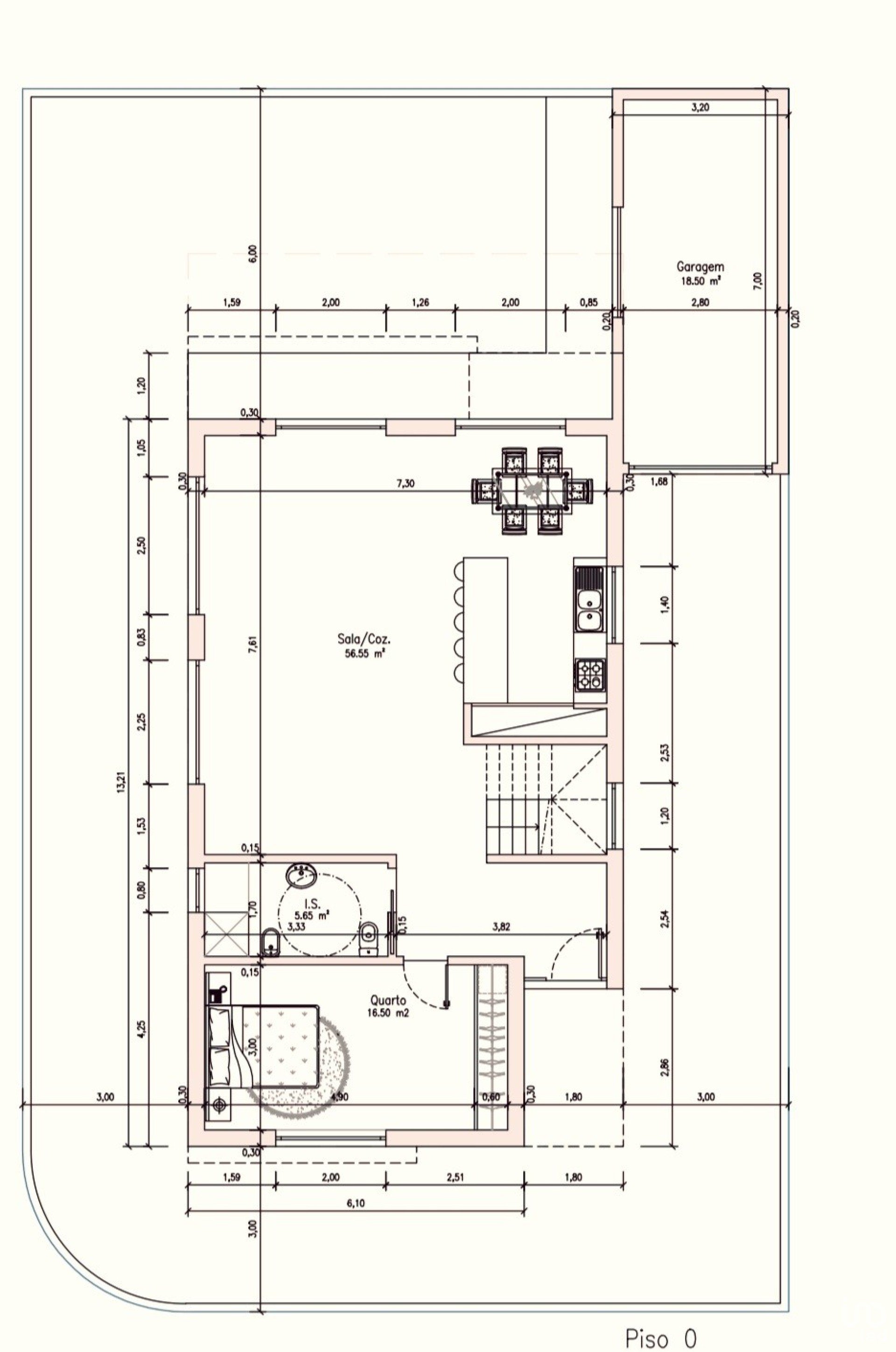 O imóvel está inserido num lote de terreno com 307 m2, com uma área de construção de 220 m2.