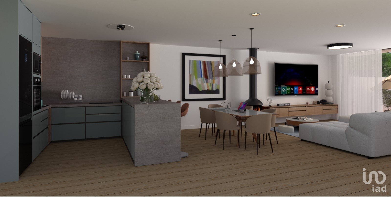 •Cozinha e sala em open space.