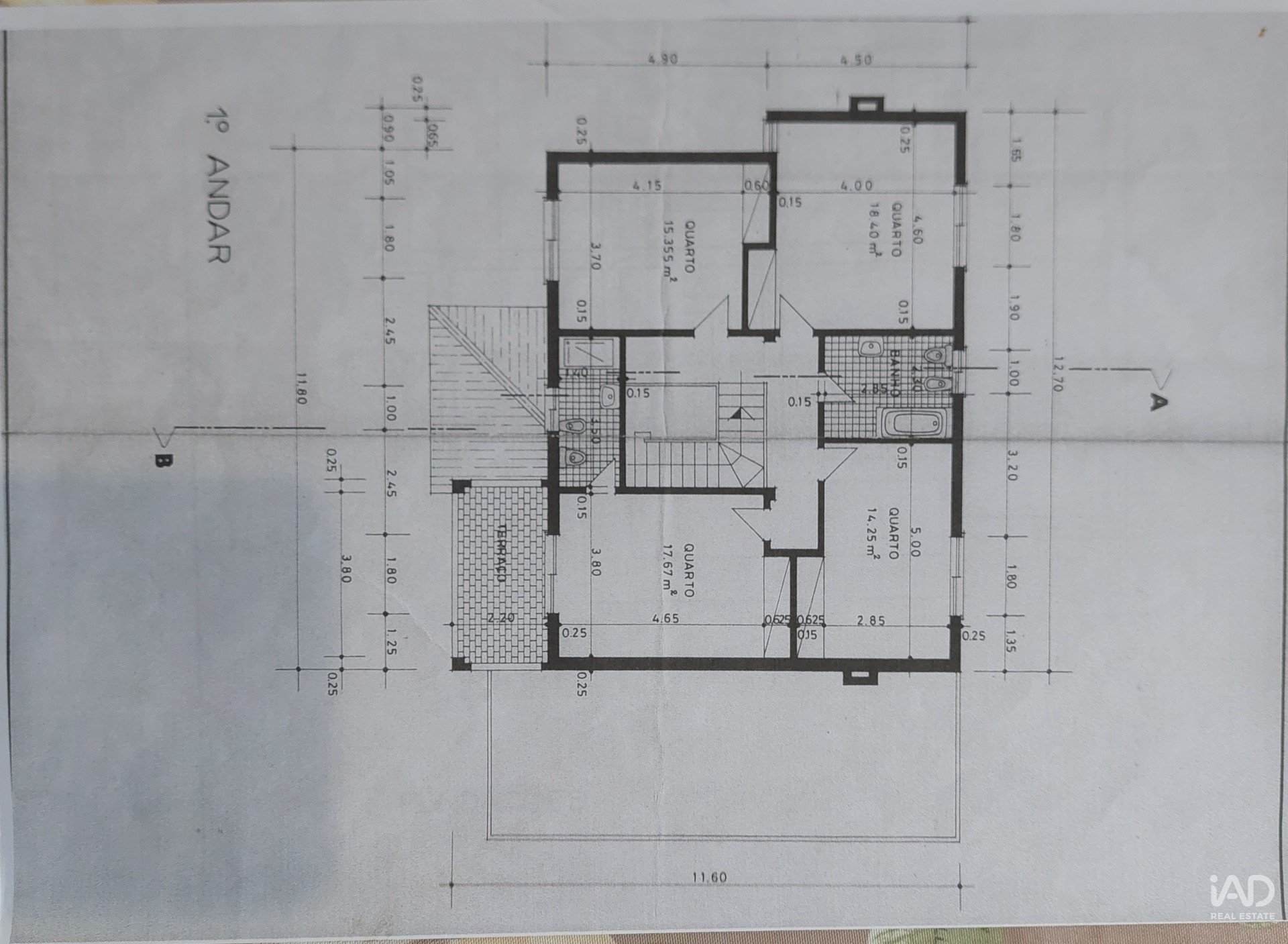 O 1º andar é composto por 4 quartos espaçosos, 1 deles em suíte, 2 casas de banho e uma varanda.