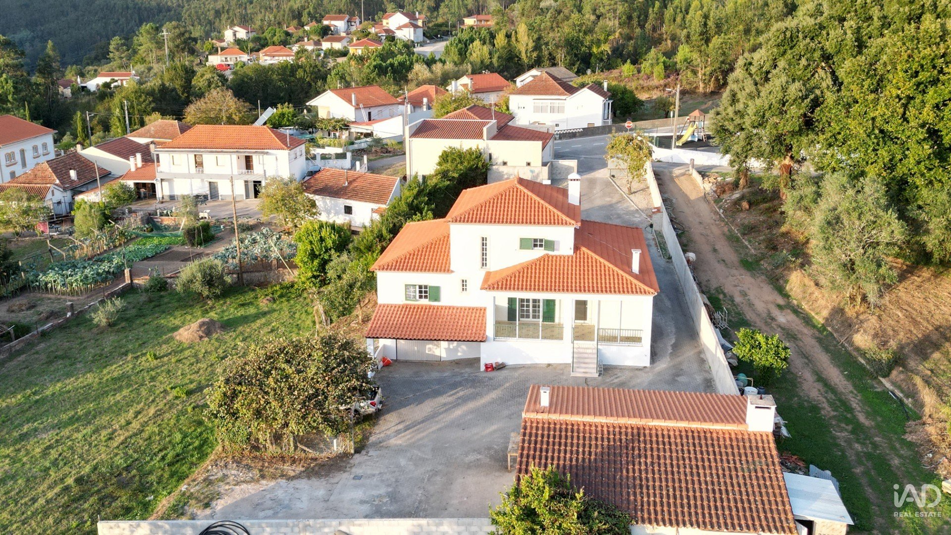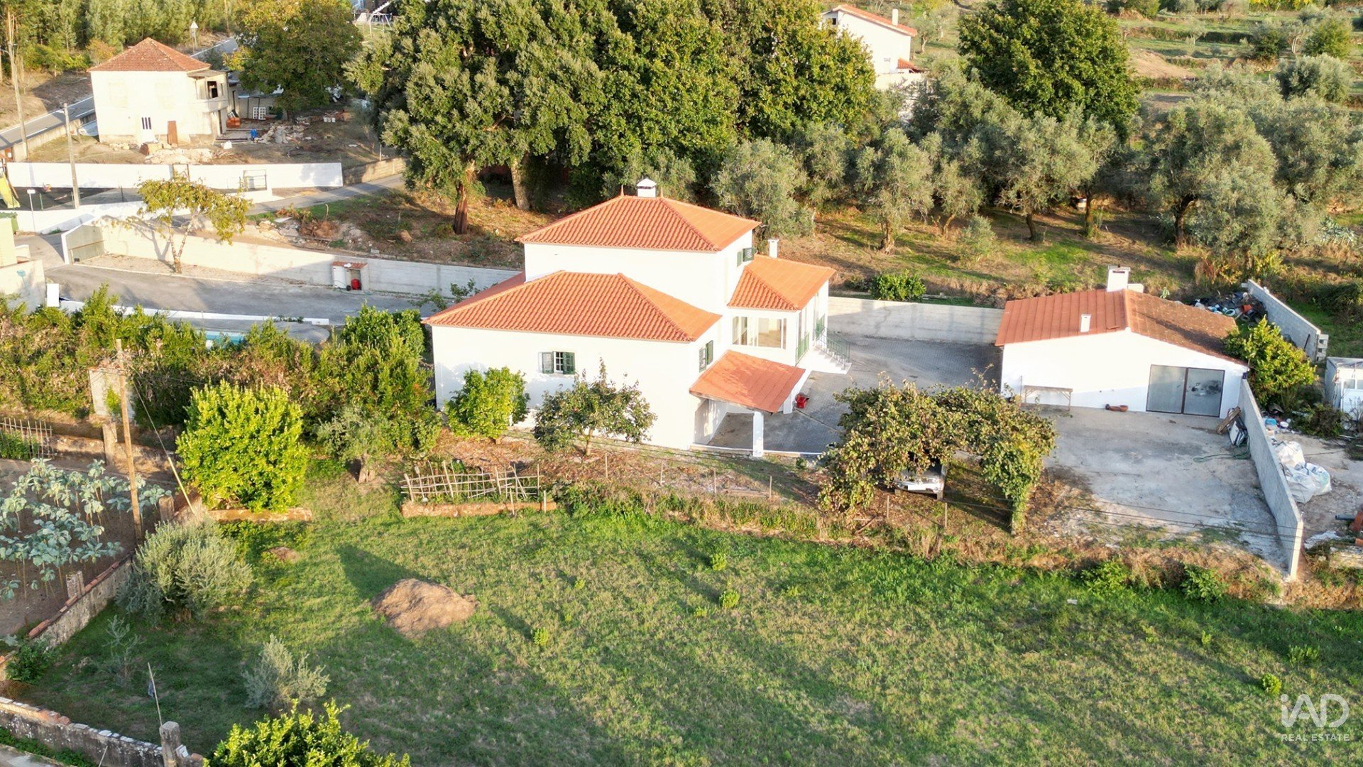 No exterior e na parte de trás da casa, há ainda um anexo com uma grande churrasqueira fechada com forno a lenha, grelhador e casa de banho completa.