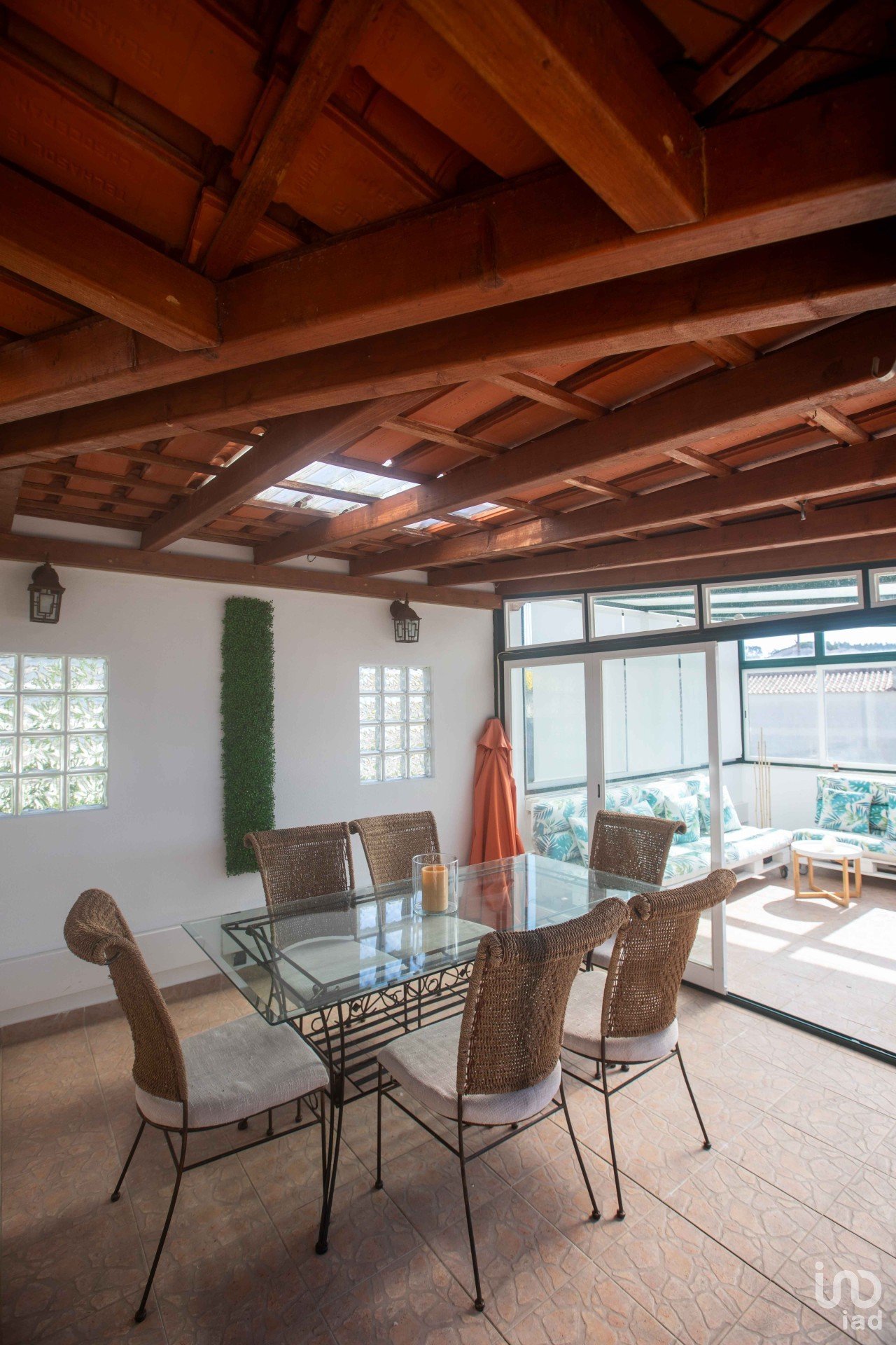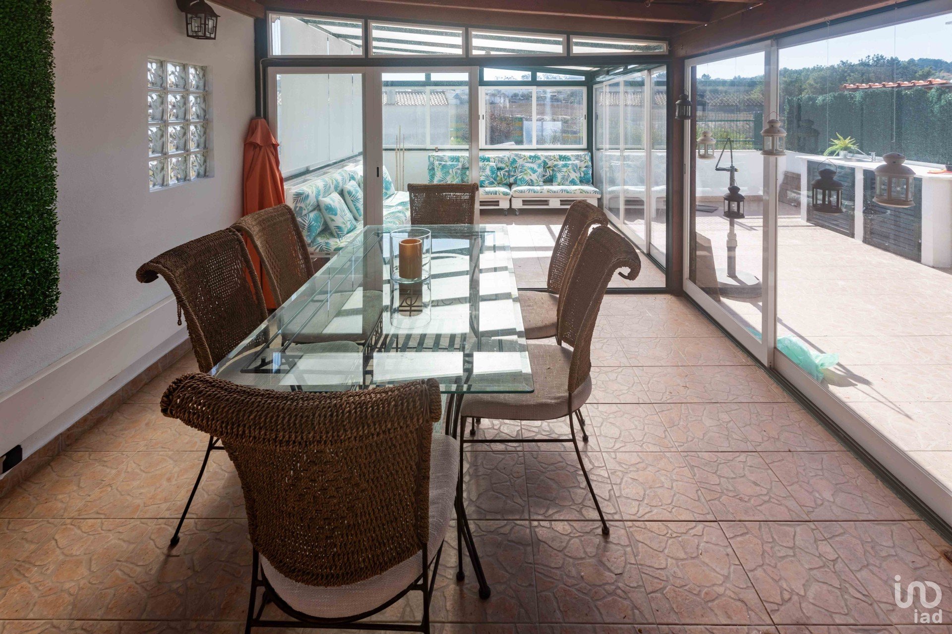 Área exterior com jardim e espaço para lazer com zona fechada que podemos atribuir como jardim de Inverno, criando um ambiente cómodo e acolhedor mesmo nos dias mais frios, com acesso a pátio exterior com zona de churrasco.