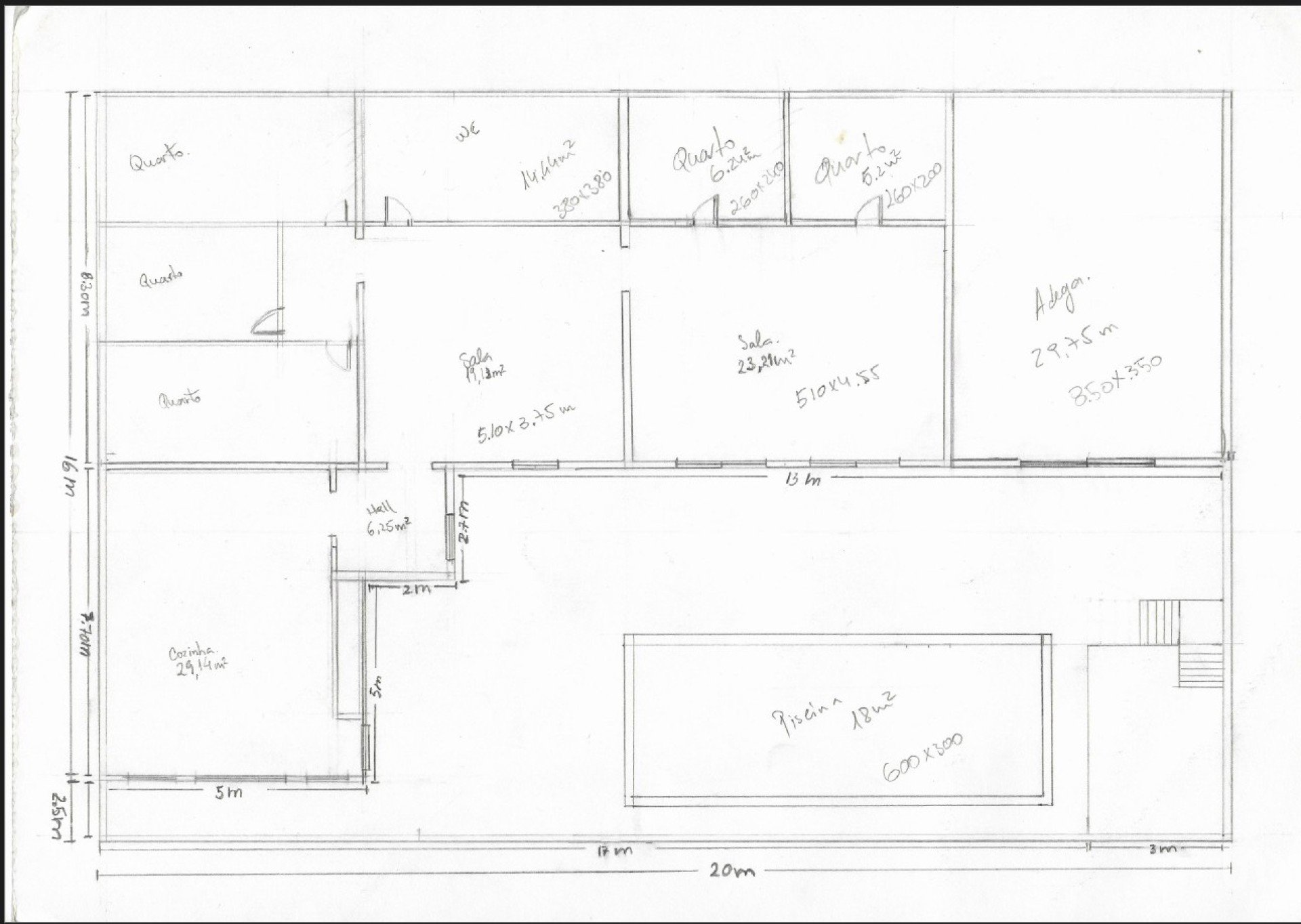 Moradia, piscina, adega, logradouros e diversos espaços que podem ser potenciados.