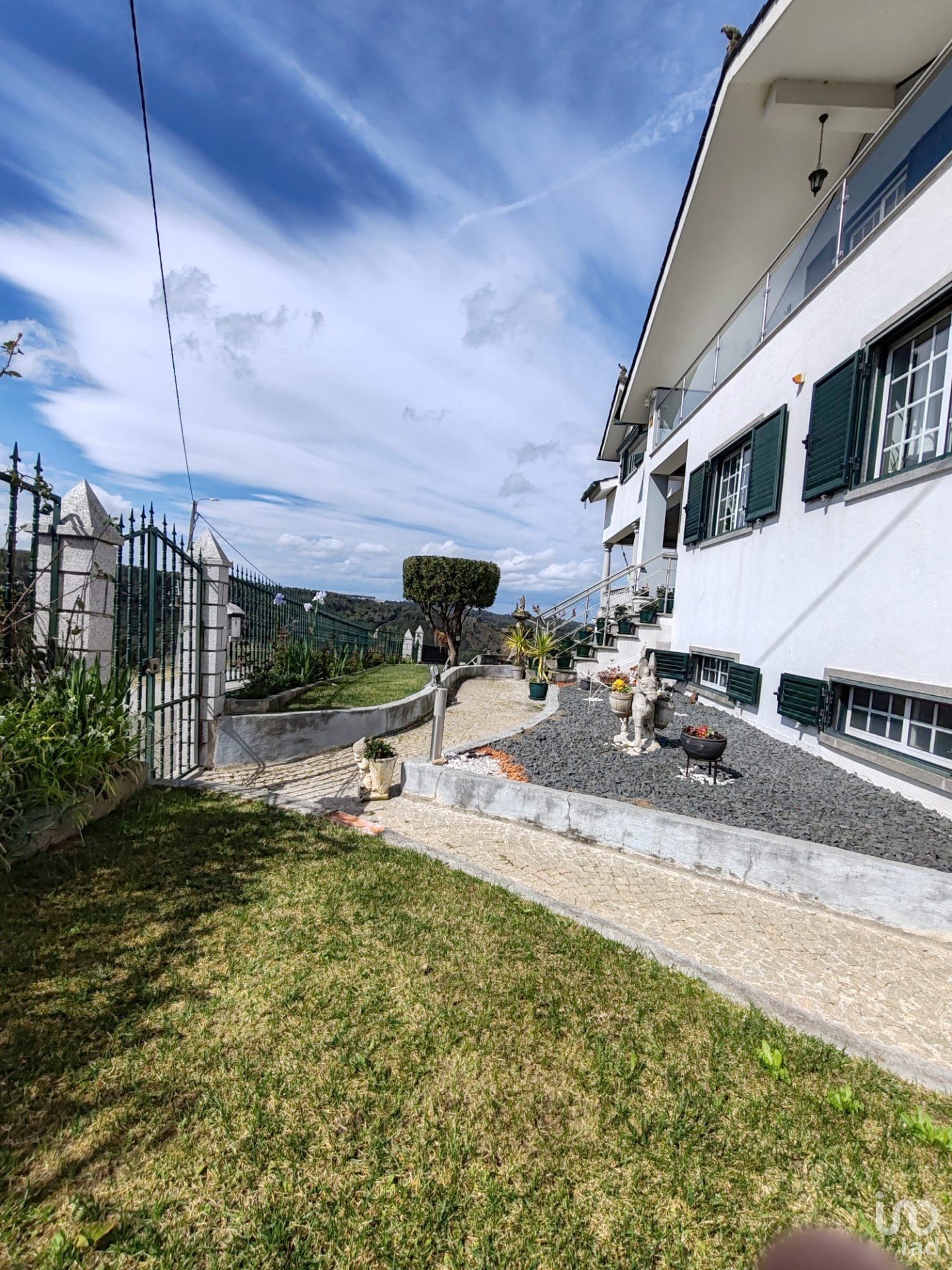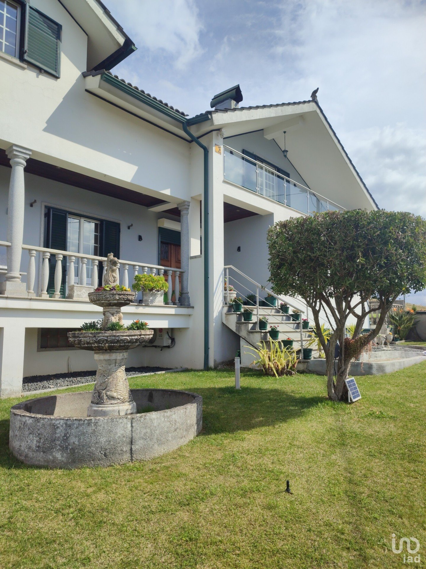 Temos um terreno com uma área total de 1460 m2, totalmente vedado e murado. Todo o espaço envolvente da casa está bem cuidado, com jardins.