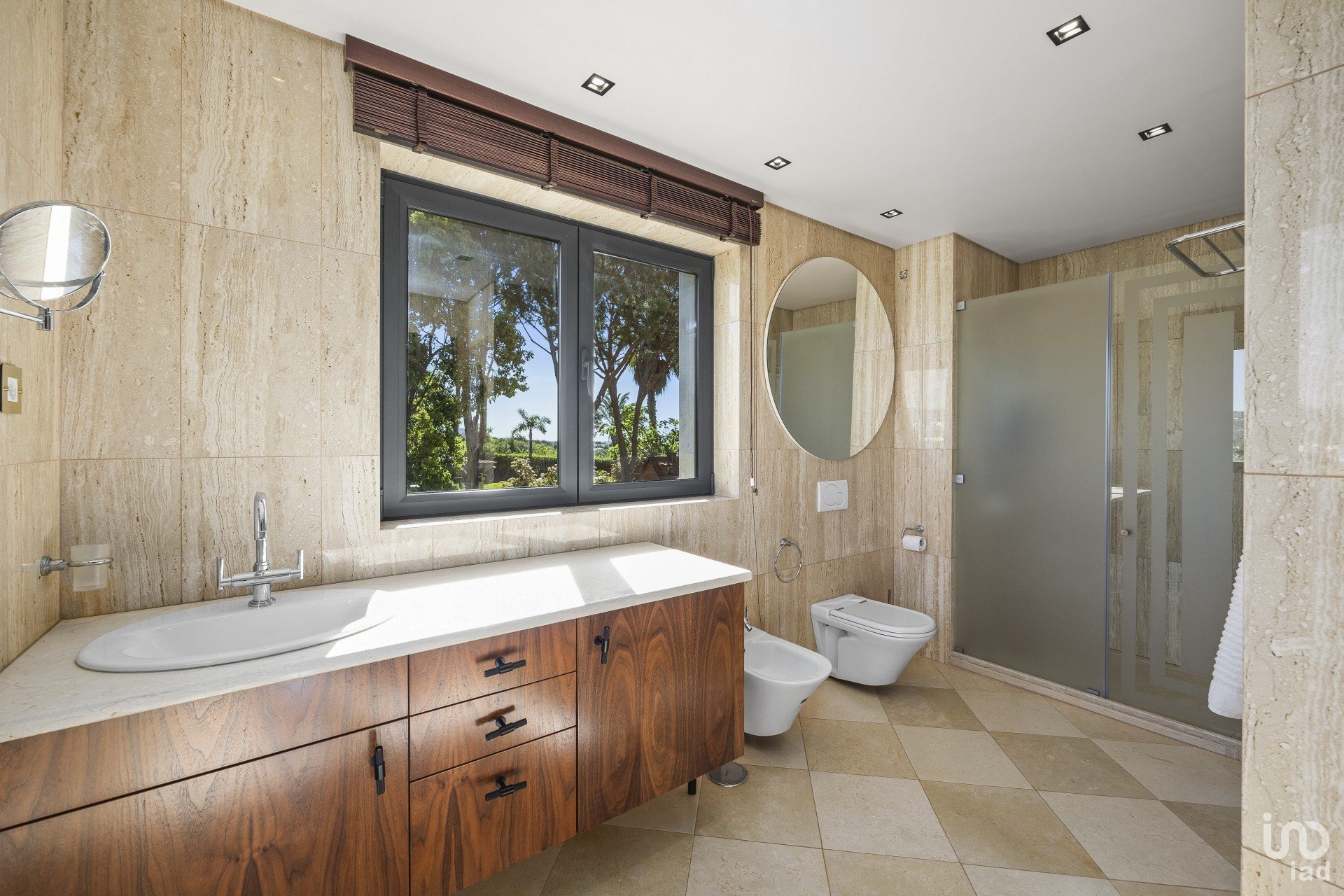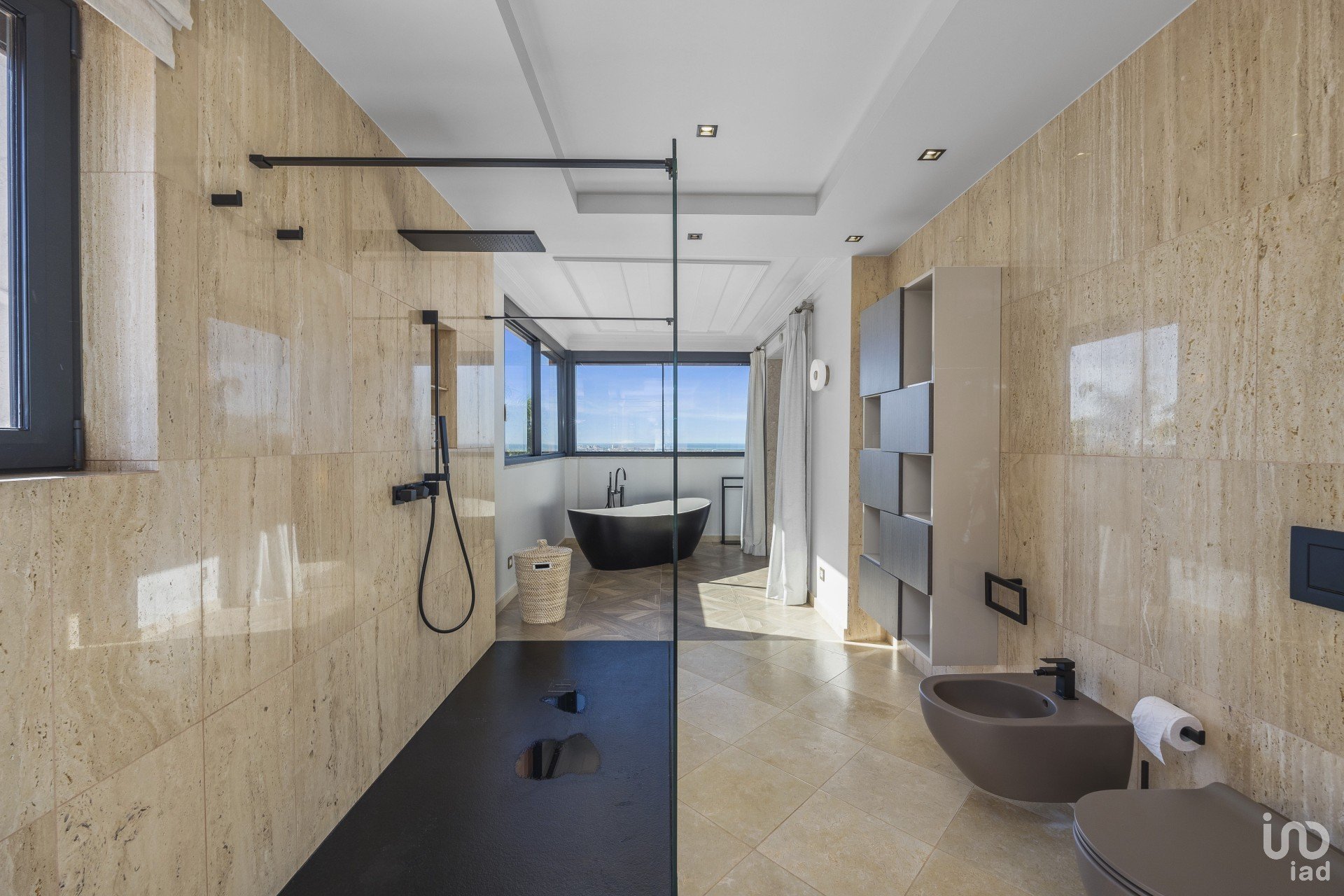 A propriedade tem piso aquecido e está totalmente mobilada com mobiliário feito à medida.