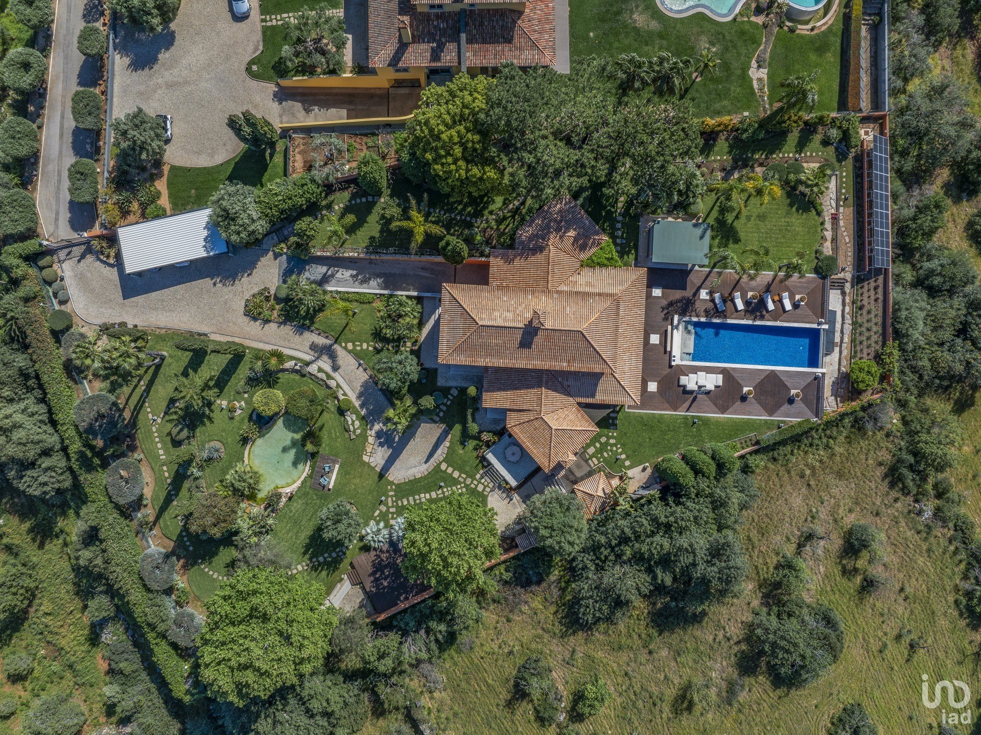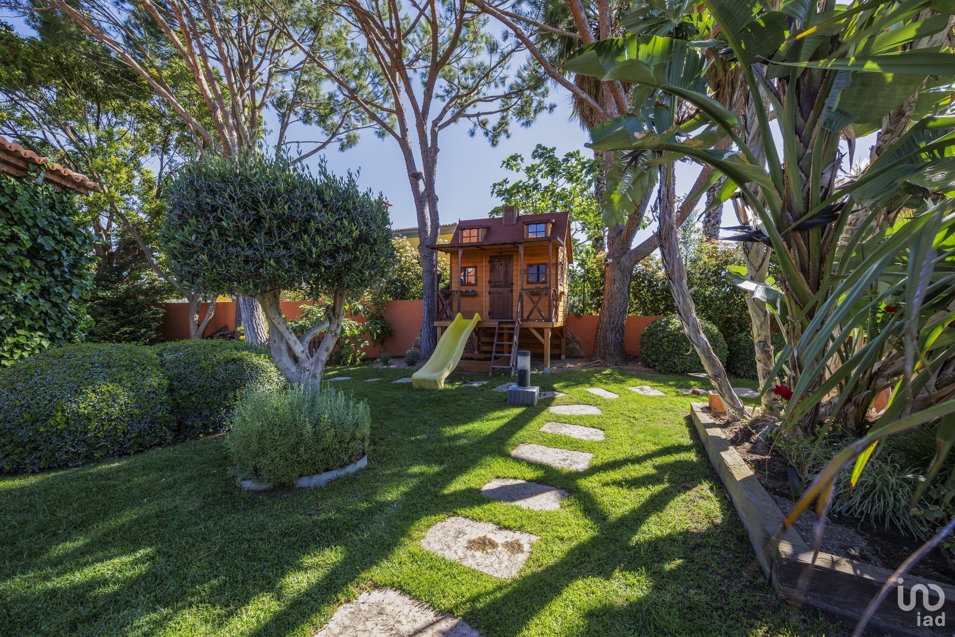 No lado sul, tem uma piscina deslumbrante com muitas áreas para relaxar e descontrair, também muito espaço exterior para refeições e uma fantástica casa na árvore!