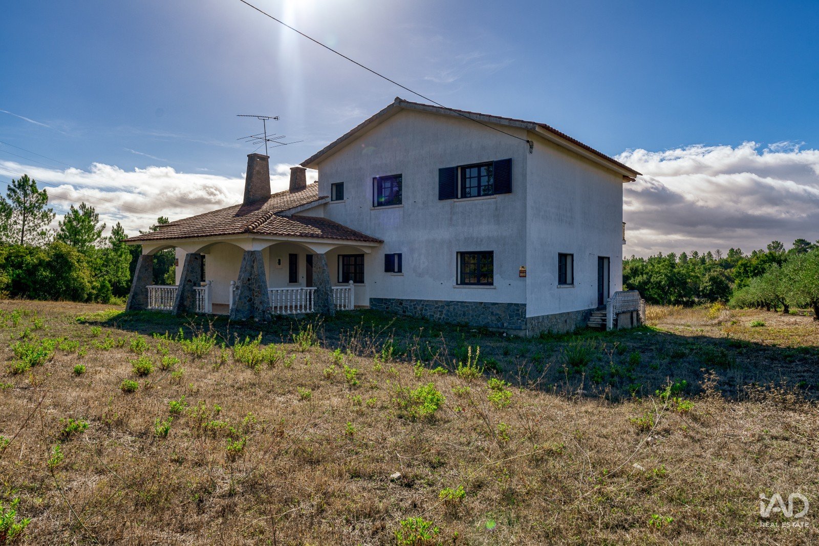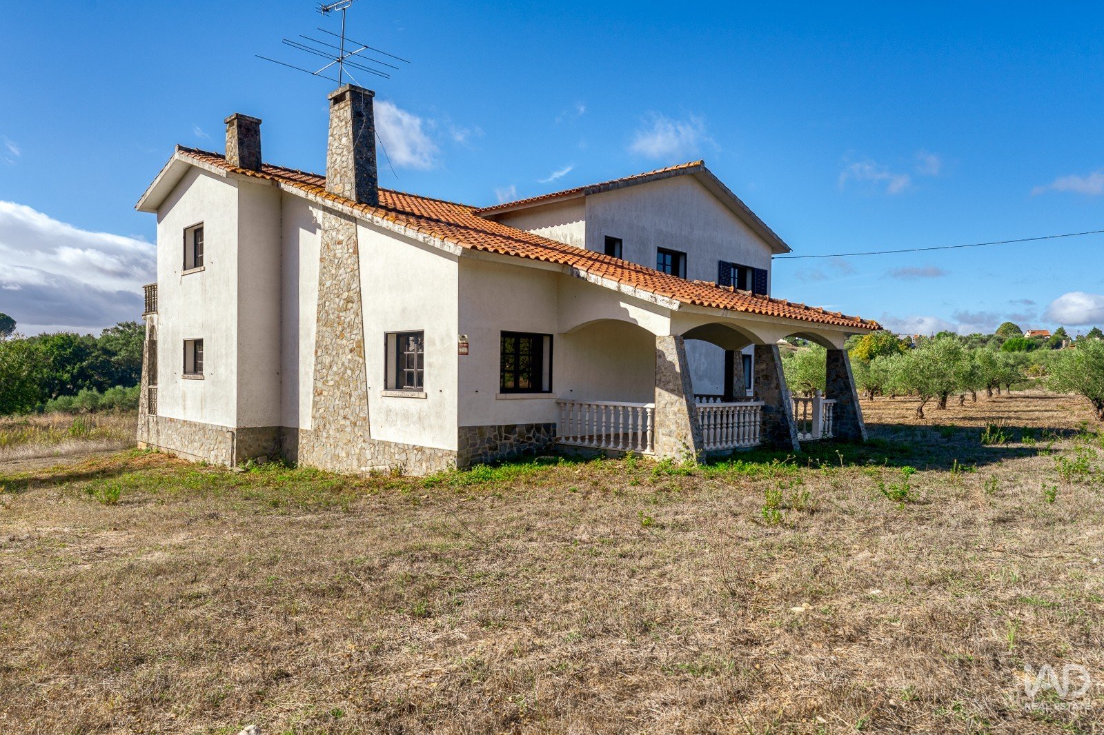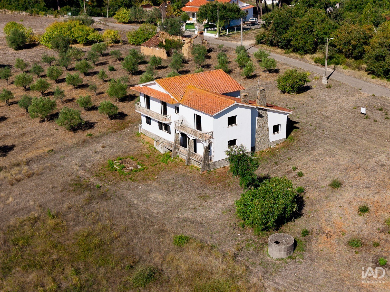 A moradia está implantada num terreno com árvores dispersas e muito espaço para projetos personalizados — seja para quem deseja criar um jardim envolvente, instalar piscina, cultivar uma horta biológica ou até desenvolver um pequeno projeto turístico.