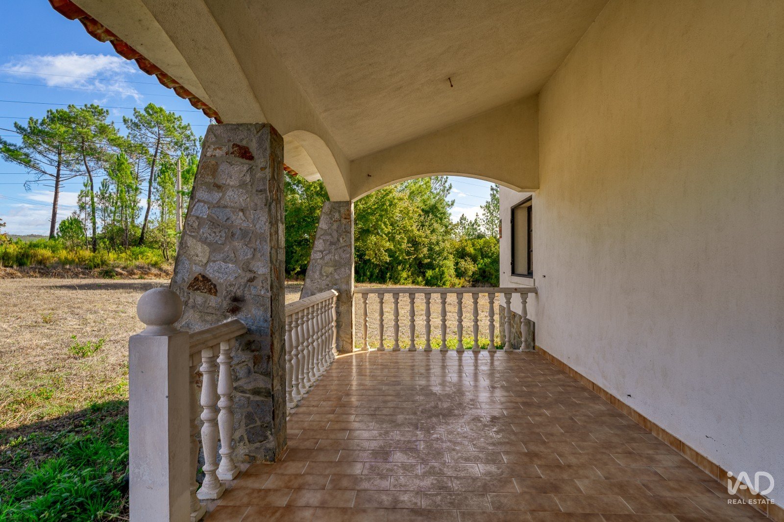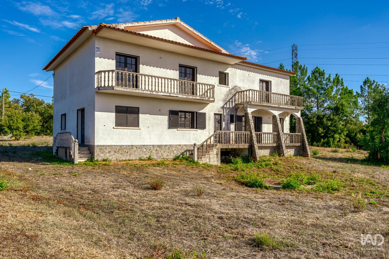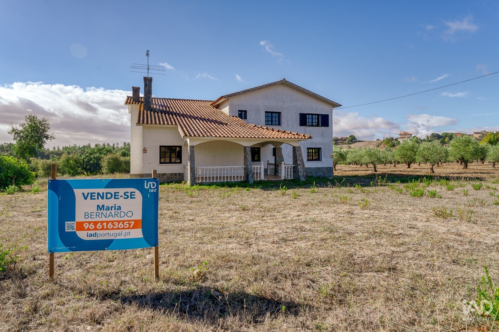 A moradia está implantada num terreno com árvores dispersas e muito espaço para projetos personalizados — seja para quem deseja criar um jardim envolvente, instalar piscina, cultivar uma horta biológica ou até desenvolver um pequeno projeto turístico.