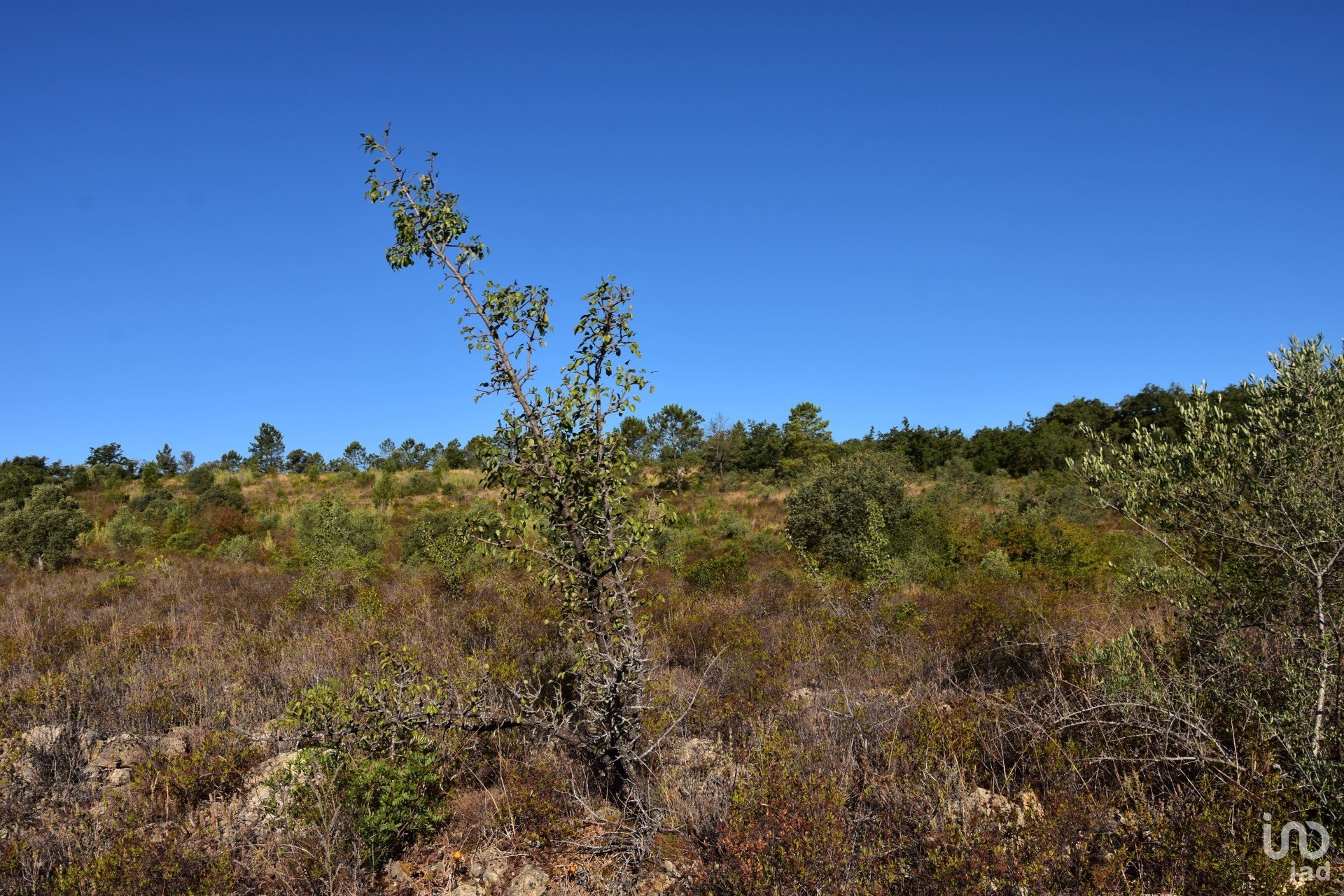 Terreno rústico, tipicamente caracterizado por uma paisagem rural, com uma mistura de elementos naturais e agrícolas, exemplo típico da agricultura tradicional portuguesa.
