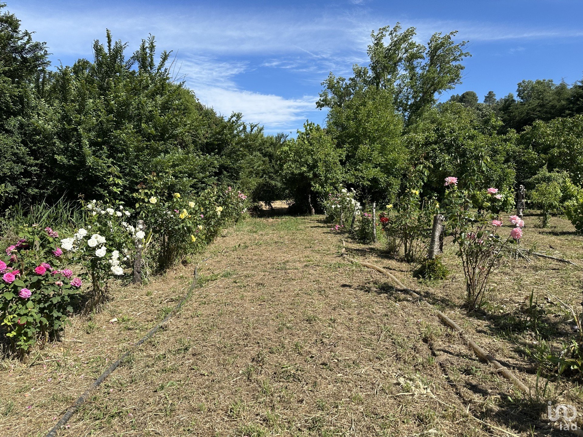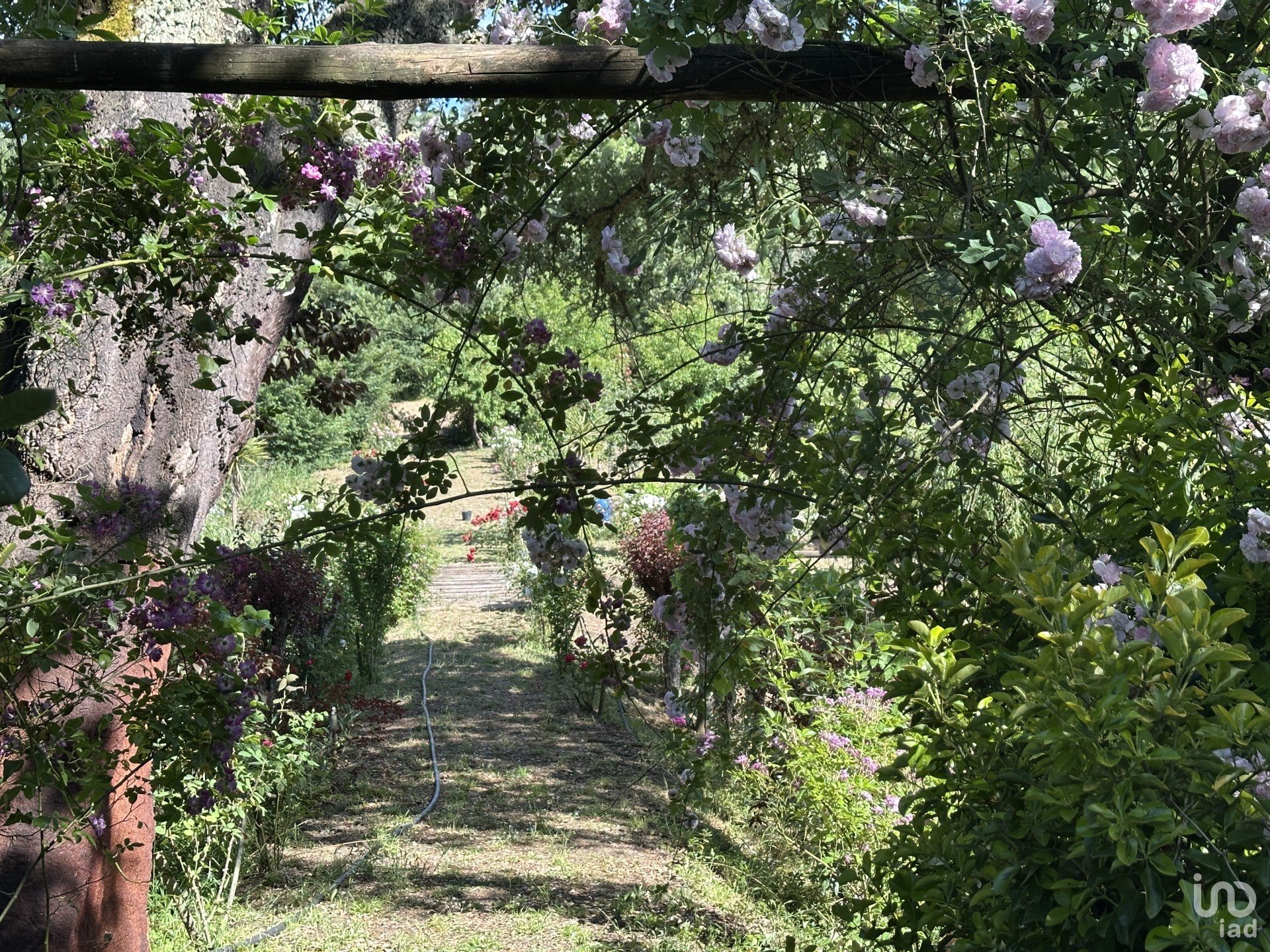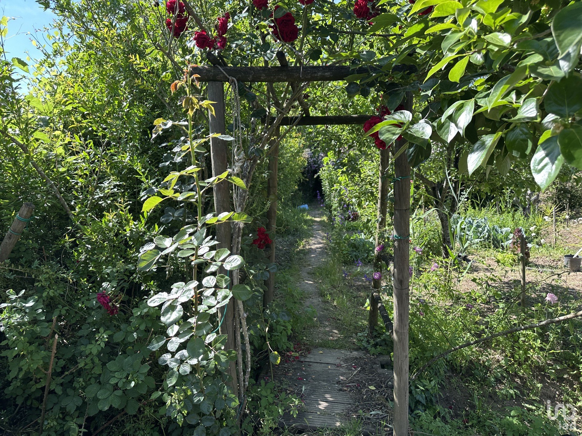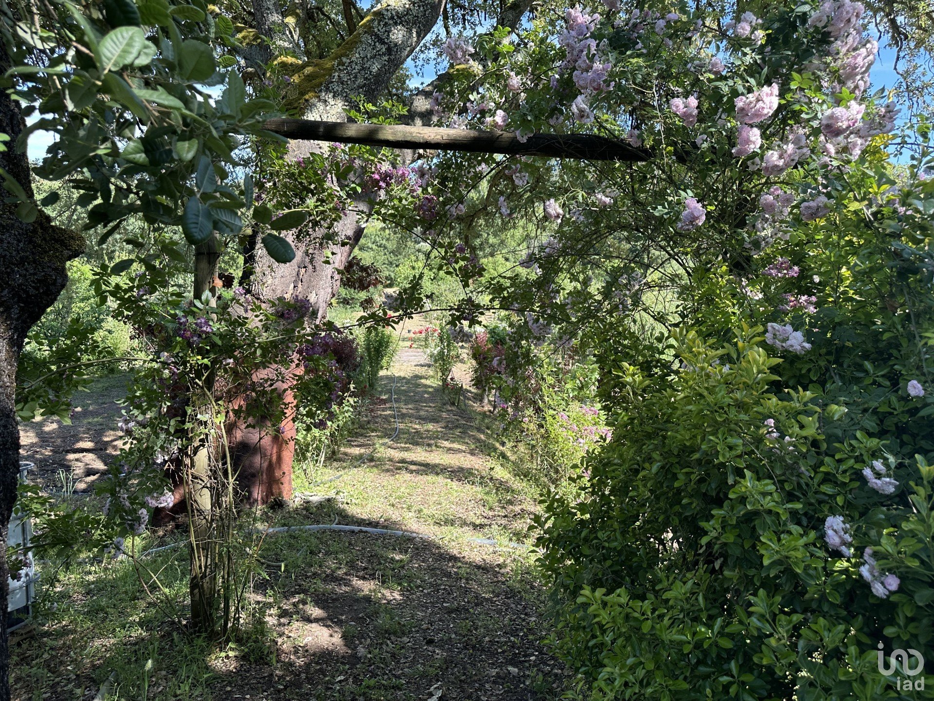 •Jardim cuidado, com árvores de fruto, flores e vegetação madura;