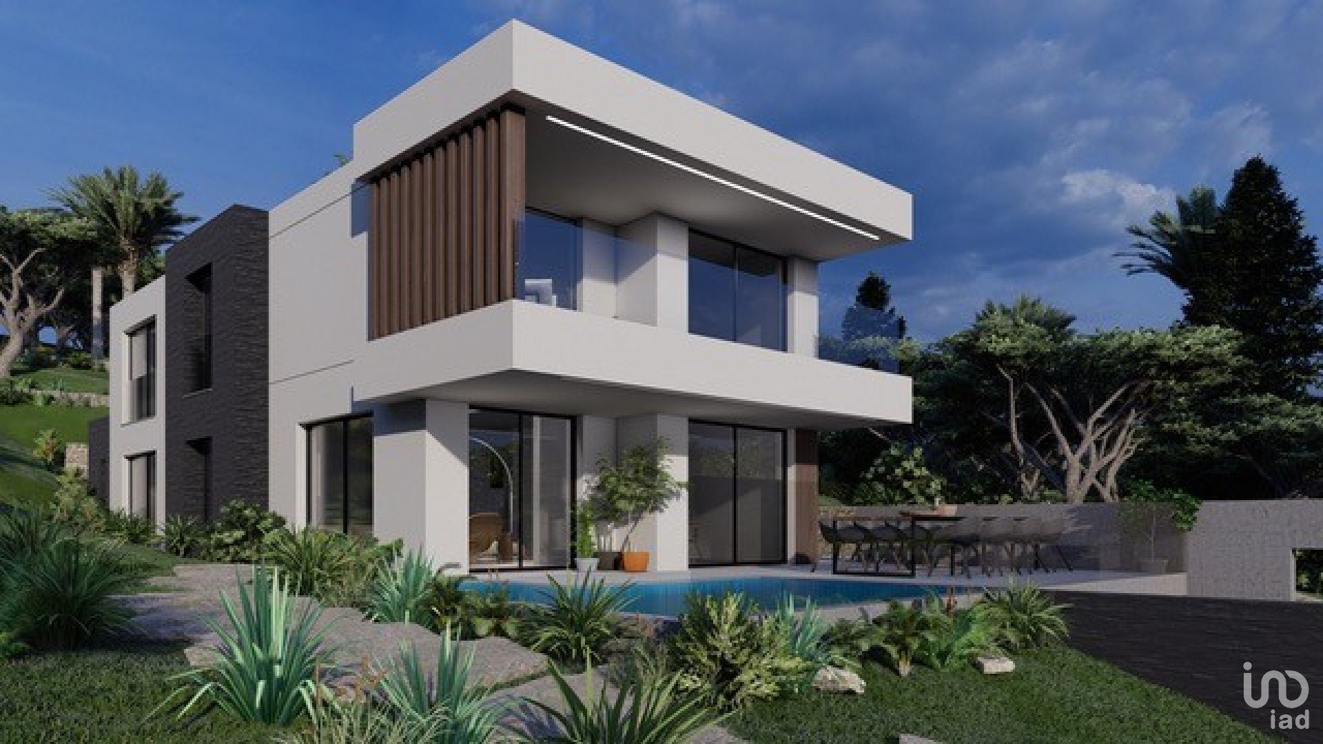 Características projeto aprovado para casa com cave, R/C, 1º piso e zona de piscina e jardim: