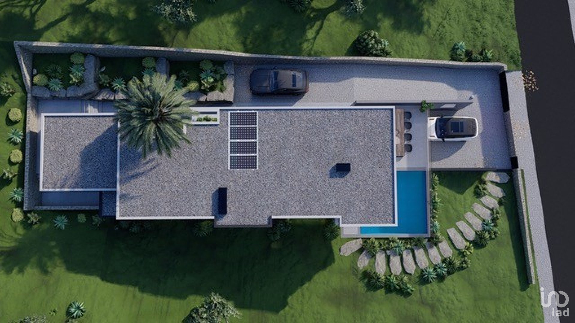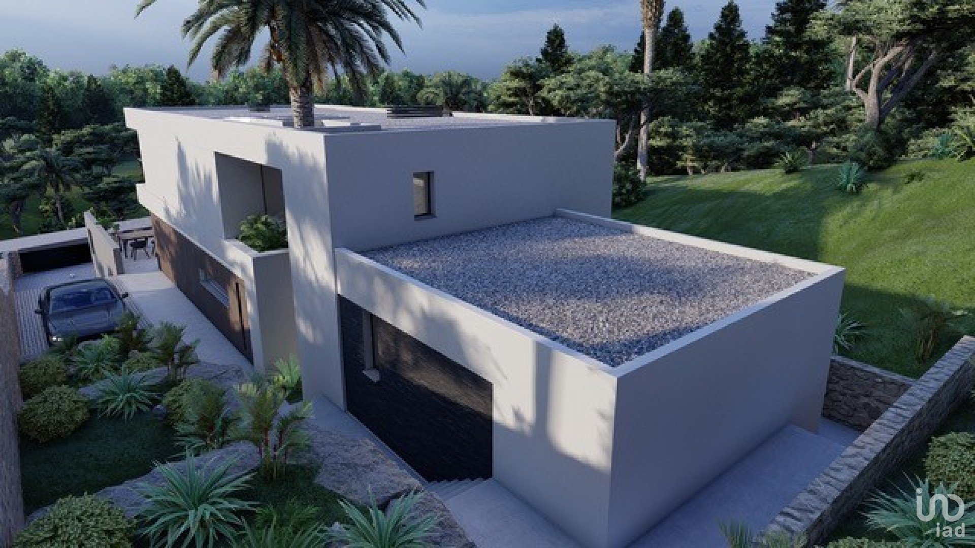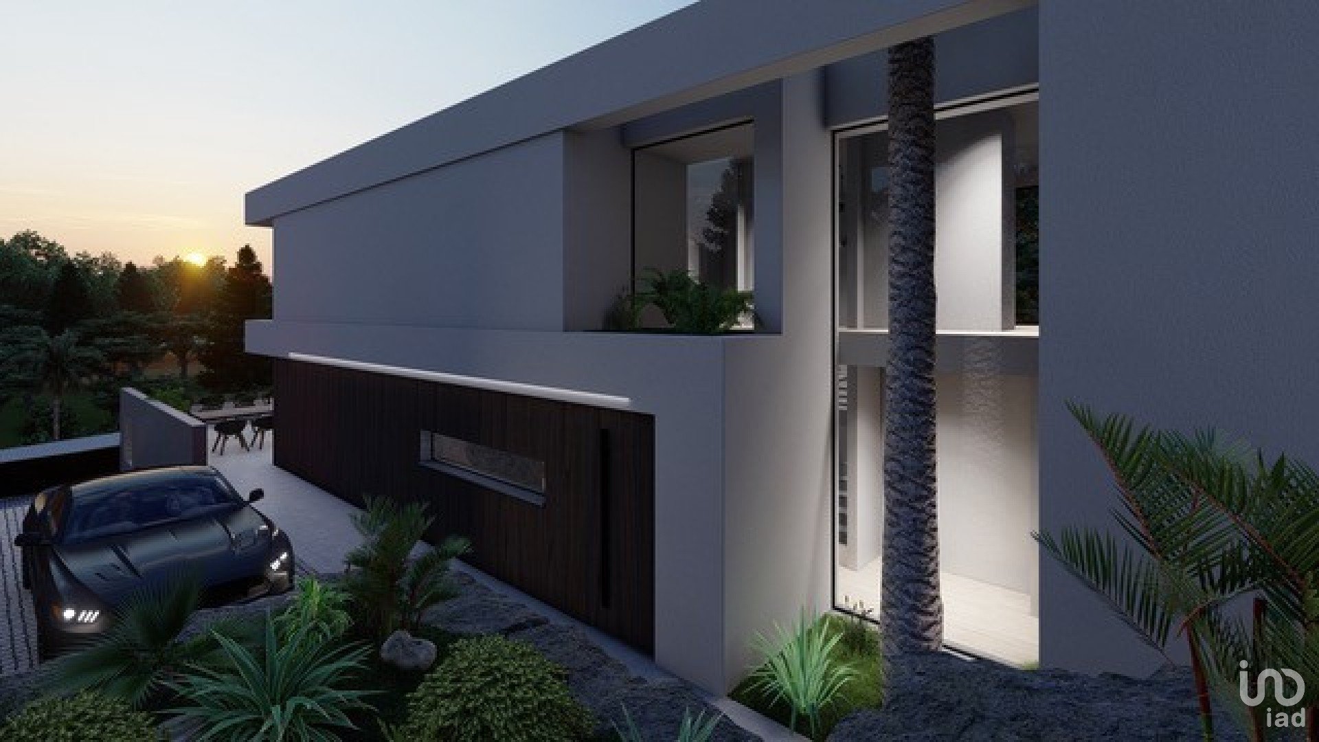 O projeto corresponde a uma moradia moderna, tendo a casa 2 pisos, uma cave e uma ampla zona de piscina e jardim.