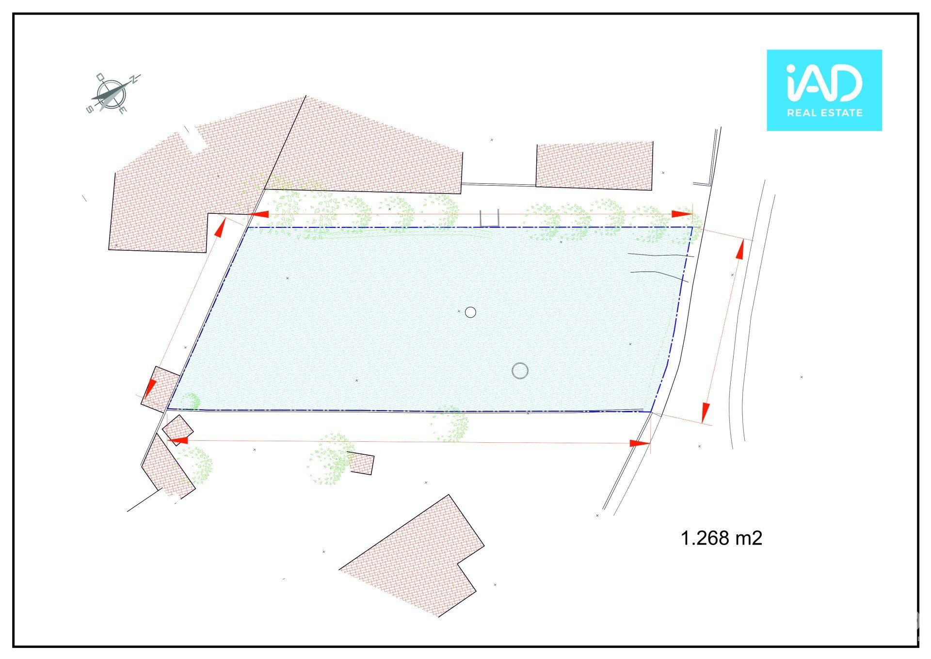 Com 1.268 m2, tem permissão de construção para 3 moradias, com uma Área Bruta de Construção de 507,2 m2 e uma Área Bruta Dependente de 101,44 m².