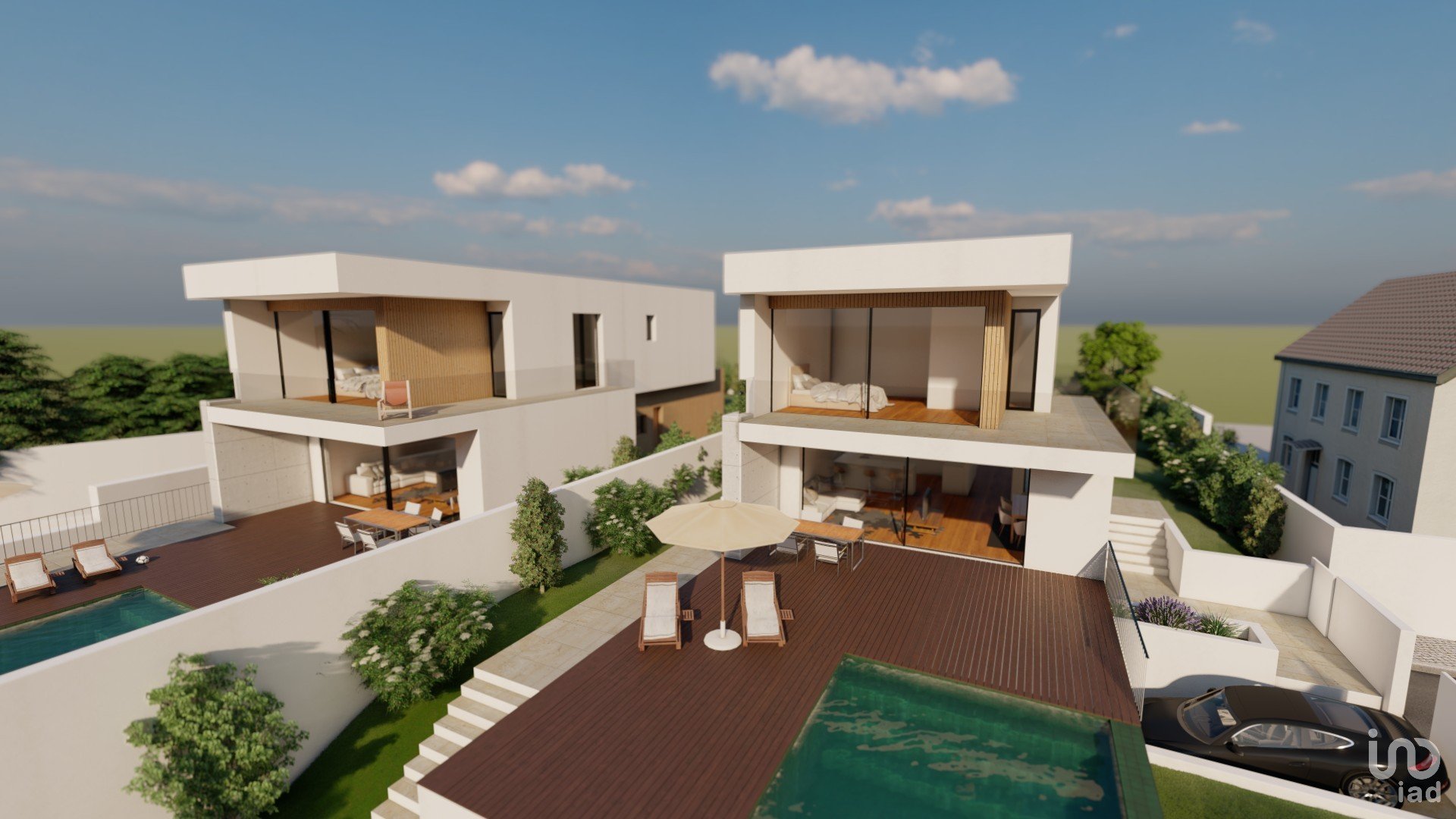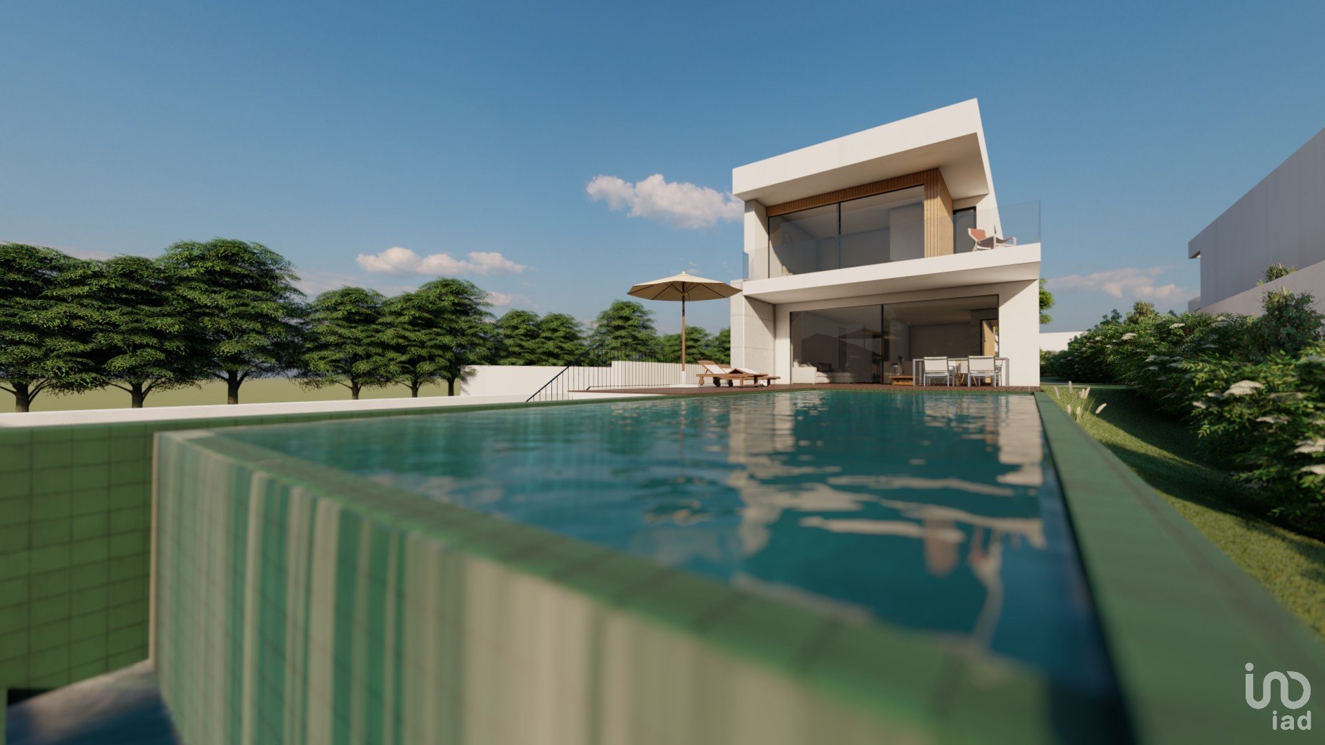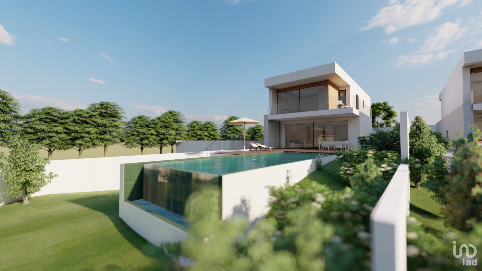 A moradia desenvolve-se harmoniosamente em espaços amplos, com vãos de grandes dimensões, que lhe confere uma ótima exposição solar e uma ótima vista para o mar. Que se prolongam pelas zonas ajardinadas, e piscina em cascata.
