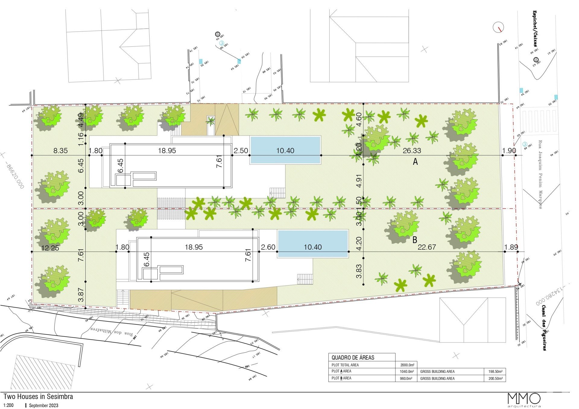 Este terreno dispõe de uma área bruta de construção de 419 m2, o que lhe permite para além da área ocupada com o projeto aprovado, ainda uma boa viabilidade sobrante.