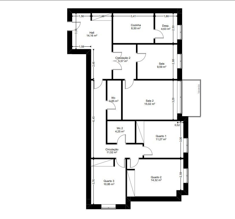 De seguida encontra o Corredor de Circulação com cerca de 9 metros.